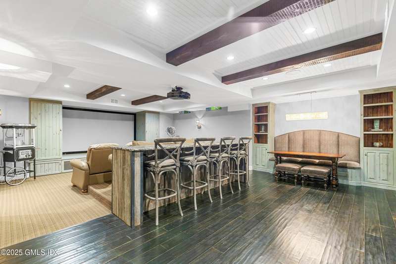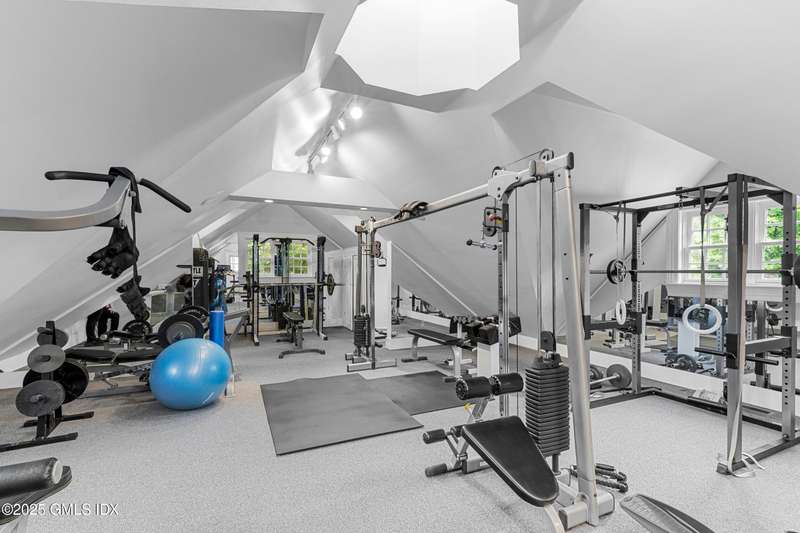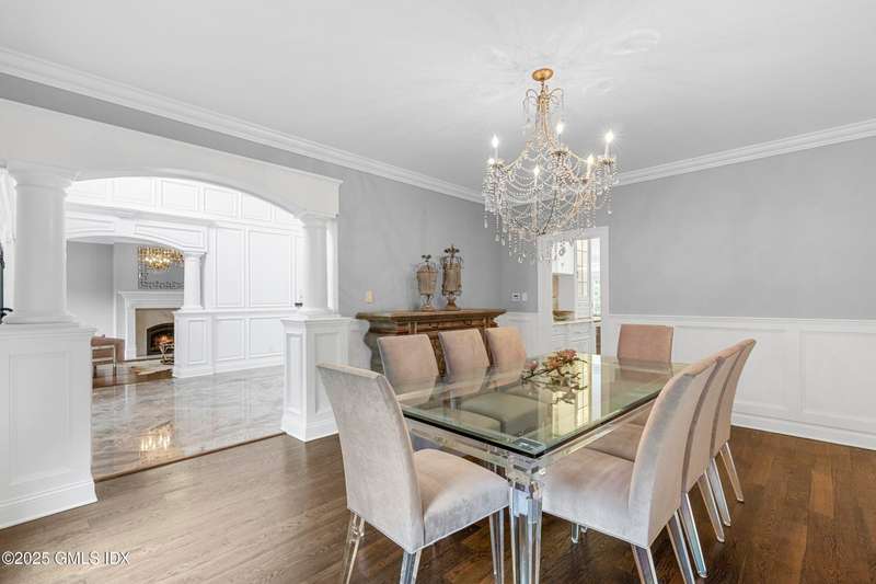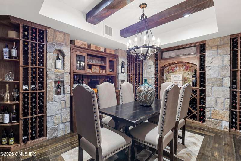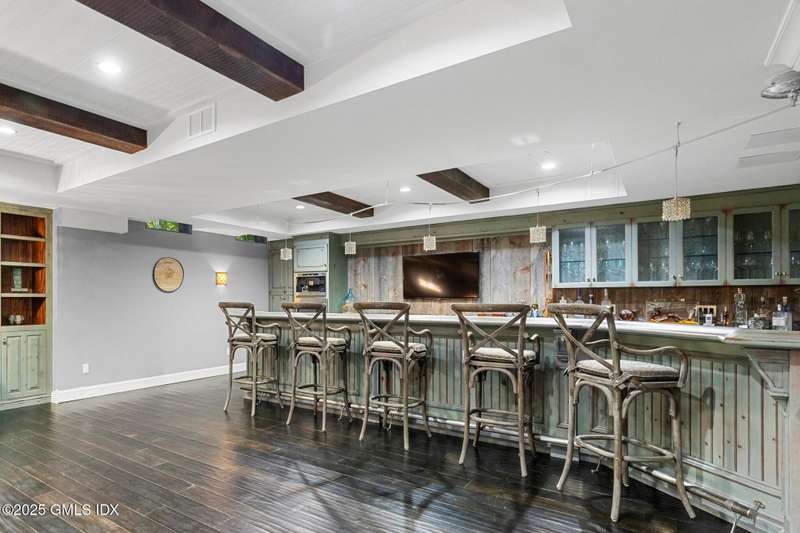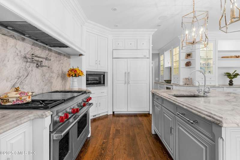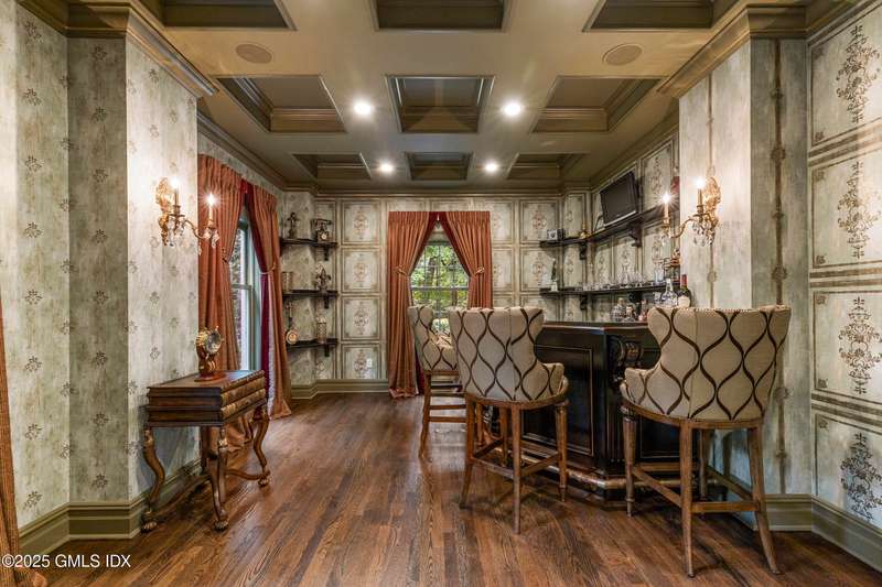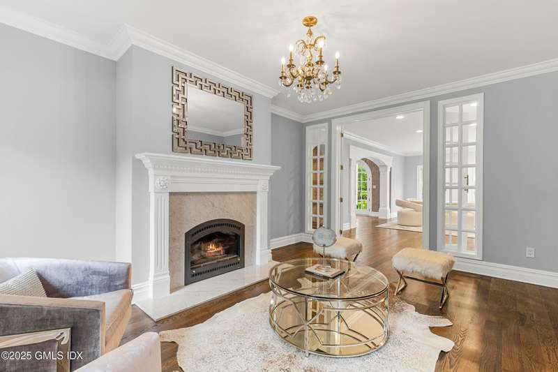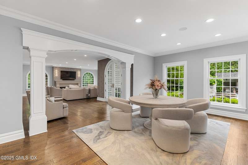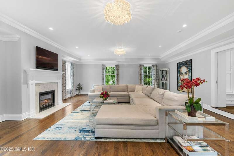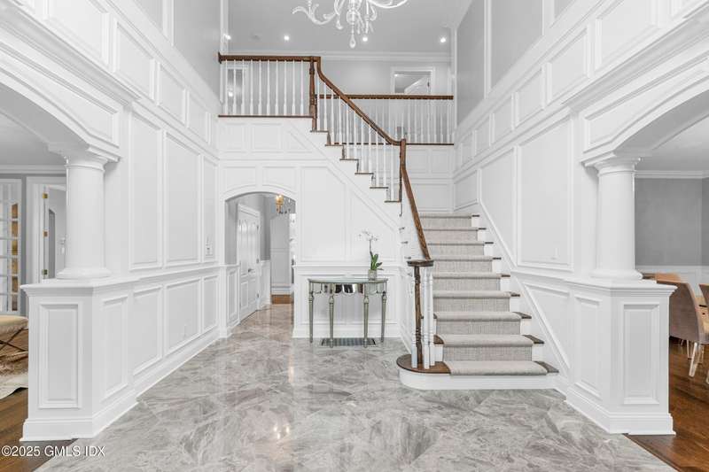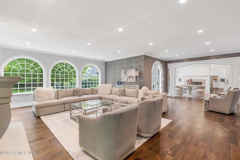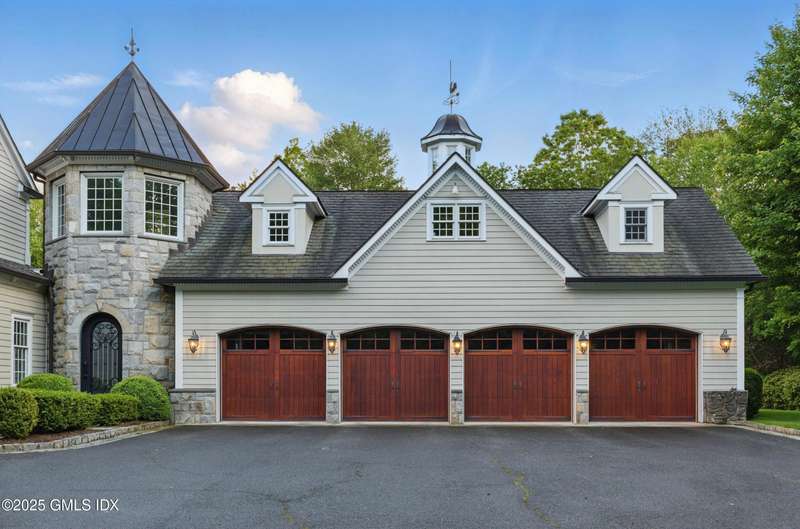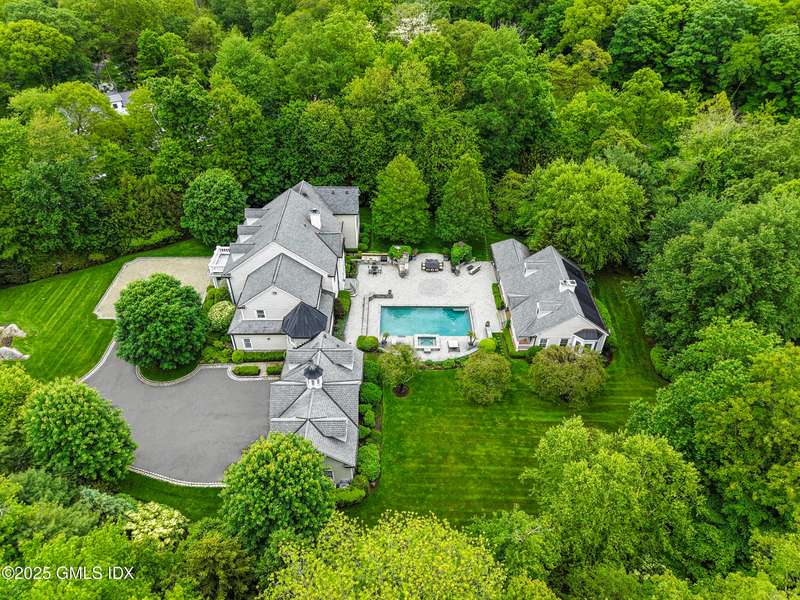 A rare offering in back-country Greenwich, this timeless estate is set on 3.58 exquisitely landscaped and gated acres, masterfully blending classic architecture with contemporary luxury. Designed for both grand-scale entertaining and intimate everyday living, the residence offers a sun-filled interior with soaring ceilings, custom millwork, and modern, bespoke finishes throughout. The grand foyer of this center hall colonial sets the tone for elegant, refined living. The gourmet marble kitchen opens to a multi-exposure family room with sweeping views of the manicured yard, pool, and fully equipped outdoor kitchen.The grounds are equally captivating, with a tranquil koi pond enhancing the natural beauty of the landscape. The luxurious primary suite with sitting area, spa-inspired bath, and three walk-in closets is among five second-level bedroom suites, each offering exceptional privacy and comfort. A versatile second-level suite with private entrance currently functions as a private gym but can effortlessly serve as an au pair suite or guest quarters.The thoughtfully executed lower level is fit with a theater, bar, wine cellar, and recreation spaces. The pool house extends the living experience with two additional bedrooms and two full baths-set amidst expansive patios and a lush, tree-lined lawn.Located just minutes from town, schools, and 45 minutes to Manhattan, this meticulously designed compound offers a rare blend of serenity, sophistication, and convenience.