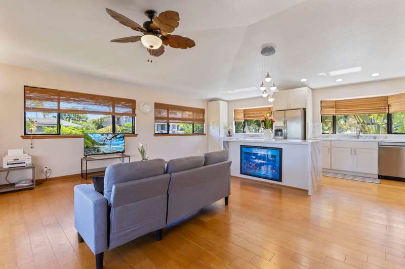 Pacific Terrace in South Kihei is one of the most charming neighborhoods on the island, perfectly located, just a short distance to the beach and great restaurants. This four-bedroom 3 bath home a newly renovated kitchen, new roof, and solar panels. Open floor plan, a large primary suite with a big walk-in closet, 3 large lanais, and the outside has recently been entirely painted. There is a beautifully landscaped backyard complete with fruit trees. If you’re looking for the perfect home or your little slice of paradise, this may be the perfect fit.