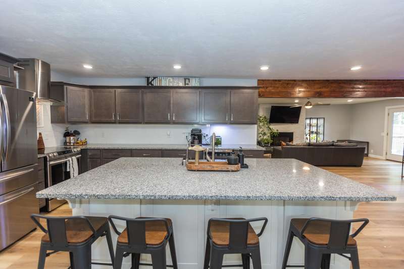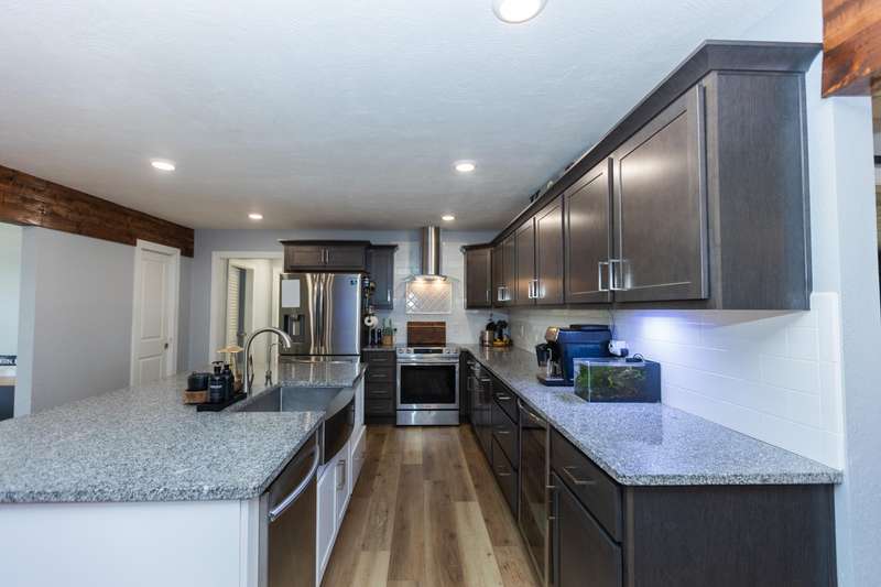 Welcome to 612 Spring Creek Road, where country living and modern luxuries meet. This beautiful home sits on over 6 acres of land, features an 8 stall horse barn, a detached garage/shop and so much more. Inside the home you'll find even more to love. The second you walk through the door you'll fall in love with the open concept floorplan. The kitchen features a large granite island perfect for hosting, beautiful cabinetry, a walk-in pantry, stainless farmhouse sink, wine fridge and stainless steel appliances. Have we mentioned it's a split bedroom floorplan? Enjoy the large primary suite just off the kitchen with plenty of room for oversized furniture, beautiful natural light and finishes. The primary bathroom is what dreams are made of with a custom shower, large walk-in closet, double sinks and ample space. Recent updated to the home include: 30x40 shop building. Installation of the plumbed bar in the lounge/movie room. New flooring. New privacy fence in the back yard. Pergola and patio. Landscaping.There is so much to love about this home and the opportunity it brings. Welcome home!