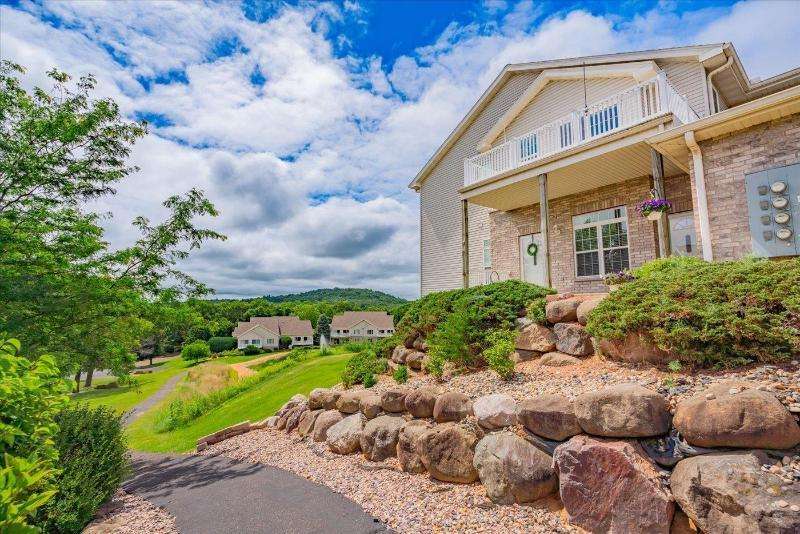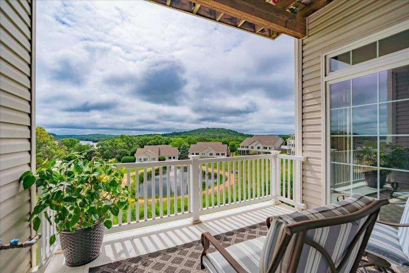 Year-round, lakefront living awaits! Zero-step private entry, open-concept, end-unit ranch condo w/ stunning views of Lake Wisconsin set in a quiet community w/ hardwood, hickory floors throughout. Main-level living includes primary, en suite bedroom w/ walk-in closet & updated full bath w/ walk-in jetted tub, tiled bath & shower, second bedroom & full second bath & large great room & walk-out balcony. Fully finished LL boasts a 3rd bedroom and 3rd full bath, huge rec room & walk-in cedar closet. Main & LL gas fireplaces. High end finishes- granite countertops & backsplash, SS appliances, extra tall, custom hickory cabinets & 2 pantries! Boat/ golf cart/walk to nearby beaches & watering holes. Boat slip rental available. Seller including UHP "Ultimate" Home Warranty.