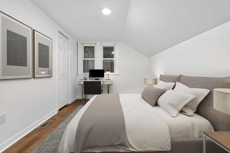 Price Reduction! Welcome to this beautiful renovated 3 bedroom duplex apartment featuring two additional bonus attic rooms that offer both space and comfort. The finished attic is perfect for an office space, entertaining, an exercise room, or a creative studio. Enjoy access to a shared backyard, your own private deck both ideal for relaxing, gardening, or hosting gatherings. Conveniently located near shopping, dining, schools, parks, and transportation, this home combines modern living with everyday convenience. As of 11.5.25 small pets are allowed