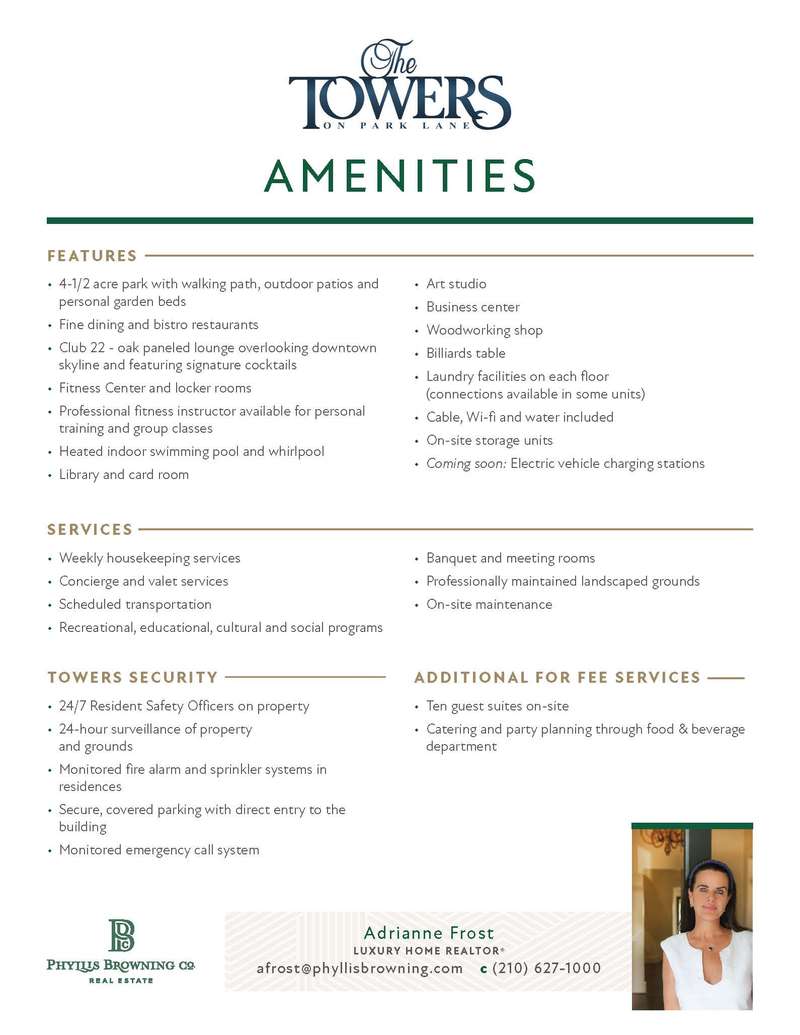 Sellers offering to pay $7,500 Buyer's Community Fee at Closing, "A" FLOOR PLAN, ENJOY BEAUTIFUL SUNRISES FROM THE LIVING ROOM, THE BIRDS IN THE TREE TOP AND THE BEAUTY OF NATURE WITH THIS BEAUTIFUL NORTH VIEW. FEATURES NEW STAINLESS STEEL CONVECTION OVEN, REFRIGERATOR AND DISHWASHER (PURCHASED IN JAN. 2022), TWO NEW CEILING FANS WITH REMOTE CONTROLS, NEW DINING ROOM AND ENTRY LIGHT FIXTURES, NEW MOEN BATH ROOM SINK FAUCET, NEW WATER SHUT OFF VALVES FOR KITCHEN SINK, BATH SINK, TOILET AND REFRIGERATOR ICE MAKER, NEW HEAT PUMP (2/27/2020) AND FRONT HALL CLOSET CONVERTED TO PANTRY. THIS UNIT IS CLOSE TO FLOORS COMMUNAL LAUNDRY, RECYCLING, TRASH SHOOT AND 2ND ELEVATOR. Great wall of shelves in the bedroom for phenomenal storage and decorating options... The Towers on Park Lane is an Exclusive Luxury High Rise Co-op for adults 55 years + The Towers offers a lifestyle much like that of living in a Luxury Hotel. Upon arrival you are greeted by a valet who will park your car and take your personal items up to your residence. Numerous concierges are available to help with your every need. Located in the lobby is a beautiful white tablecloth restaurant and a darling bistro to grab a quick bite if you don't feel like cooking. Better yet- order room service and have your meal delivered! The building amenities are tremendous and feature a heated indoor pool and spa, locker rooms and a fitness center and that includes a variety of classes and work out equipment, a gorgeous 4 1/2 acre park with walking trails, outdoor patios and personal gardening beds, a library, card room, an astounding wood working shop, business center, CLUB 22 - an oak paneled lounge on the 22nd floor with large windows and balconies overlooking the downtown skyline, an art studio, billiards table, laundry facilities on every floor for those residence that do not have W/D connections, on site storage units, ten guest suites on the second floor, EV charging stations, meeting and banquet rooms with catering services available thru the food & beverage department and above all 24/7 Resident Safety Officers! The many benefits provided in the monthly Co-op fee include weekly housekeeping, Wi-fi/ Cable TV (including Showtime and HBO)/ water and garbage, concierge and valet services, fitness instructor for personal training and group classes, scheduled transportation, recreational/ educational/ cultural and social programs, secured covered parking with direct entry to the building, 24 hour security and surveillance of grounds, monitored fire alarms and sprinkler system throughout building, monitored emergency call system in each residence. In addition to all that the Co-Op provides the residents have and active and close knit community offering many engaging social opportunities! The building is an extension of your personal living space and there is something special for everyone. The Co-op has a well-funded financial reserve and can boast they have never had a special assessment. - 11/7/2025 8:15:32 PM