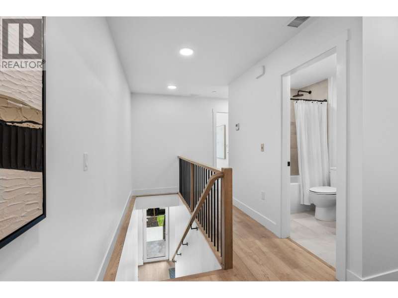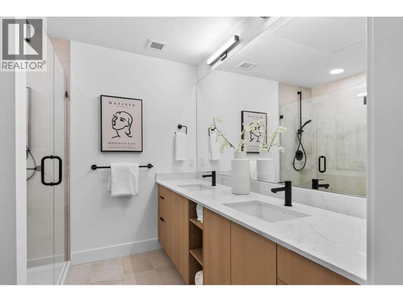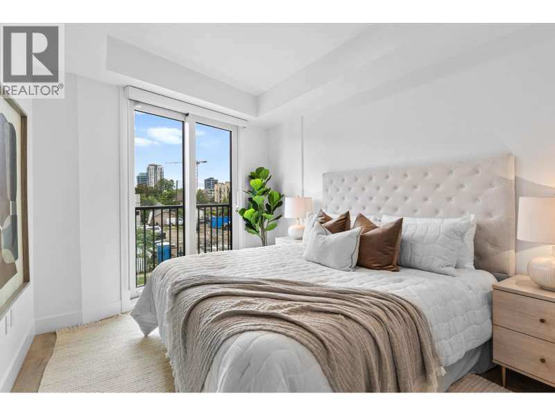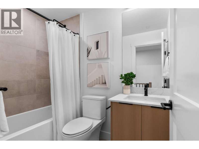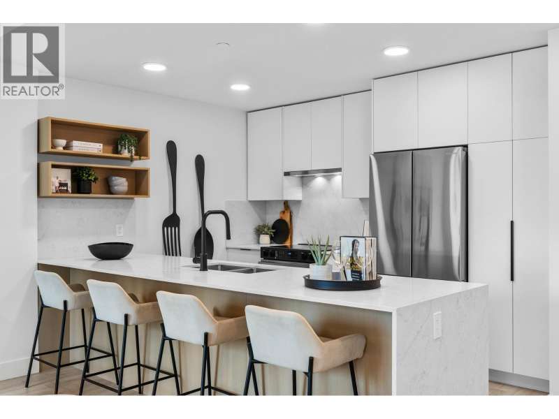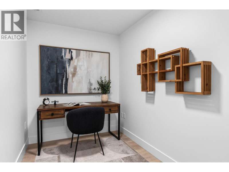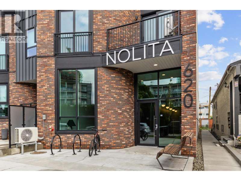 Brand new two storey townhouse style condo with street level entry, situated in downtown building Nolita. Enjoy the perks of condo living without sacrificing space. As you walk in from the quiet street, step into an open concept main floor features an upgraded quartz kitchen, full appliance package, and a light filled living/dining area, half bath on this floor as well. On the second floor, the spacious master suite includes a walk-in closet and its own fully tiled roomy walk-in shower, and double vanity. A second bedroom and a full bathroom along with the versatile den—ideal for home office, guest space, or hobby room. All the perks of downtown Kelowna are just outside your door: beaches, parks, craft breweries and restaurants. A New Home Warranty (2 5 10) ensures no surprise repair bills—just peace of mind. Strata fees cover nearly everything (you only pay your power & internet). Shared amenities include beautifully landscaped courtyard, gas BBQ lounge, fire table seating and an onsite dog park. It’s pet friendly with up to two pets of any size allowed. Smart building access includes secure entry, package management and elevator scheduling via the 1Valet app. Open house- walk ins welcome- Mon-Thur 11-7Pm and Fri-Sun 11-5PM (id:58403)