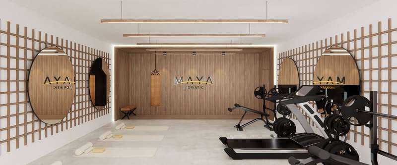There is a shared outside infinity swimming pool with a sunbathing area, an inside swimming pool for all-year use, a SPA&Welnes area, a gym, and a rooftop bar ideal for parties and gatherings with family and friends. There are underground garages with car elevators and electric car chargers. In A Maya Adriatic complex, you will always be able to feel the magic of the Mediterranean away from the city's noise and bustle. The complex is close to the sea, city center, and historical and tourist places thanks to its central location. This makes the beauty of living in Montenegro a real privilege.