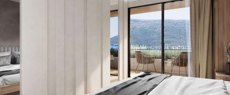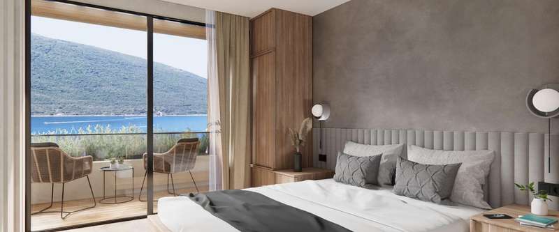 These modern two-bedroom apartments are located in the Maya Adriatic residential complex in Kumbor at the entrance of the Bay of Boka. The complex is in the embrace of the sun and sea, away from the city noise and bustle, close to the famous Portonovi residential area and luxury yacht marina. This complex impresses with its peaceful atmosphere, stunning natural beauty, and crystal-clear water. Unspoiled beaches and panoramic views of the Bay of Kotor create ideal conditions for vacation and accommodation.