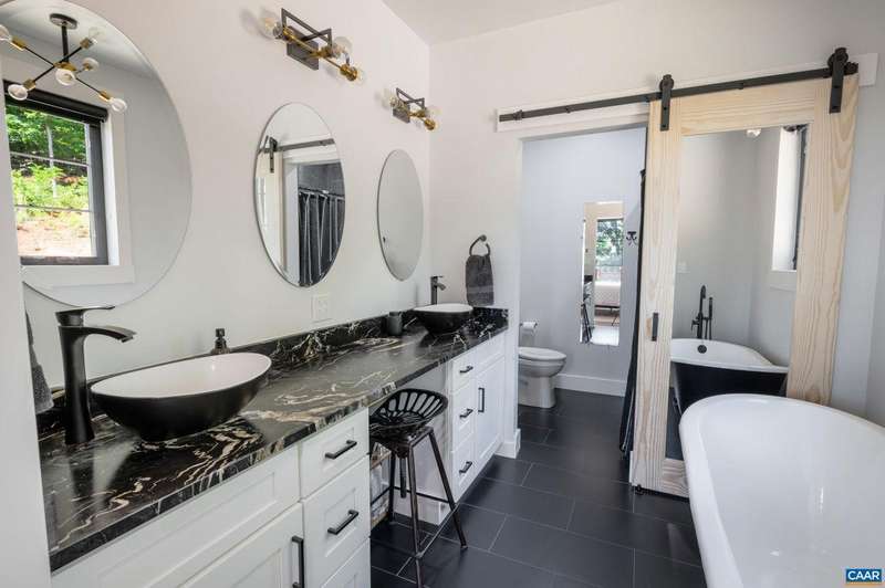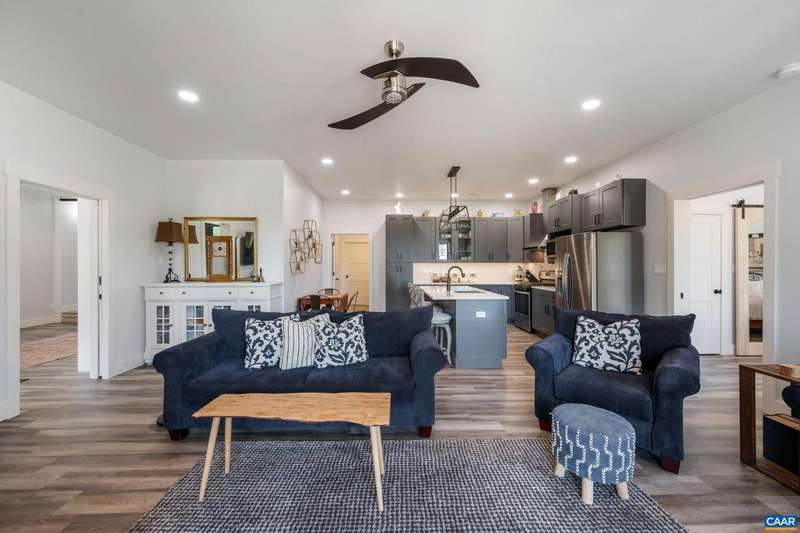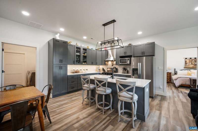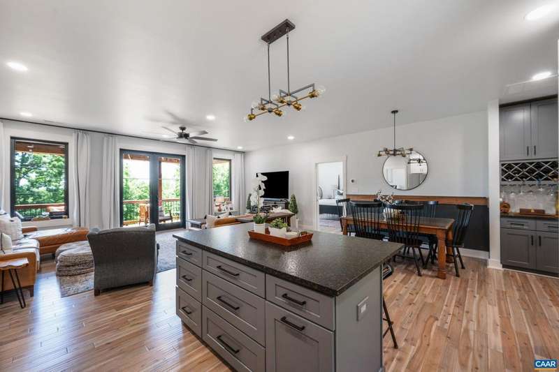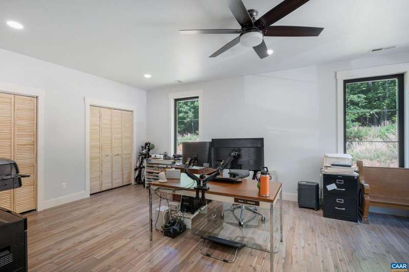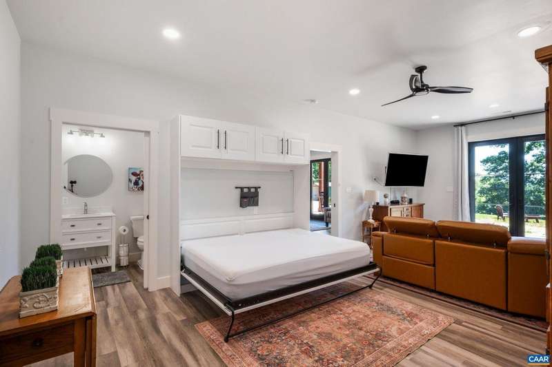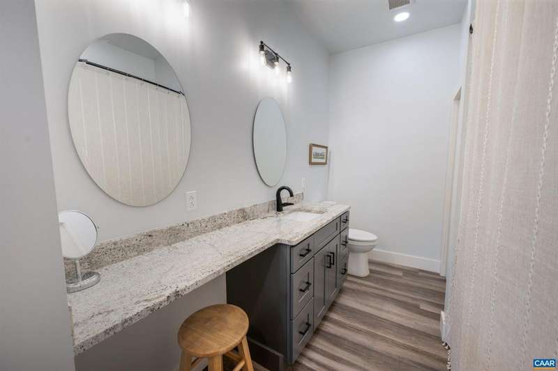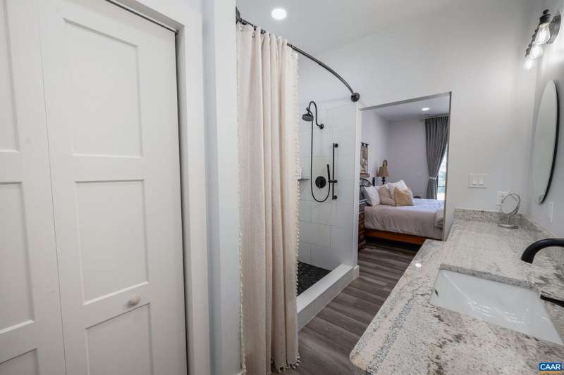 This custom designed home is situated on 3 acres in the Foothills of the Blue Ridge Mountains. The home offers high quality materials thru out with 2 primary suites on the main level with full baths, a half bath, laundry room, office, kitchen with granite counter tops, stainless steel appliances and a living room that leads out to an expansive cedar covered porch to enjoying the tranquil setting. The terrace level has a bedroom with a full bath, a den with a Murphy bed and private full bath, kitchen, the living room includes a gas log fireplace, nice covered patio, laundry room and a bonus room for future expansion. There is 400 amp service for the home which is prepped for whole house generator, Englander wood stove, Anderson windows and doors along with many more construction details. There is storage building with 200 amp service, a carport, a full hook up for an RV, two driveways one for the terrace level and one for the main level.,Granite Counter,Quartz Counter,Wood Cabinets,Fireplace in Living Room