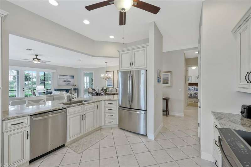 Centrally located in the gated community of Banyan Woods, this beautiful 3 Bedroom/2 Bath condo has the Florida feel you're looking for in your Naples getaway! Decorated in calming tones of blues and greens, this home features a gorgeous white kitchen open to the living area, a large ground floor lanai/sunroom with a peaceful lake view, plenty of windows, plantation shutters, and an attached garage for your vehicle. The third bedroom has a sofa sleeper and can be used as a den or office. The amenities at Banyan Woods include a Community pool, clubhouse, exercise room, and a perimeter biking/walking path all conveniently close to shopping, dining, and the inviting beaches of Naples.