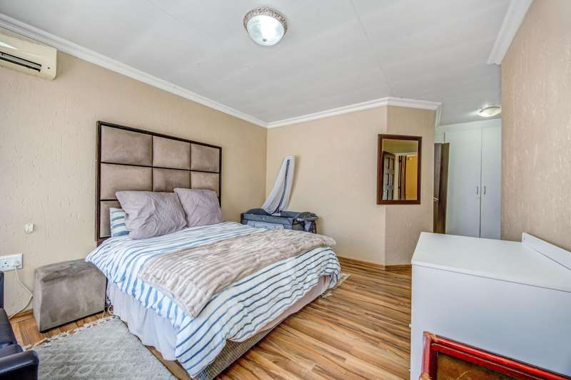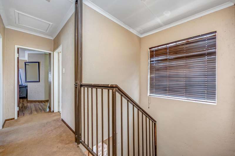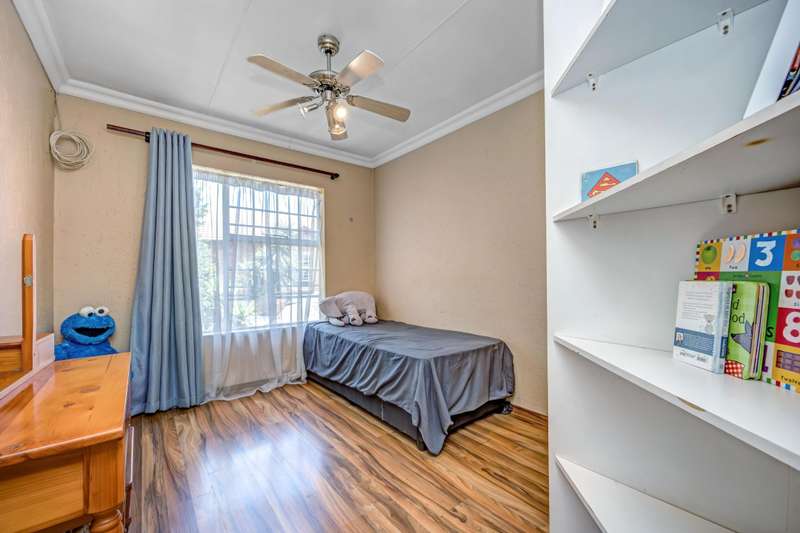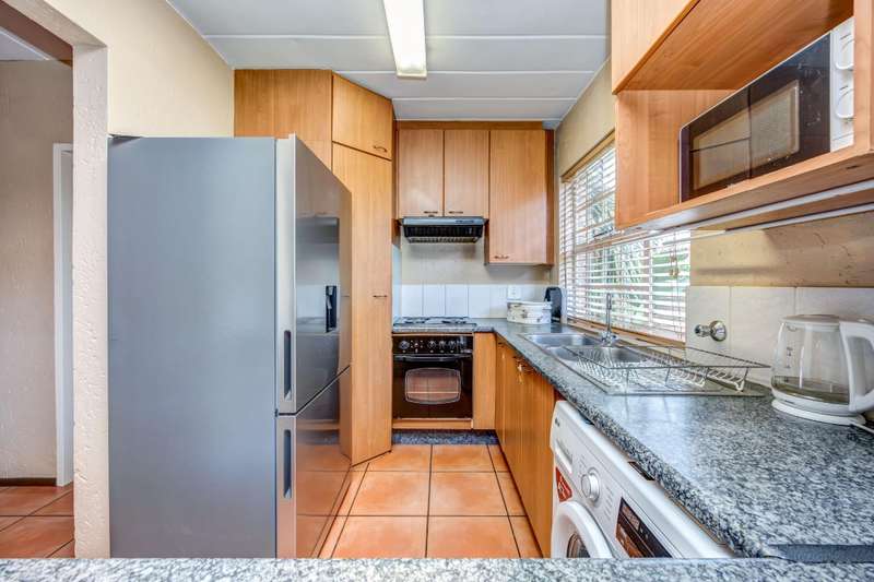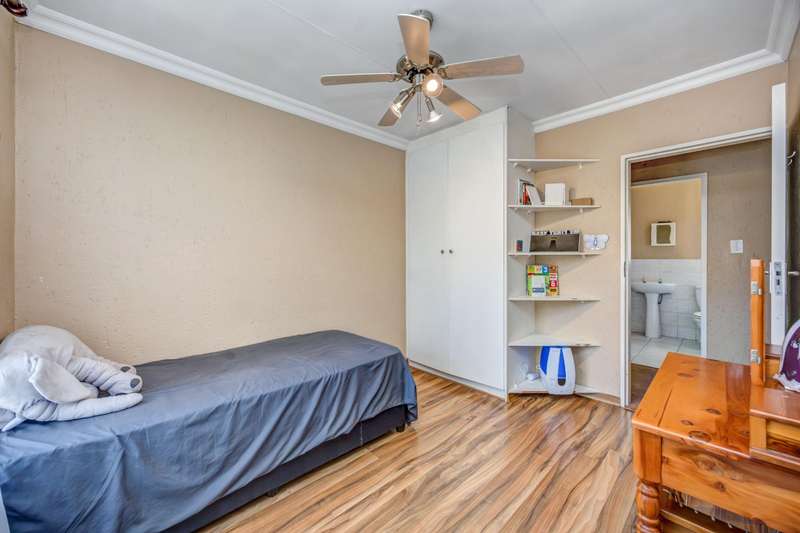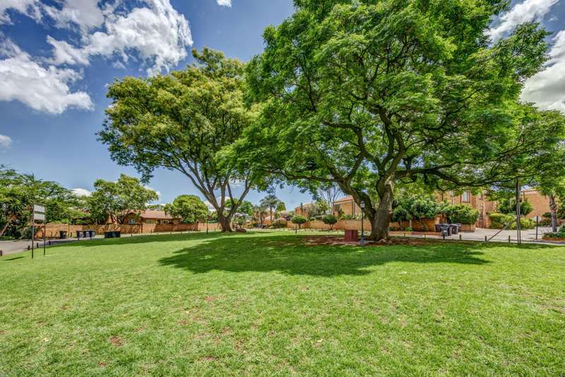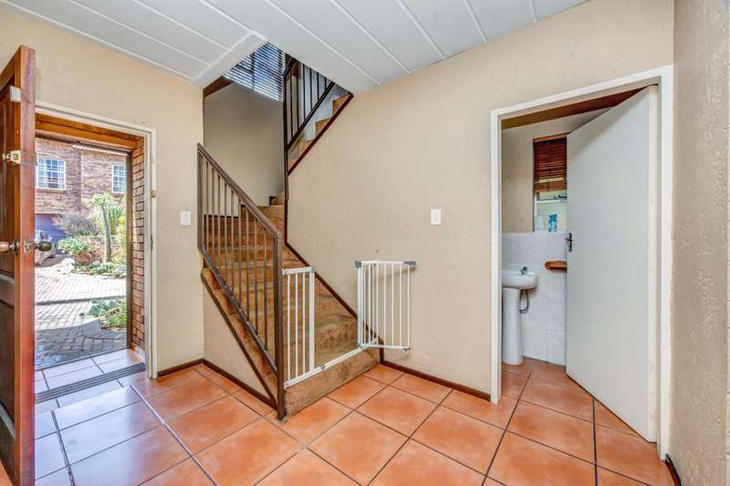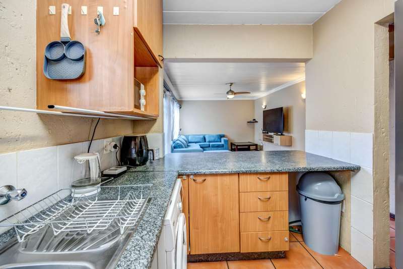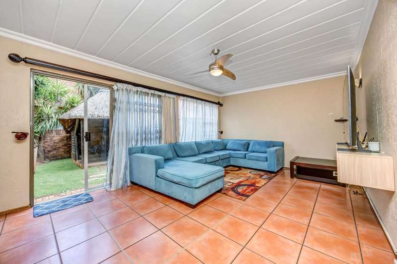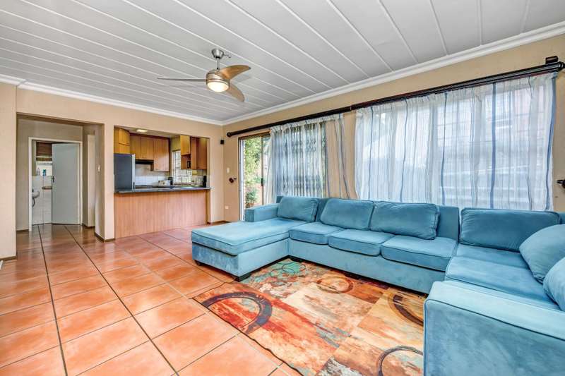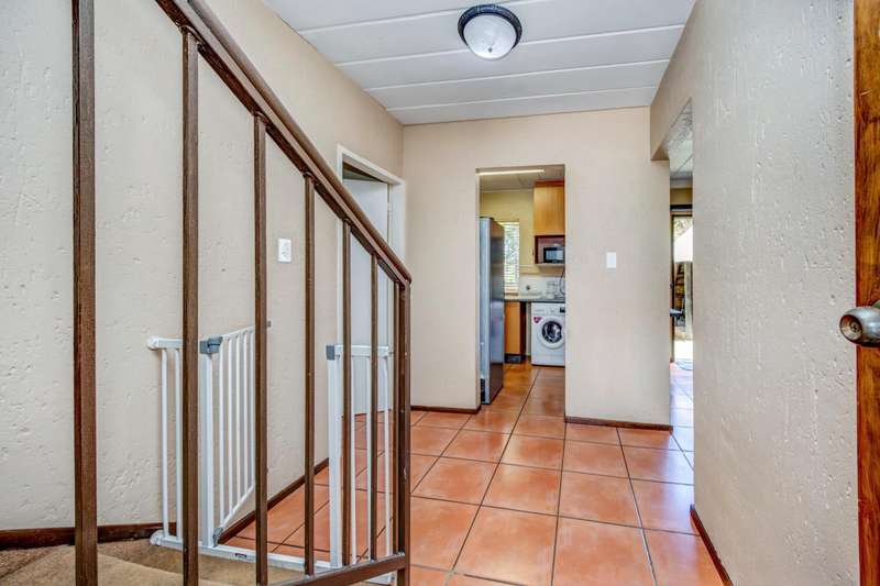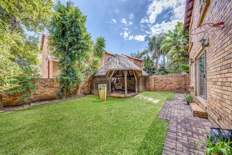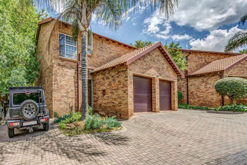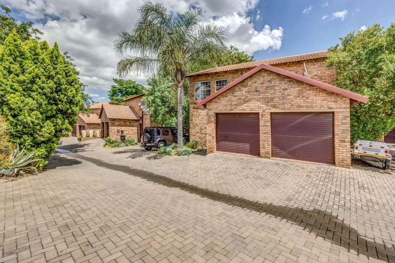 Large, 3 bedroom, 2.5 bathroom, double garage, and thatch lapa, face-brick townhouse in Honeydew Ridge. Well situated in the complex, within the larger Secure Estate, I believe this home is priced to sell. Enter through the security gate and front door to a generous entrance hall, with guest loo to the left, access to the garage, living area to the right, and stairway to the bedrooms. The large living area is tiled and opens, via a sliding and trelli-door, to the pet friendly garden and thatch lapa. The kitchen is open plan to the living area, has ample cupboards, pantry, extractor above the hob and double sink, as well as a breakfast counter. Upstairs are the 3 bedrooms, all with built in cupboards and matching laminated wood floors. The main is airconditioned and the 2nd bedroom has a ceiling fan. The en-suite offers corner bath, shower, basin and toilet, while the 2nd bathroom has bath, basin and toilet. Parking is provided by way of a double garage, with tiled floor, automated doors and direct access into the home. There are cupboards and a work counter in the garage. as a bonus is also an open parking bay. The estate offers large areas for walking and cycling and a grassy, park area for kids to play. No Show-days are planned, so please contact me to arrange a viewing.