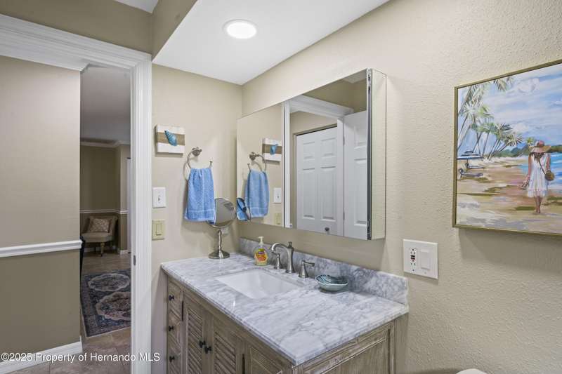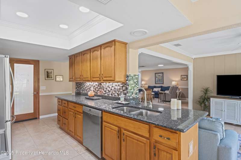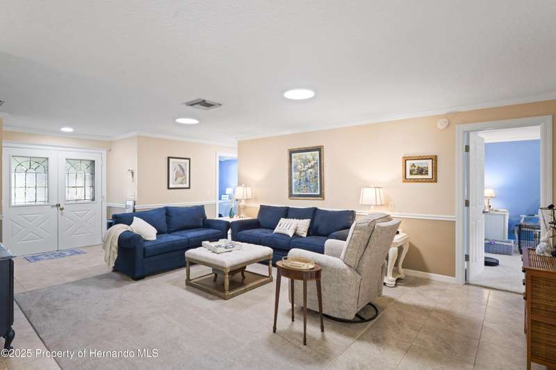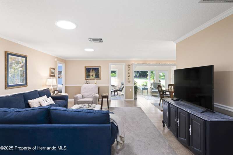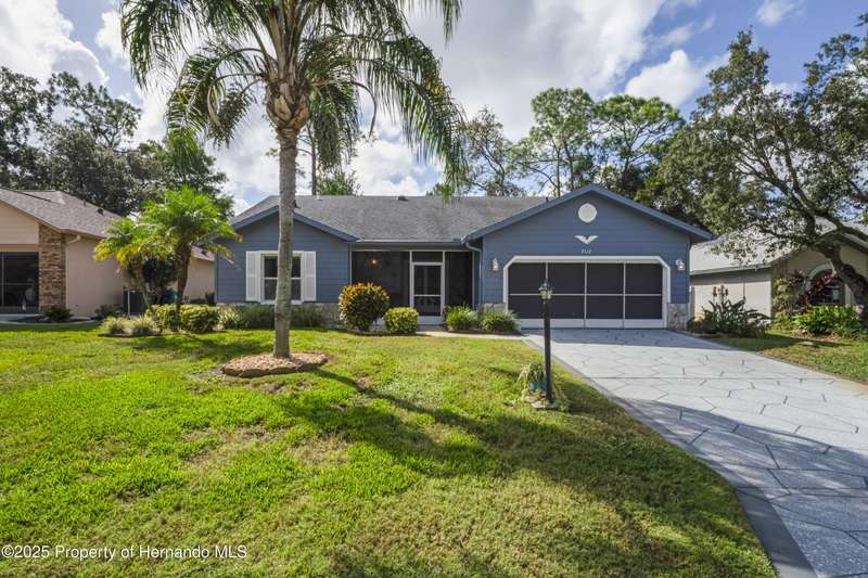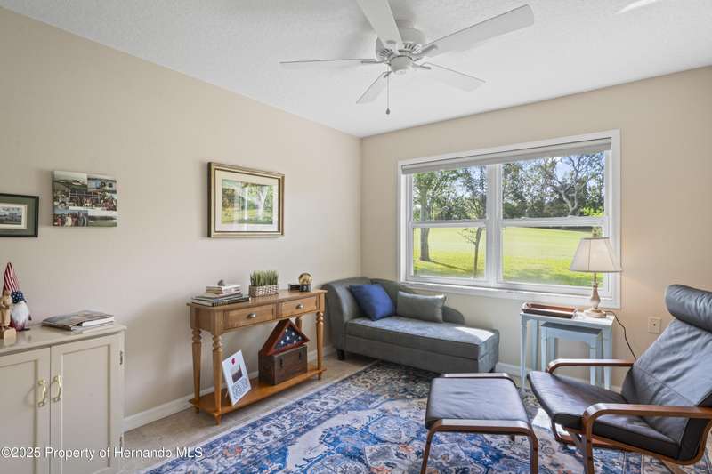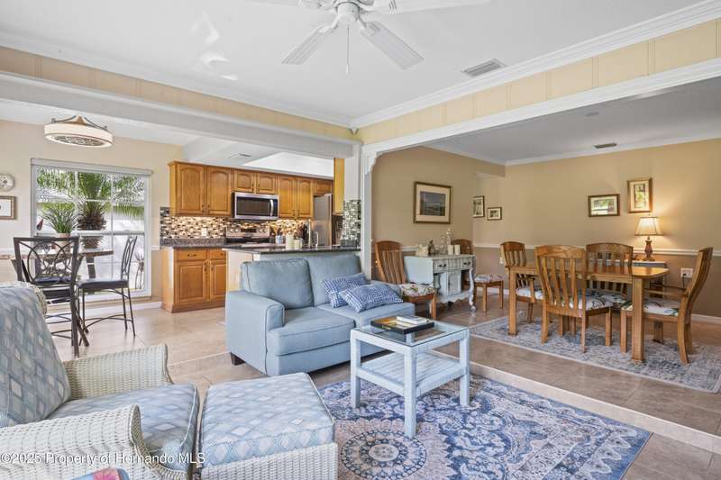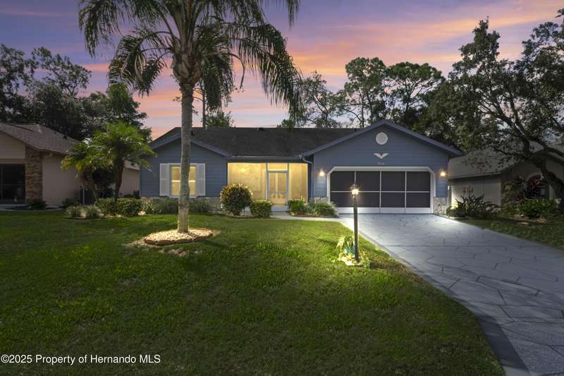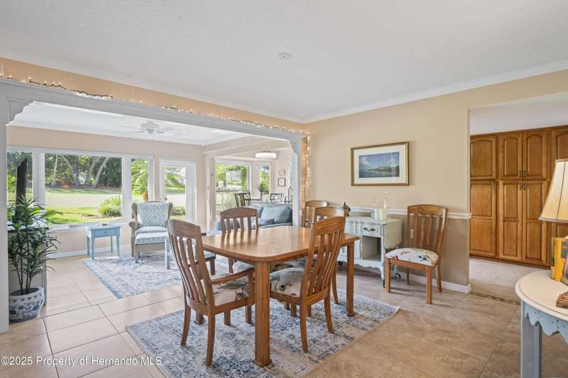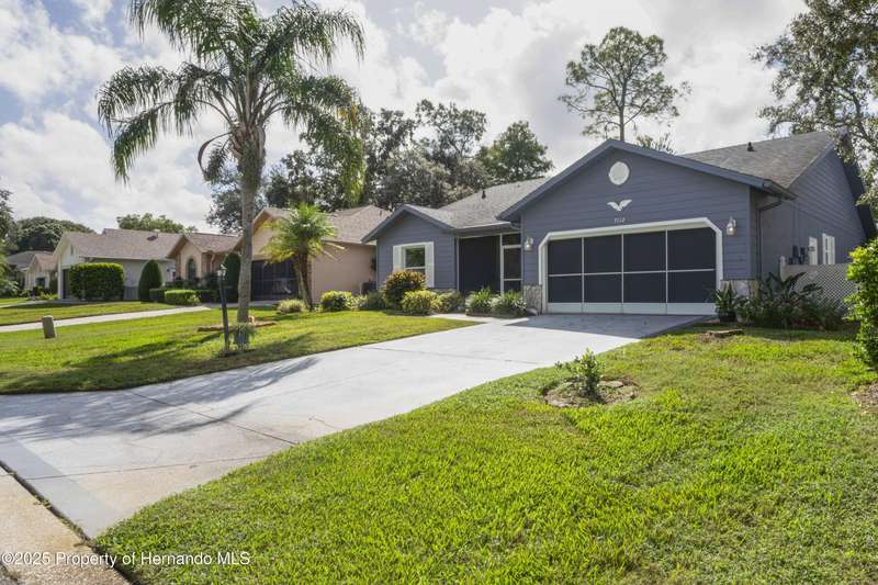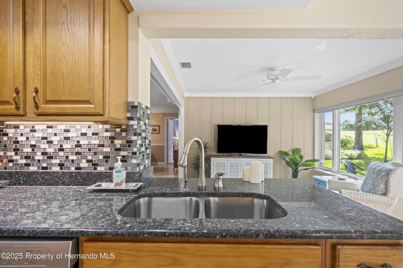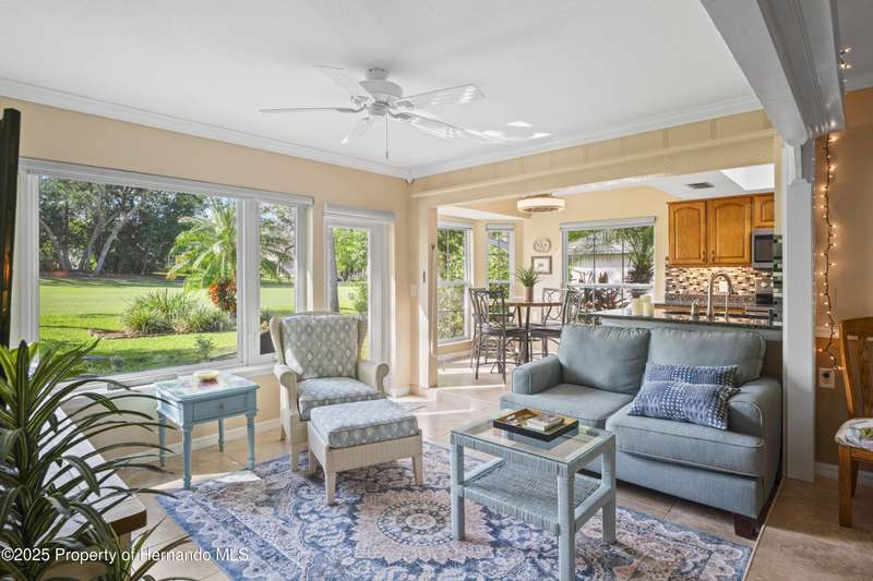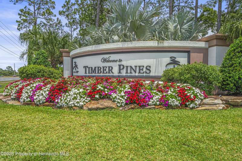 Wow!!! Golf course view!! Swing into Timber Pines community and golf, fun and activity are around every corner. This home in Greendale Village has it all. The interior has been updated, remodeled, and painted. The superb views from the eat-in kitchen and main bedroom are hard to beat. Step down into the family room to enjoy ''the best view in the house!'' The property sits on the 6th Fairway of the Hills course. The neighborhood is active and friendly. The hot water heater, AC compressor and range were replaced in 2024, and the disposal in 2025. Exterior paint in 2023, and interior paint in 2024. Note all the crown molding! Sit on the newly screened front porch, or on the back patio to enjoy the scenery and wildlife, as well as the landscaped backyard. The patio has a retractable awning to give options of bright sunshine or shade. Oversized 2 car garage with cabinets. Deep well for irrigation. Newer Thermopane windows. No popcorn on the ceilings! The interior updates go on and on. The amenities at Timber Pines are extensive as well. If you have a desire to belong to a club, or engage in recreation, either physical or relaxing, this 55+ community is for you! Newer Wellness Center and Paws Park, pickleball and tennis courts, PLUS 3 GOLF COURSES to name a few. A great restaurant and bar, 2 beautiful pools, an activity lodge. 24 hour security. Spectrum Cable and Internet are included in your HOA. If you are looking for a wonderful, low maintenance life, this home is made for you! You'll have a ball here! Call today for an appointment!