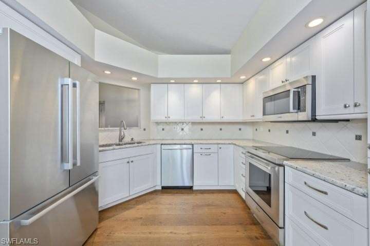 Discover this beautifully updated 3-bedroom, 2.5-bath detached villa in the sought-after Enclave neighborhood of Bonita Bay. Designed with an open, airy floor plan, the great room showcases volume ceilings and abundant natural light through new hurricane-proof atrium windows and impact sliders. The updated kitchen features new cabinetry, a Wolf range, and a Bosch refrigerator, elevating cooking experiences ideal for entertaining. The spacious primary suite offers a private outdoor sundeck, creating a serene retreat. Outdoor living is a highlight with a screened rear deck and tranquil private garden, perfect for relaxing or dining al fresco. To top it off, a new roof was installed in 2022. Located within Bonita Bay, enjoy access to a private marina, miles of walking/biking paths, beach park, and optional 5 course golf club membership with world-class amenities. This villa offers the perfect blend of comfort, tranquility, and the coveted Bonita Bay lifestyle.