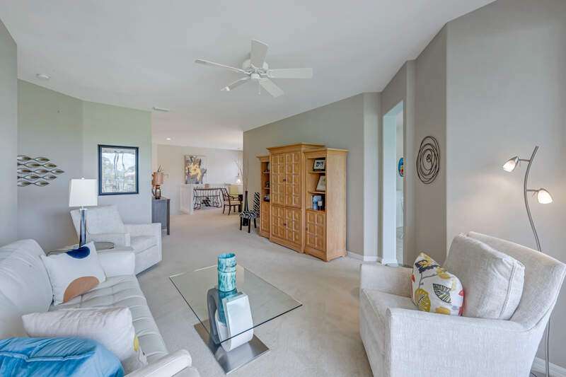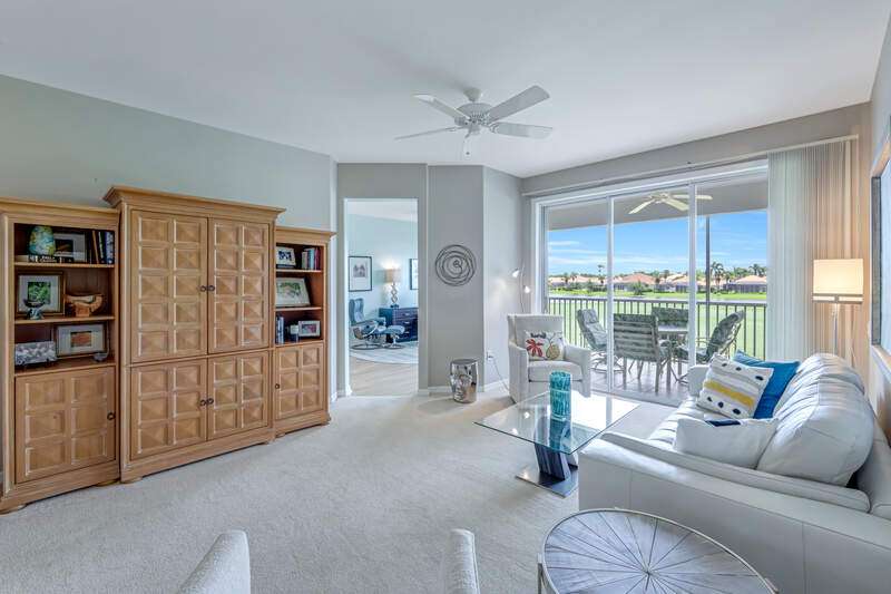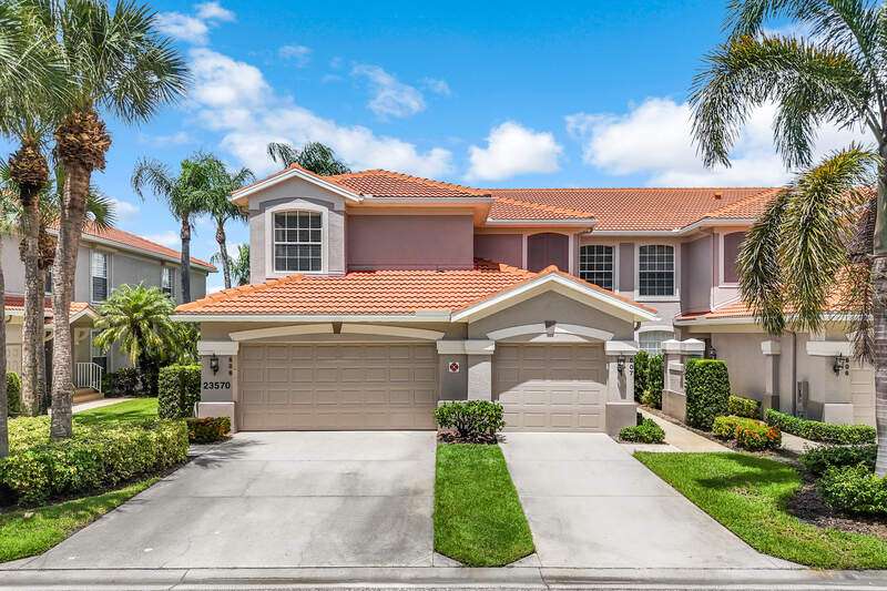 NEW EXCEPTIONAL OFFER on this rarely available upstairs END-UNIT coach home in the premier Wisteria Point neighborhood of Copperleaf! This spacious residence includes a TWO-CAR GARAGE and offers breathtaking long lake, golf course, and fountain views. Inside, you'll find luxury flooring in the entry, kitchen, and gathering room paired with plush new carpet and abundant natural light throughout. A separate laundry room adds convenience, while the oversized guest bedroom delights with a cozy day seat and storage underneath. Both bathrooms have been beautifully renovated with raised-panel cabinetry, granite countertops, new mirrors, and updated light fixtures. The primary bath shines with elegant finishes, all-new cabinetry, and a frameless glass shower with seating. The kitchen has been completely renovated as well, featuring new cabinetry, countertops, and lighting. Additional garage shelving provides excellent storage. Wisteria Point is known as the most social neighborhood within Copperleaf, setting itself apart with its active calendar of trips, game nights, social gatherings, and community events. Neighbors enjoy a true sense of connection, making this one of the most desirable places to live in the community. Residents also benefit from their own private pool and spa along with a dedicated social gathering area just steps away. Copperleaf itself is one of the most desirable bundled-golf communities in Southwest Florida, celebrated for being the lowest-density bundled golf community in the region. The newly completed clubhouse renovation offers a brand-new modern design with a wide variety of amenities, including the popular Osprey outdoor bar, fitness, tennis, bocce ball, spa, geothermal-heated resort pool, and a private on-site restaurant. The golf course is both challenging and highly playable, supported by a full practice facility with putting green, chipping area, and driving range. A bocce league with 400+ players, pickleball at the Commons Club, and endless social events make this one of the most engaging communities you'll find. In addition, residents have the opportunity to join The Commons Club through a separate private membership. The Commons Club offers a private Beach Club on Little Hickory Island with convenient parking, grilling areas, and games; a state-of-the-art Health & Wellness Center with expert-led programming, personal training, group fitness, and the latest equipment; The Rookery, a private waterside restaurant; seven newly built pickleball courts; a vibrant social calendar; and a dedicated Enrichment Center for member activities, learning, and community events. The location is unmatched-just minutes to Coconut Point, Miromar Outlets, Gulf Coast Town Center, and a short drive to RSW International Airport and white sandy beaches. Copperleaf truly offers an active, connected, and resort-style lifestyle.