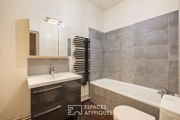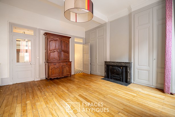 This apartment has all the charm of the old: beautiful solid parquet flooring, moldings, interior wooden shutters and volumes are all present, as is a fireplace. A closed and equipped kitchen and a bathroom with a bathtub complete the ensemble. With its atypical distribution but without losing comfort, this east-west facing apartment benefits from lovely light. Its recent renovation, its numerous storage spaces and its privileged location make this apartment a rare property and one to visit without delay.