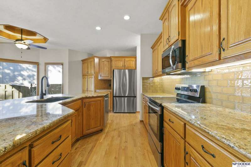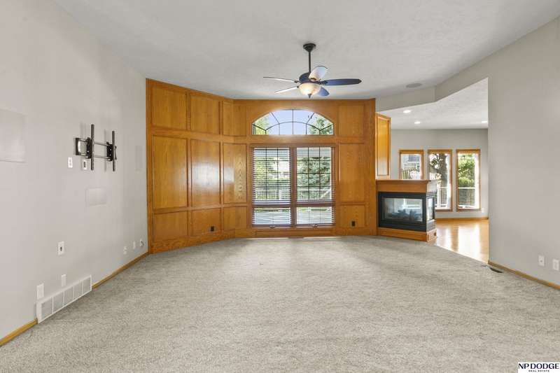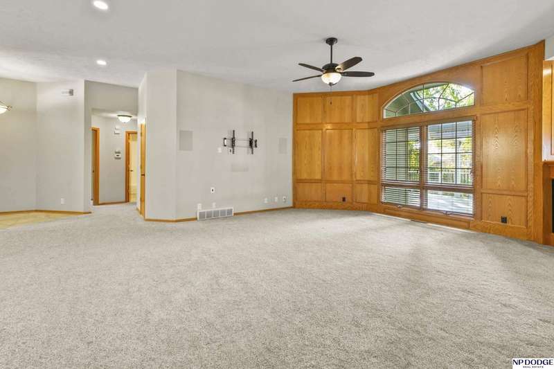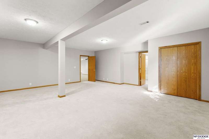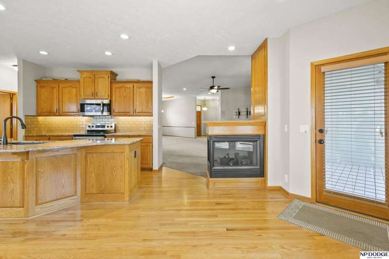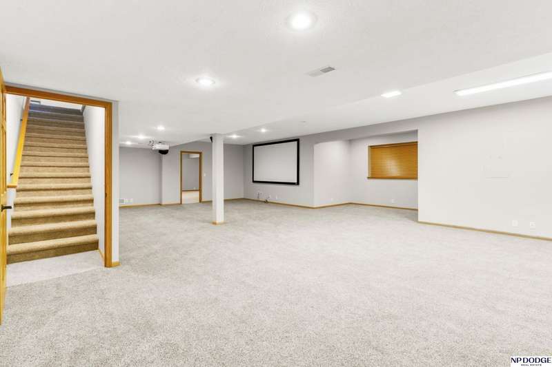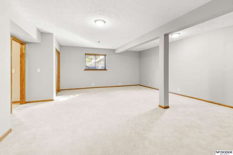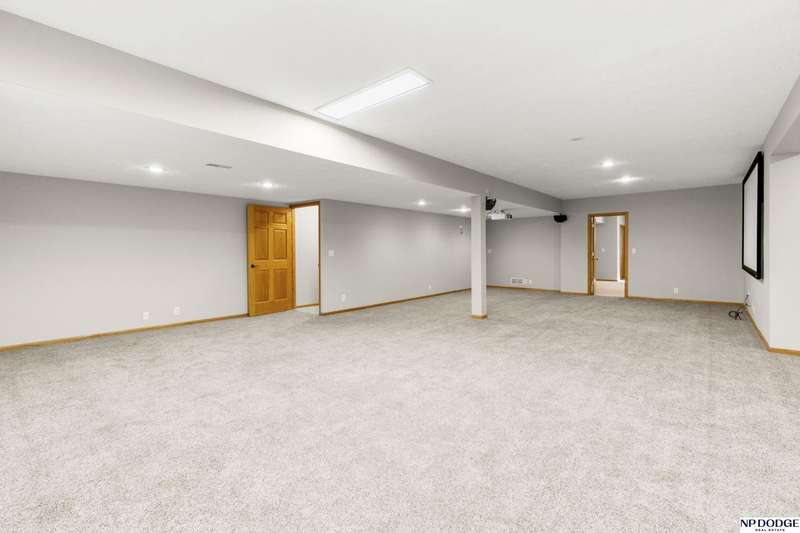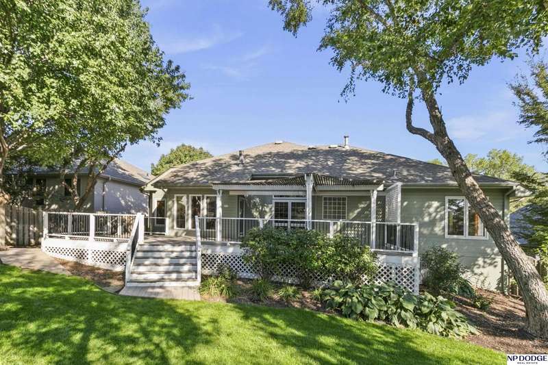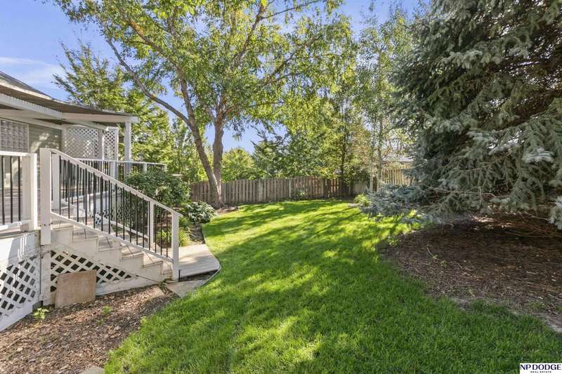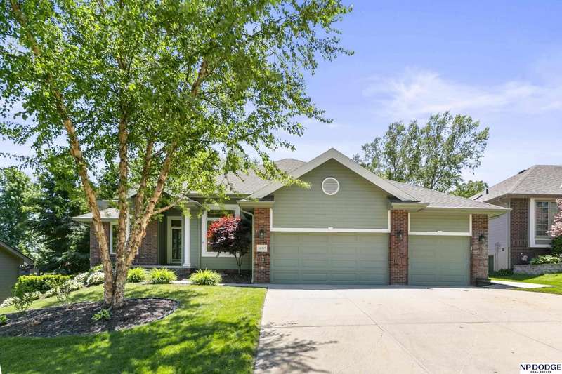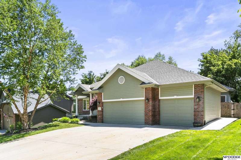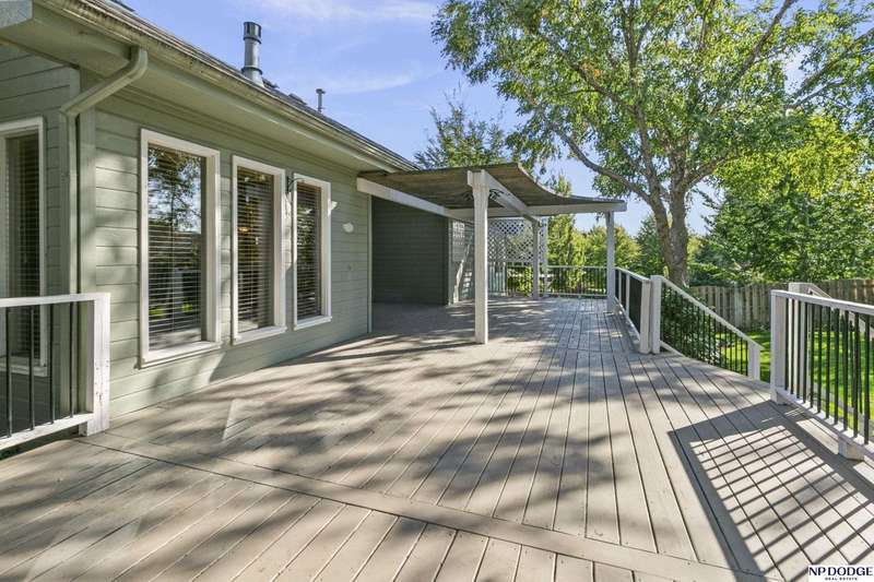 Spacious 3-car ranch with almost 3900 finished sq ft. nestled on a private, tree-lined lot across from neighborhood walking trail! Enjoy new interior paint throughout. The kitchen features, SS Appliances, granite counters, two sided fireplace, tons of cabinetry, two dining areas, a large pantry and opens to an expansive backyard deck and pergola, perfect for gatherings or quiet mornings. The lower level offers a completely separate living space with a huge rec room w/ movie theatre (projector and screen are included), a full bath, an dorm like third bedroom, and tons of storage. Located in the desirable Millard School District. Major updates include new HVAC and a remodeled laundry room in 2023. Move-in ready with room to grow, relax, and entertain. Home has been pre-inspected.