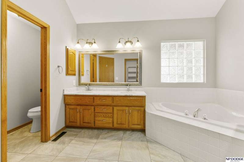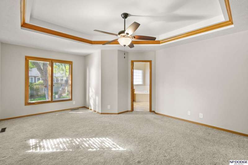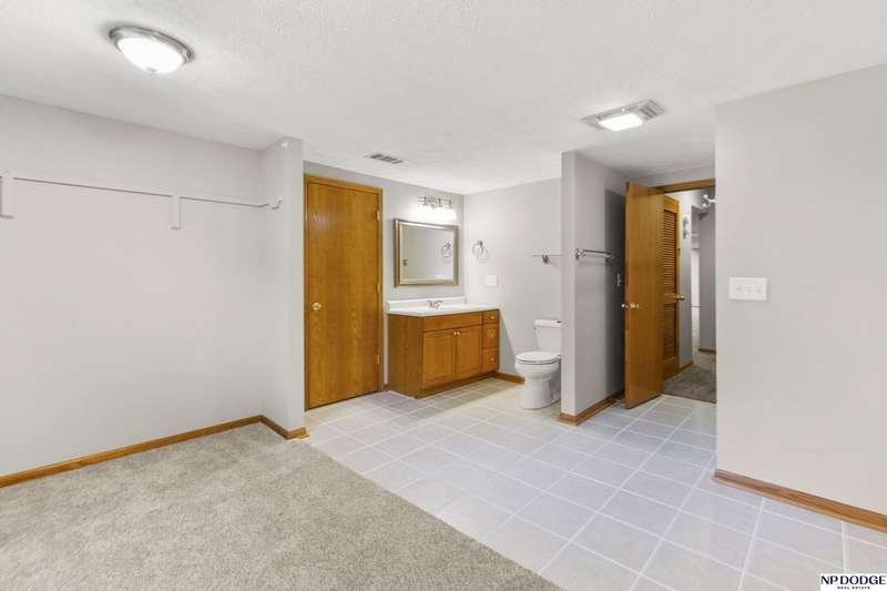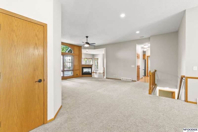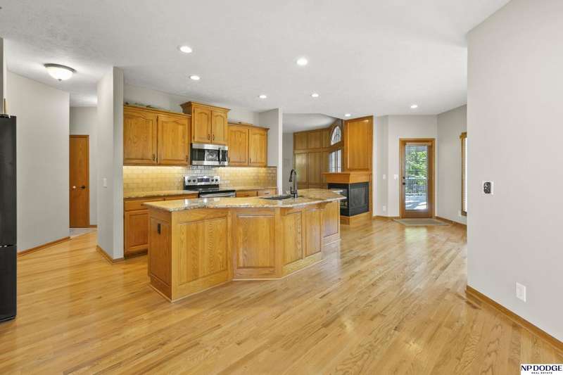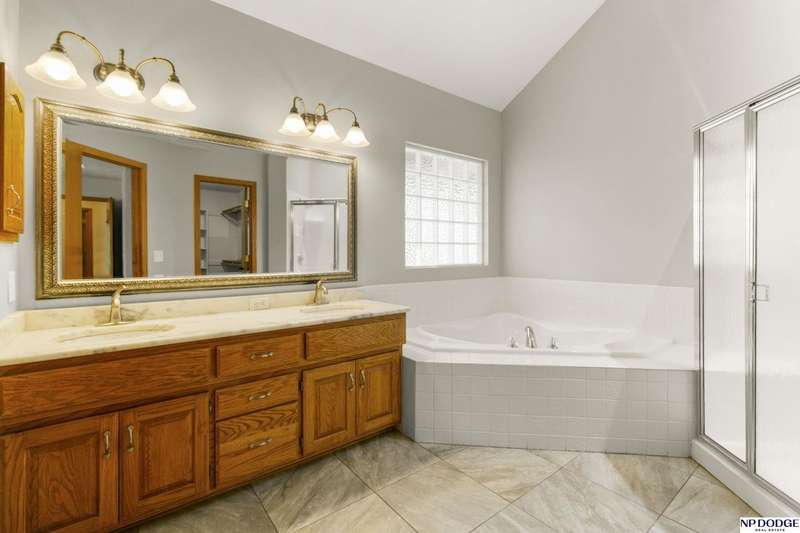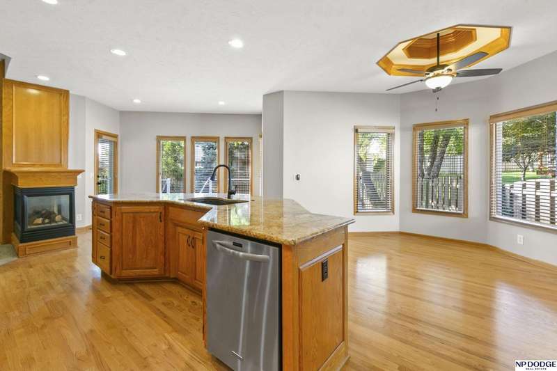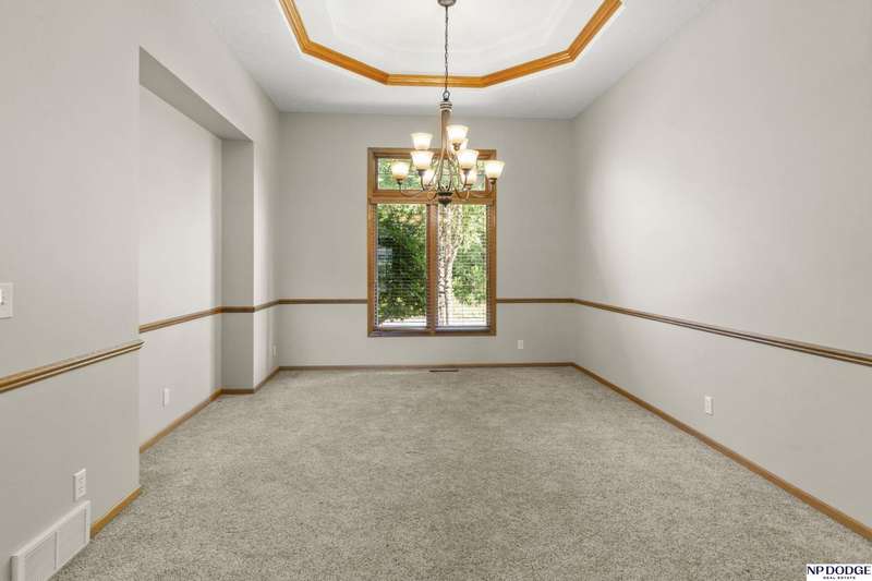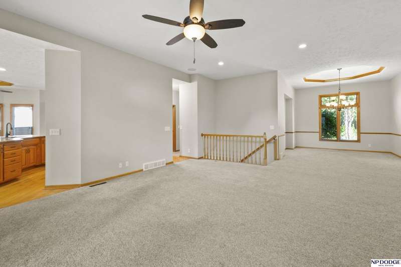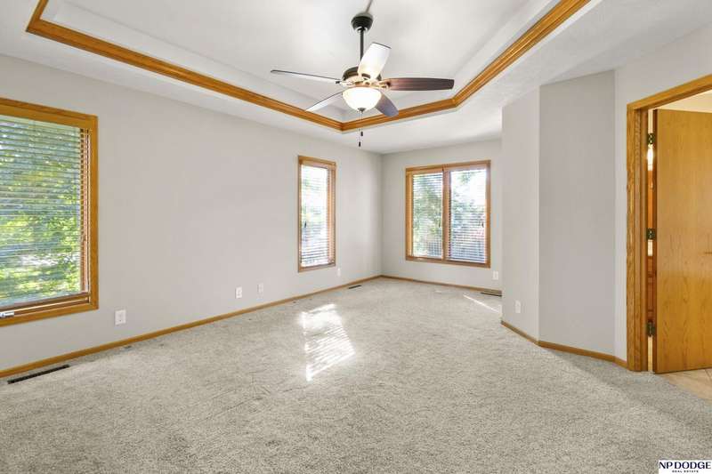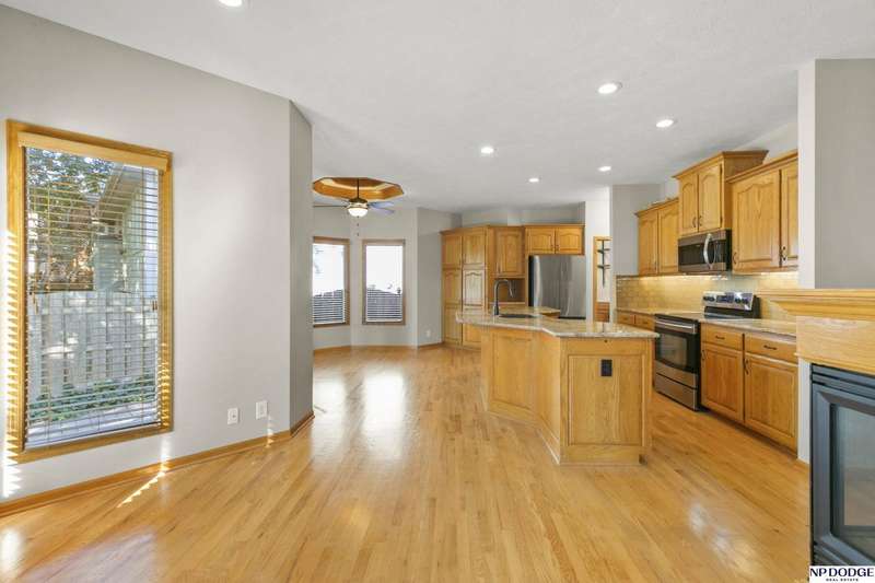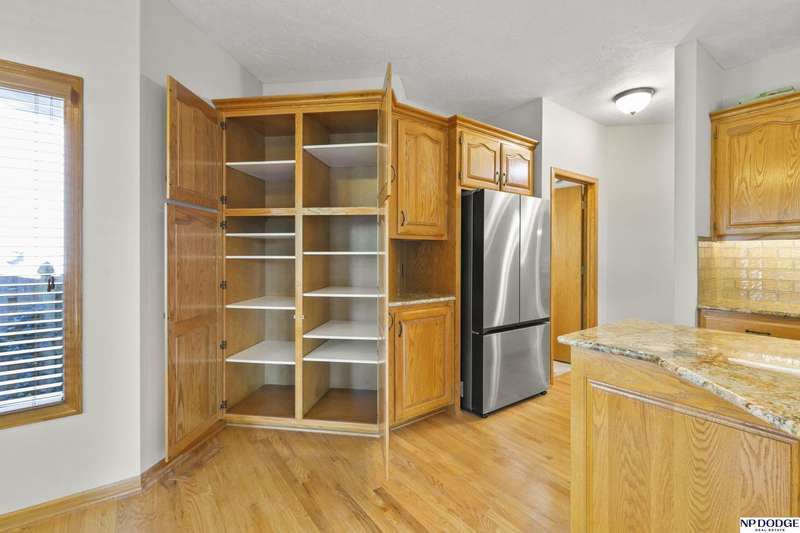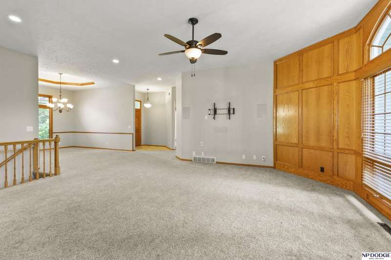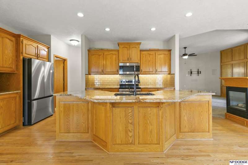 Spacious 3-car ranch with almost 3900 finished sq ft. nestled on a private, tree-lined lot across from neighborhood walking trail! Enjoy new interior paint throughout. The kitchen features, SS Appliances, granite counters, two sided fireplace, tons of cabinetry, two dining areas, a large pantry and opens to an expansive backyard deck and pergola, perfect for gatherings or quiet mornings. The lower level offers a completely separate living space with a huge rec room w/ movie theatre (projector and screen are included), a full bath, an dorm like third bedroom, and tons of storage. Located in the desirable Millard School District. Major updates include new HVAC and a remodeled laundry room in 2023. Move-in ready with room to grow, relax, and entertain. Home has been pre-inspected.