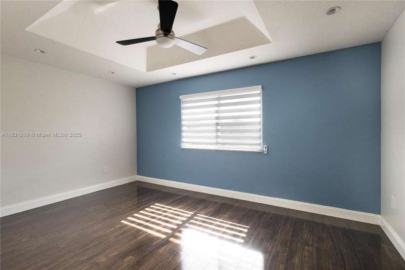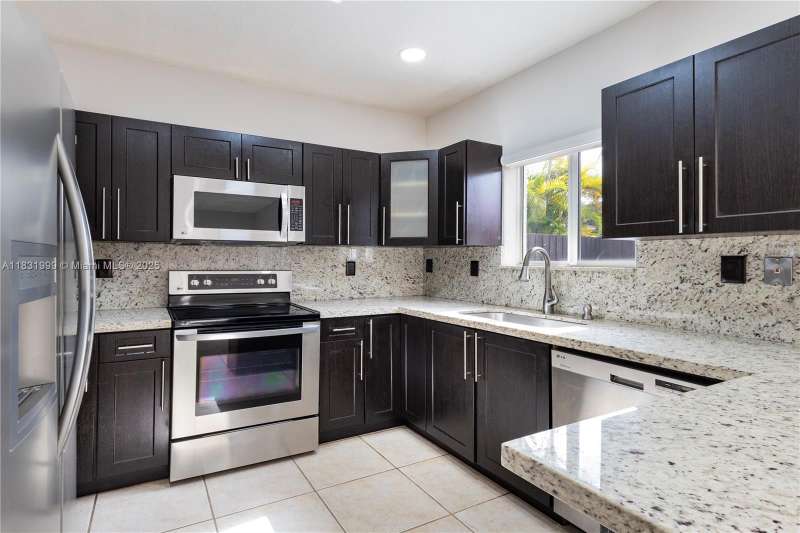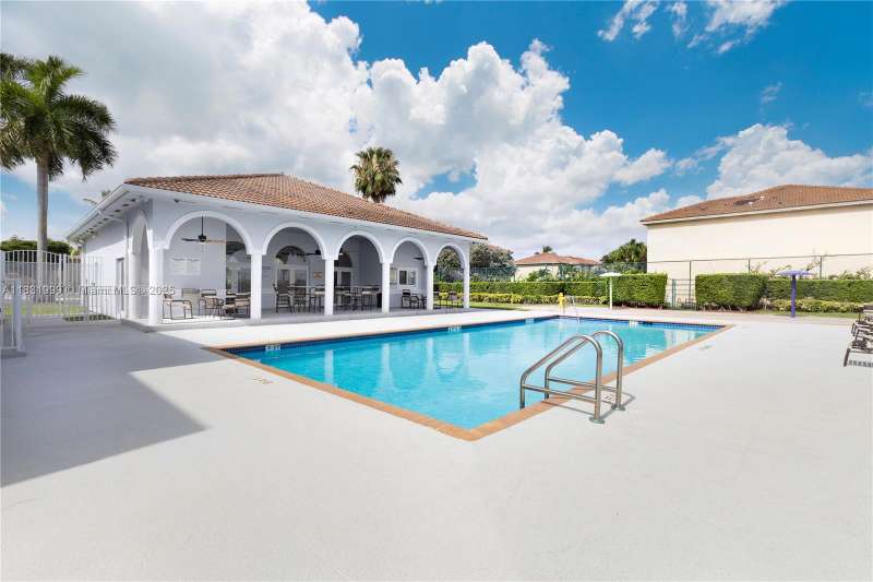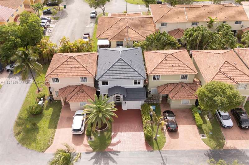 Spectacular well-maintained single-family home in a gated community at Kendall. 3 bedrooms, 2.5 bathrooms, plus a wet bar. Granite countertops, stainless steel appliances, washer & dryer, ceiling fans, Impact-resistant windows and doors installed in 2024, pre-wired for professional security camara system, tile flooring throughout the first floor & luxury laminated wood floor on the secund level. Carrier AC unit with Nest Thermostat, blinds installed in windows and doors, covered shed, fenced & paved patio. This pet-friendly community has 24/7 security guard, clubhouse, gym, pool, racquetball court, basketball & tennis court, playground & plenty guest parking spaces. Located near Costco, Zoo Miami, Walmart, Publix, 30 minutes to MIA. Must see!