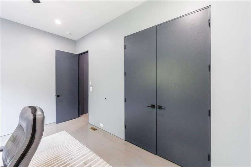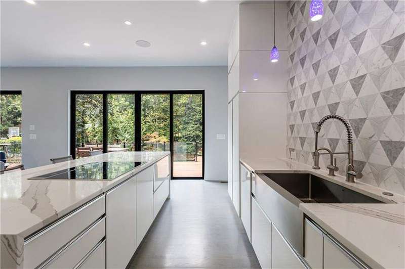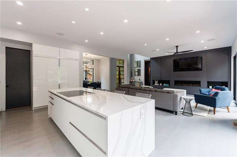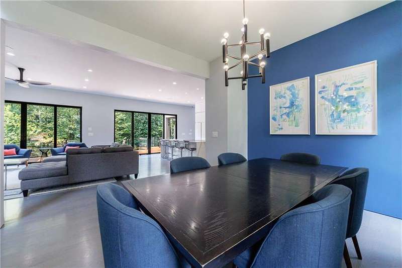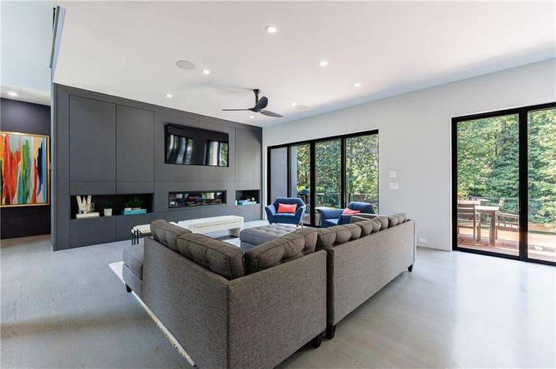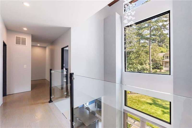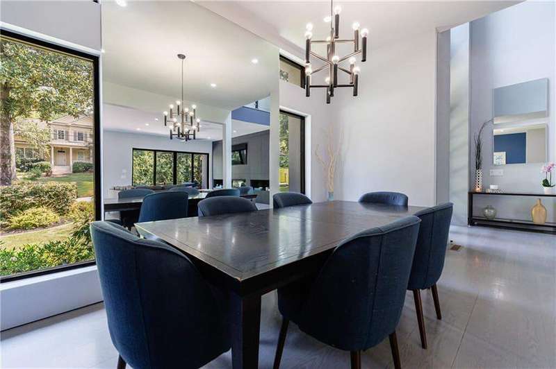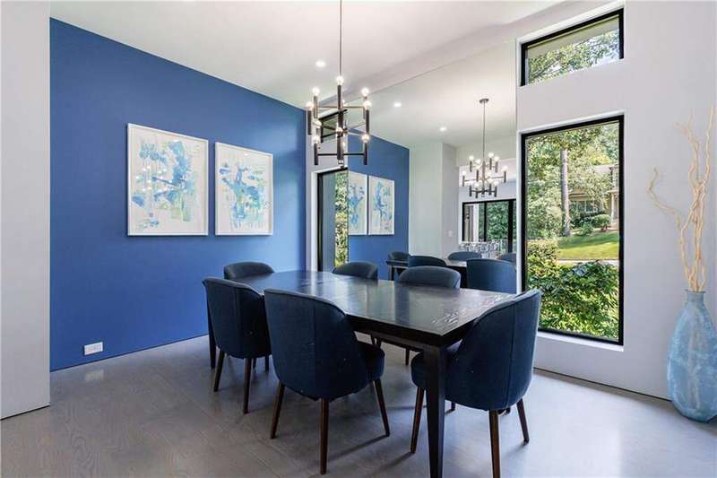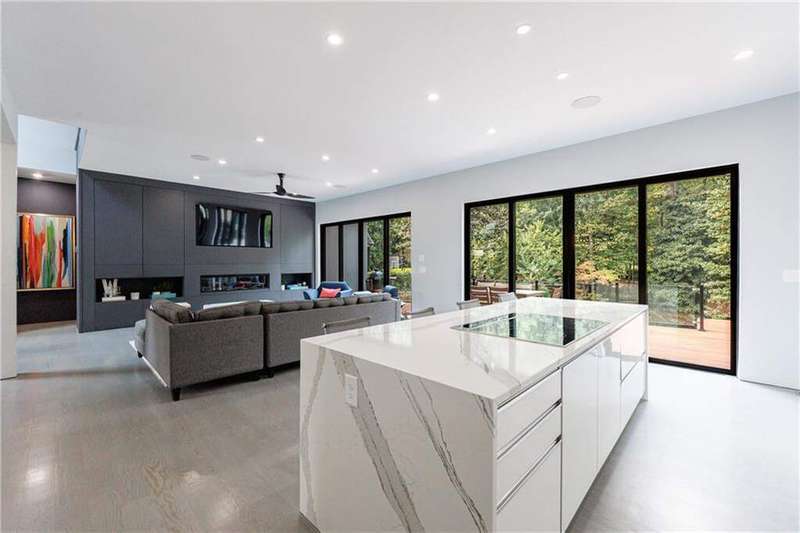 Tucked away on a quiet, tree-lined street in the heart of Buckhead, this exceptional modern residence sits on a private and expansive 0.83+/-acre lot-just minutes from top-rated schools, premier shopping, PATH 400, and all that Atlanta has to offer. From the moment you enter, the home captivates with its light-filled, open-concept main level, soaring ceilings, and clean, contemporary lines. The spacious great room seamlessly flows into a stunning chef's kitchen, featuring a dramatic quartz waterfall island, top-of-the-line Miele and Sub-Zero appliances, custom soft-close cabinetry, and double ovens, including a steam oven. The main level offers a formal dining room, a dedicated home office, and a private guest suite with a full bath. A spacious two-car garage with soaring 16-foot ceilings is also located on this level, the garage already has an indoor basketball hoop but could also be transformed into a car lift system, making it a perfect fit for automotive enthusiasts or collectors. The two car garage is complete with two electric car chargers. Another feature of the home is a total of seven electric shades throughout the house, the electric shades on the main living area doors can remain open while keeping out the sun, insects etc. The two electric shades on the covered outdoor deck on the main level can transform the space from an open-air setting to a fully enclosed screened porch - a truly impressive and versatile feature. A modern staircase leads to the upper level, where you'll find three generously sized en-suite bedrooms, plus a versatile bonus room ideal as a second office or a fourth upstairs bedroom. The primary suite is a true retreat with a spacious walk-in closet and a luxurious spa-inspired bathroom, complete with a steam shower and Japanese insulated soaking tub-perfect for hot/cold plunge therapy. The finished terrace level includes a guest bedroom, home gym, media room, and an oversized single garage-an ideal setup for an au pair or in-law suite with private exterior access. Each level of the home offers seamless indoor-outdoor living, with over 2,000 square feet of deck and patio space. Step outside to your resort-style backyard oasis, where you'll find a breathtaking infinity-edge pool with waterfalls, integrated spa, fire pit, and a level lawn-perfect for play, entertaining, or simply relaxing in total privacy. Designed with sustainability and quality in mind, this home features a solar array with battery backup, spray foam insulation, and energy-efficient windows for optimal comfort and efficiency. Premium materials include a durable TPO roof, IPE wood cladding and decking, modern solid wood doors, architectural hard plank, and stucco exterior-blending cutting-edge design with timeless craftsmanship.
