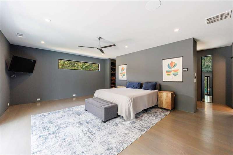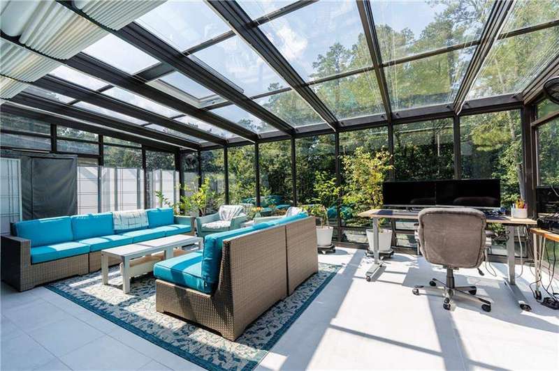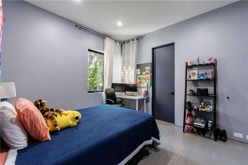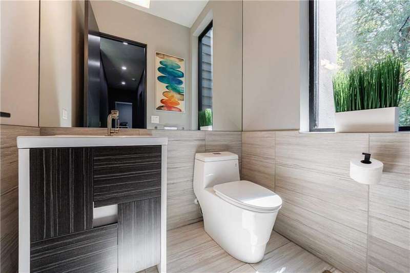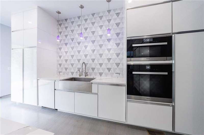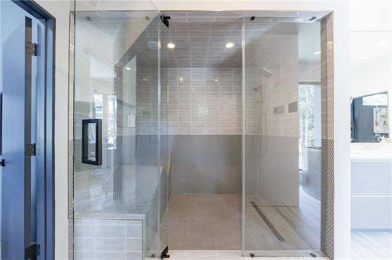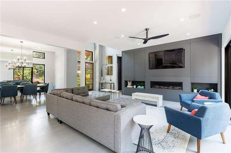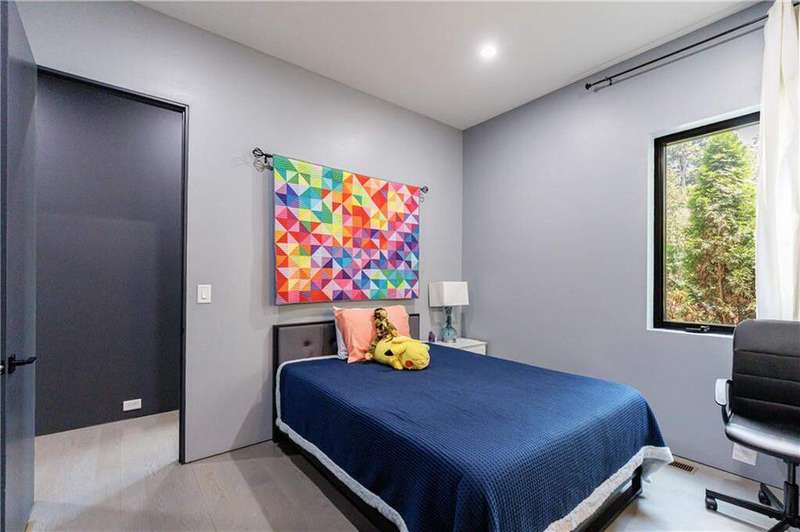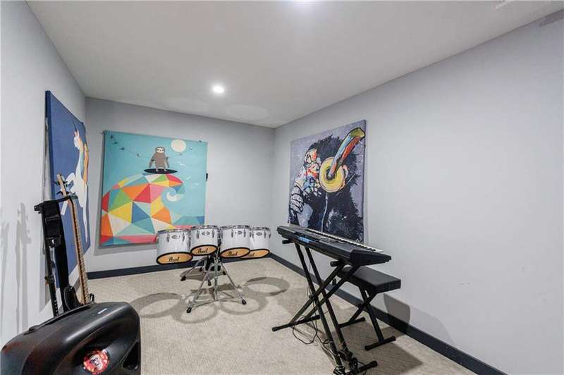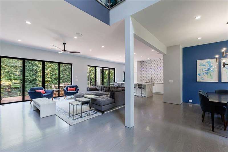 Tucked away on a quiet, tree-lined street in the heart of Buckhead, this exceptional modern residence sits on a private and expansive 0.83+/-acre lot-just minutes from top-rated schools, premier shopping, PATH 400, and all that Atlanta has to offer. From the moment you enter, the home captivates with its light-filled, open-concept main level, soaring ceilings, and clean, contemporary lines. The spacious great room seamlessly flows into a stunning chef's kitchen, featuring a dramatic quartz waterfall island, top-of-the-line Miele and Sub-Zero appliances, custom soft-close cabinetry, and double ovens, including a steam oven. The main level offers a formal dining room, a dedicated home office, and a private guest suite with a full bath. A spacious two-car garage with soaring 16-foot ceilings is also located on this level, the garage already has an indoor basketball hoop but could also be transformed into a car lift system, making it a perfect fit for automotive enthusiasts or collectors. The two car garage is complete with two electric car chargers. Another feature of the home is a total of seven electric shades throughout the house, the electric shades on the main living area doors can remain open while keeping out the sun, insects etc. The two electric shades on the covered outdoor deck on the main level can transform the space from an open-air setting to a fully enclosed screened porch - a truly impressive and versatile feature. A modern staircase leads to the upper level, where you'll find three generously sized en-suite bedrooms, plus a versatile bonus room ideal as a second office or a fourth upstairs bedroom. The primary suite is a true retreat with a spacious walk-in closet and a luxurious spa-inspired bathroom, complete with a steam shower and Japanese insulated soaking tub-perfect for hot/cold plunge therapy. The finished terrace level includes a guest bedroom, home gym, media room, and an oversized single garage-an ideal setup for an au pair or in-law suite with private exterior access. Each level of the home offers seamless indoor-outdoor living, with over 2,000 square feet of deck and patio space. Step outside to your resort-style backyard oasis, where you'll find a breathtaking infinity-edge pool with waterfalls, integrated spa, fire pit, and a level lawn-perfect for play, entertaining, or simply relaxing in total privacy. Designed with sustainability and quality in mind, this home features a solar array with battery backup, spray foam insulation, and energy-efficient windows for optimal comfort and efficiency. Premium materials include a durable TPO roof, IPE wood cladding and decking, modern solid wood doors, architectural hard plank, and stucco exterior-blending cutting-edge design with timeless craftsmanship.