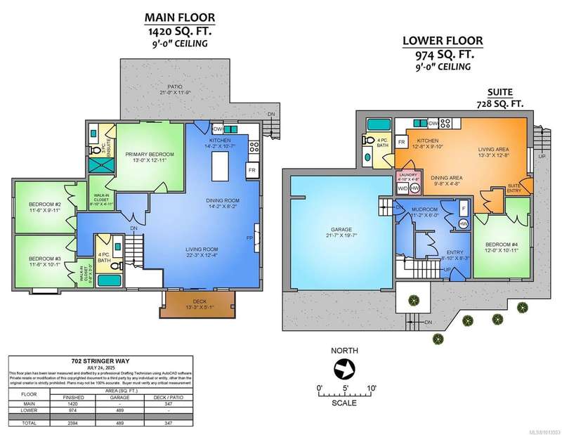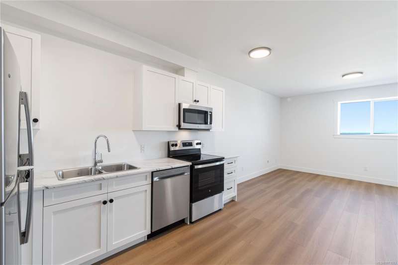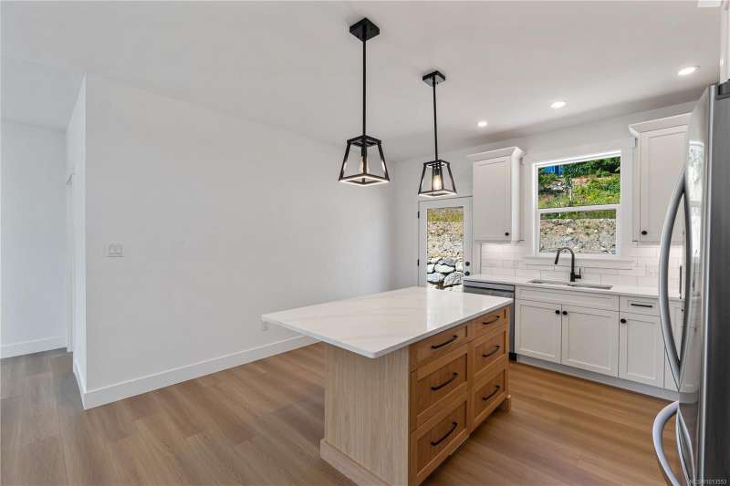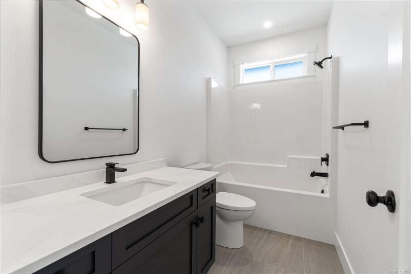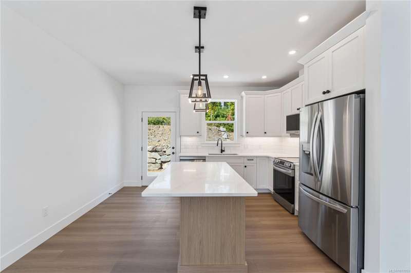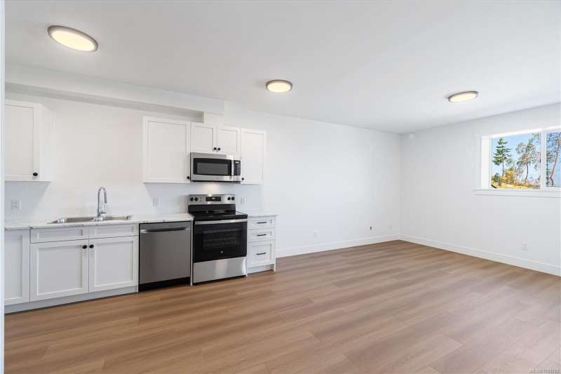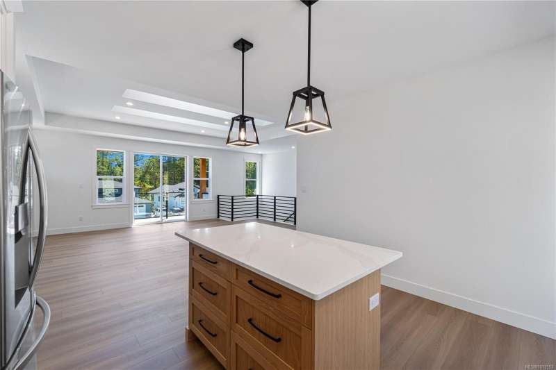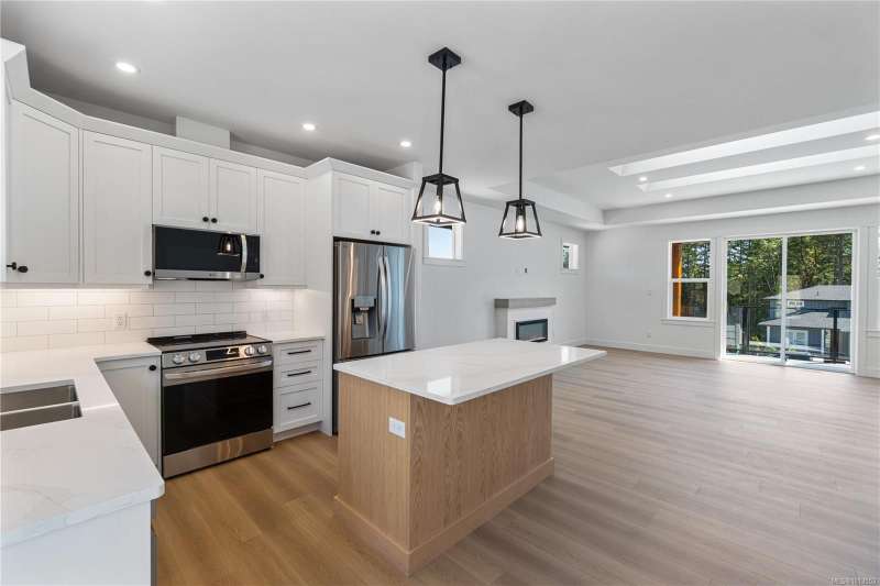 Welcome to this stunning 4 bedroom, 3 bathroom ocean view home including 1 bedroom legal suite! Crafted by Owen Gardiner Construction Ltd, this brand new build spans over 2300 sqft and boasts a spacious main living area with open concept kitchen, dining and great room areas. The home is perfect for hosting family gatherings or entertaining friends, whether cozied up by the fireplace indoors or enjoying views of the ocean from the outdoor sundeck. The primary suite is spacious with large walk in closet, and three piece ensuite. Two more sizeable bedrooms, and a four piece main bath complete the main floor. The lower level offers a mudroom and a two-car garage for the main house, as well as the ample one-bedroom suite that boasts its own private entrance and separate laundry. Nestled on a generous 10,977 sqft lot in a peaceful, family friendly neighbourhood, this home is just a short drive from all essential amenities. All measurements are approximate & should be verified if important.