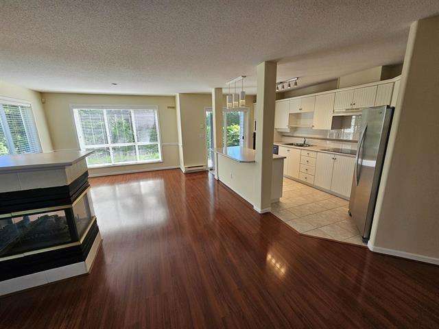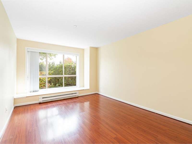One of the largest units in Nautica North. This main floor 2 bed, 2 bath corner unit represents 1179 sqft of open concept living with plenty of outside space. The unit has an 8x8 deck off the dining area, as well as a fenced patio and a private entrance off the kitchen. The unit includes modern appliances, laminate flooring, gas fireplace, large foyer, spacious living & dining areas, in-suite laundry, pantry, convenient cross hall storage locker & two large parking stalls. This home has all you will need for a comfortable lifestyle. Close to schools and many other amenities that the Steveston South community has to offer. The unit is ready to move in or renovate as you desire. Open House Saturday October 4th 2pm - 3:30pm