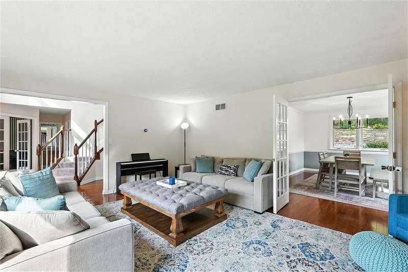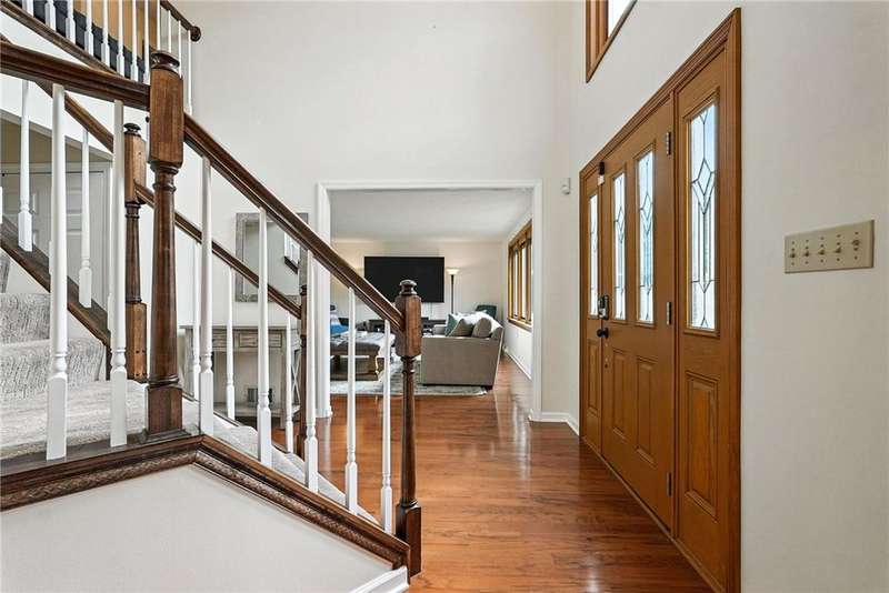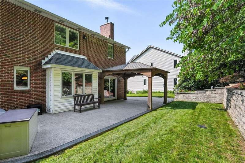Live the American Dream at 275 Jefferson in Franklin Estates! This 4-bed, 3.5-bath home blends style and function with a light-filled two-story foyer and open family room featuring new flooring. The modern kitchen offers granite countertops and stainless steel appliances. A first-floor office and main-level laundry add everyday ease. Upstairs, new flooring continues throughout all four spacious bedrooms. Enjoy a newly extended backyard oasis with a stone retaining wall, patio, and pergola set against a wooded hillside. Smart home features, Pella LowE High UV windows, and ample storage make this home future-ready. A three-car garage and recently expanded driveway offer plenty of parking. Don't miss this move-in-ready gem!