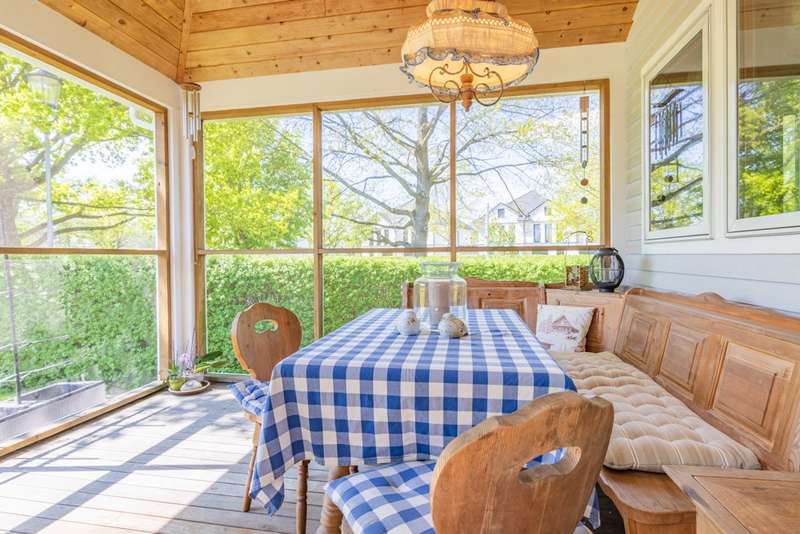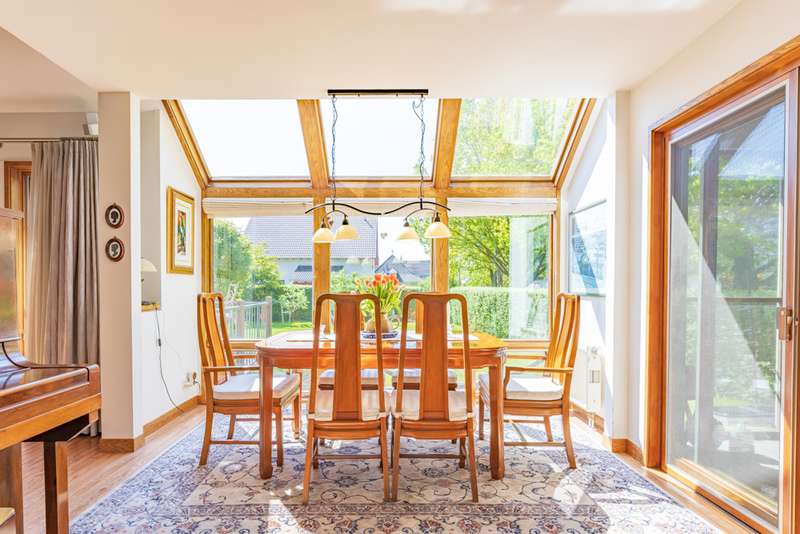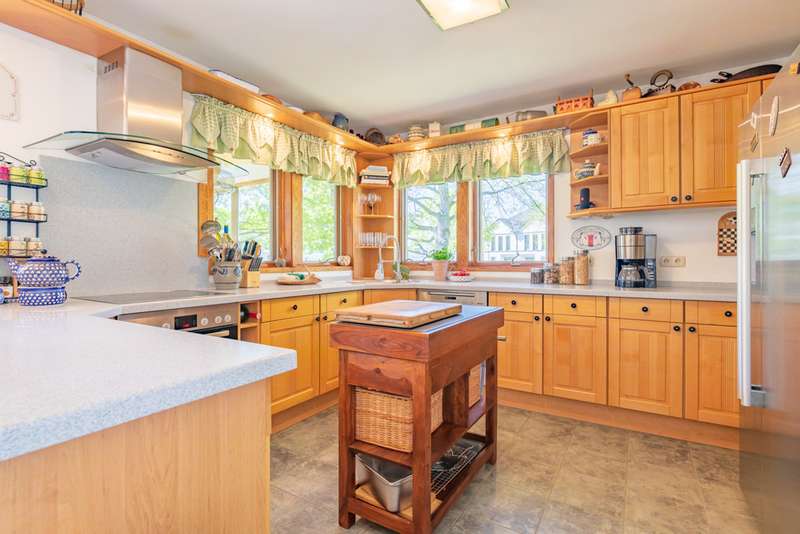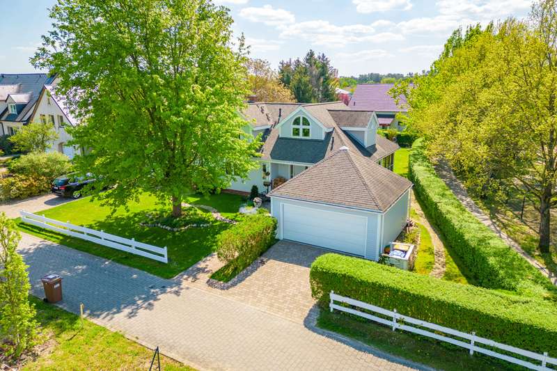 The semi-detached house in American style is located in an attractive housing estate at the Golf- und Countryclub Seddiner See. The two semi-detached houses with a size of approx. 137 m2 and 92 m2 were built in 1998 and can be optionally combined. The house has an upscale equipment quality. The smaller semi-detached house offers 3 rooms, kitchen and 2 bathrooms, the larger semi-detached house is divided into 4 rooms, kitchen and 2 bathrooms. Generous terraces and a veranda complete the room offer. The existing house constellation offers various possibilities of use, e.g. the living together of 2 generations, living and working or also self-use combined with renting. The house impresses by its high-quality equipment details such as parquet floors, fireplaces and American fitted kitchens. Further comfort is offered by an alarm system, a central vacuum cleaner and various built-in wardrobes. A fast internet connection is available via a fiber optic connection. The south-facing property invites you to stay and relax. An irrigation system is installed in the garden, which is fed by its own well. A double garage with wallbox for electric mobility completes the attractive offer. The property is not only a real gem, but also impresses with its good connections to Berlin as well as its location in the immediate vicinity of the golf course.