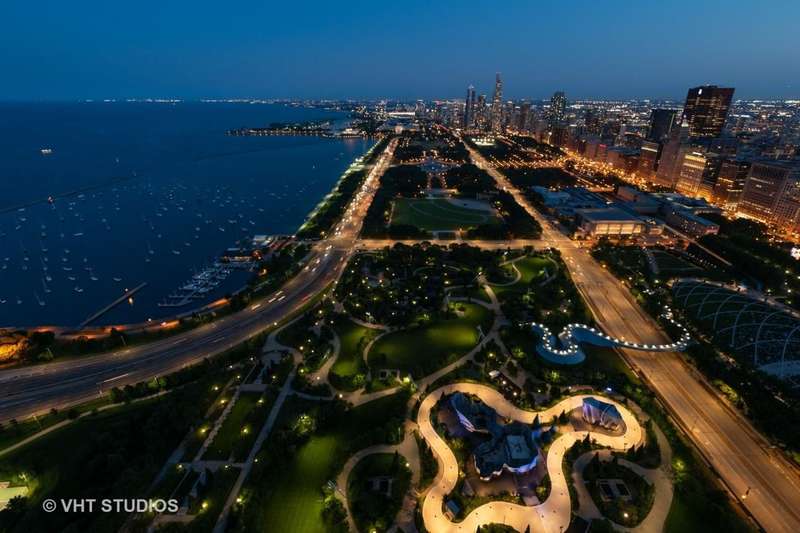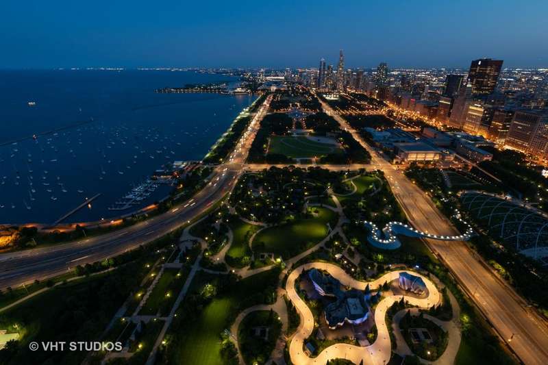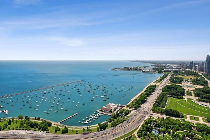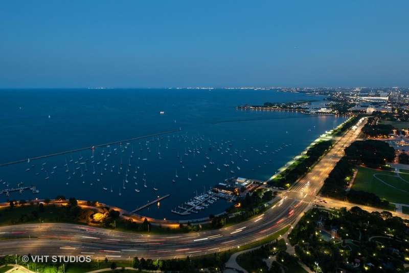 Closer to Heaven from 51. Lakeshore East's Prize, 340 On the Park. Residence 5103 is a 3/4 bedroom completely south facing home with the very best views the building offers including Lake Michigan, Maggie Daley, Grant and Millennium Parks Buckingham Fountain, Museum Campus, Soldier's Field, Michigan Avenue's Architectural Wall. FULL HEIGHT 10' WINDOWS, formal entry, open kitchen concept, Snaidero cabinetry, quartz counters, stainless steel GE Monogram appliances, gas cook top, vented culinary hood, seating at the counter peninsula, enormous split bedroom floor plan. Dining, living and family room areas in a 40' wide open space. 2nd and 3rd bedroom in tandem, laundry room, formal entry, half bath, a fully enclosed home office or 4th bedroom, primary suite with balcony, walk in closet, linen closet, dual vanity, separate soaking tub and shower. 340 on the Park offers a full amenities building including 24 hour door staff, package receiving, onsite management, maintenance and engineering staff, dry cleaners, pet relief area, 25th floor dedicated to residents including 75' indoor, two lane lap pool, whirlpool, sauna, steam rooms, sundeck, gas grills, Hospitality room known as our Winter Garden, private conference/dining room and complete kitchen, 4000 square foot gym including Pelotons. Two first floor heated garage parking spaces included in the price, P1-34 with an attached urban basement and P1-65. Walk to the world with Mariano's your first stop right outside our backdoor.