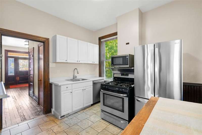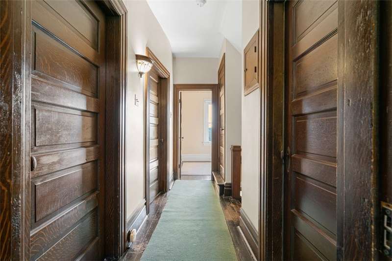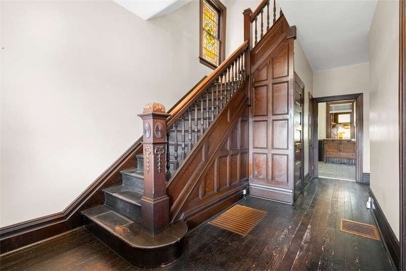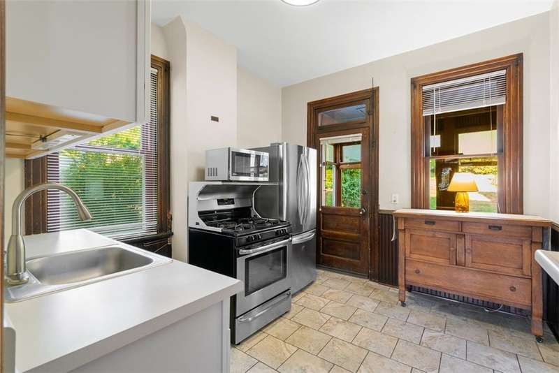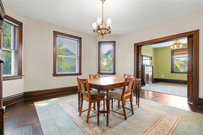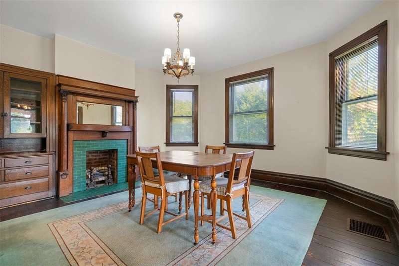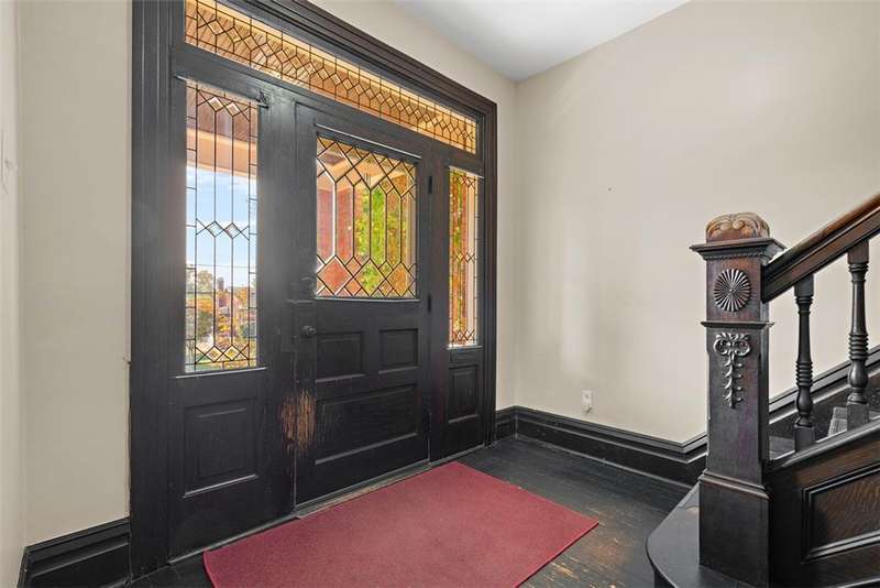 Located in Crafton, this charming Victorian home beautifully preserves its original features. Inside, untouched woodwork, elegant pocket doors in both the entry and living room, and stunning fireplaces highlight the craftsmanship of yesteryear. High baseboards, built-in display cabinets, and intricate stained and leaded glass windows add historic charm. The brick exterior offers durability and timeless curb appeal, while the large yard provides plenty of outdoor space. The covered rear porch is perfect for relaxing or entertaining. The front porch just needs a swing to become a cozy retreat. Completing the home is a spacious two-car garage, offering convenience and modern comfort. This residence is a rare gem, blending historic elegance with ample space and character.