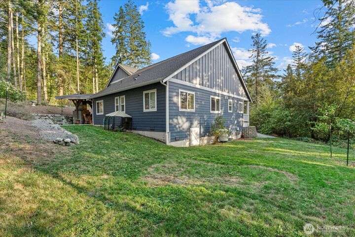 This beautifully maintained home is situated on an oversized lot in a peaceful setting. The large workshop provides ample space for all your hobbies and toys with easy access. The main level features vaulted ceilings and an open floor plan, along with a bonus room above the garage. A great kitchen for entertaining, all designed for easy living in a comfortable setting. Enjoy the covered back patio and outdoor fireplace, surrounded by trees, offering plenty of room to grow and play. Chicken coop and playhouse all add to the charm. This lovingly cared-for 3-bedroom home is updated and move-in ready. Additionally, the property is conveniently located near the island's beaches and parks, providing easy access to various amenities.