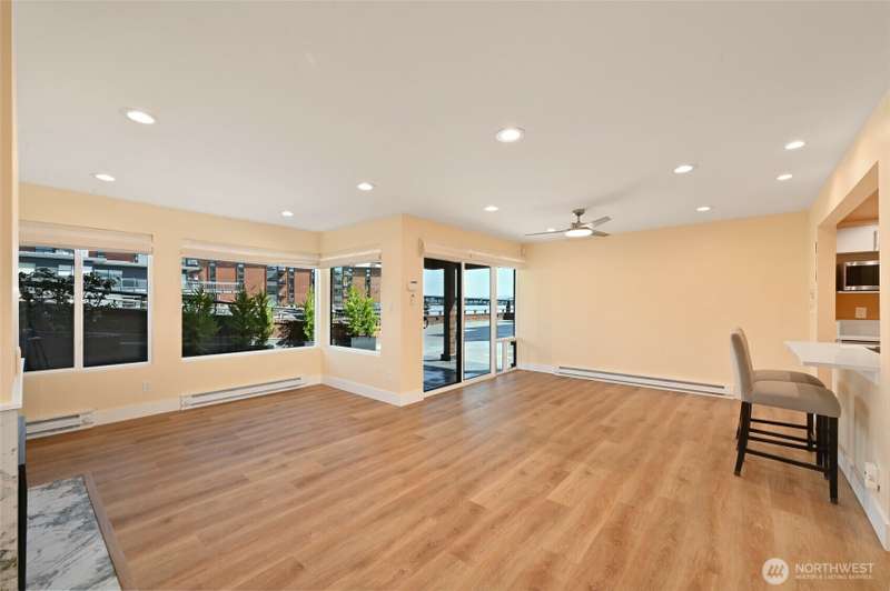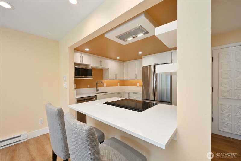 Waterfront retreat on Lake Washington this beautifully renovated home offers the perfect in-city residence or pied-à-terre. Completely rebuilt down to the studs in 2021, it features a chef-worthy kitchen with quartz counters, high-end cabinetry, and appliances—all oriented to take in the lake view. Enjoy the serene outlook from the patio, living, and dining areas. The ideal north-facing orientation offers cool comfort in summer, enhanced by the soothing sounds of the lake. Prefer the sun? Head outside to the pool or dock and take in Mt. Rainier from the south-facing deck. Engineers will appreciate the new electrical panel, building elevators, double-pane windows, updated cable. Steps to Madison Park. On-site manager.