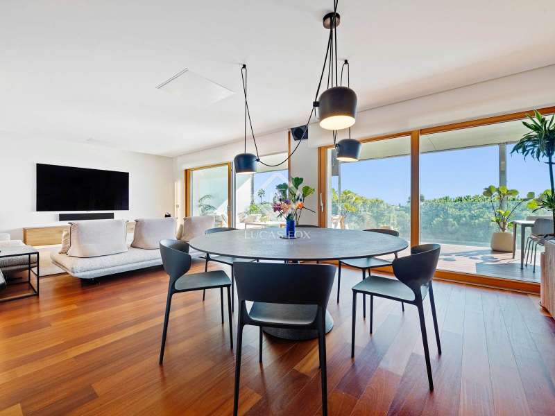 Lucas Fox has the privilege of presenting this distinguished 215 m² property, where luxury, spaciousness and refinement come together in an exceptional location, just a few meters from Arrabassada Beach, Via Augusta Avenue and the historic centre of Tarragona. Located in one of the most prestigious areas of the city, this residence stands out not only for the quality of its finishes, but also for the generosity of its spaces and its magnificent private terrace of more than 60 m², designed to enjoy the outdoors with absolute privacy and elegance. Access is through a lobby that divides the property into two distinct wings. On one side, the spacious and functional separate kitchen is accompanied by a utility room area, a staff bedroom or study, and a guest toilet. On the other side, the impressive living-dining room, bathed in natural light thanks to its large windows, opens seamlessly onto the spectacular terrace, ideal for enjoying time with loved ones, relaxing, or hosting unforgettable evenings. The bedroom area houses four additional bedrooms. The master suite features an elegant dressing room, private bathroom , and direct access to the terrace. The other bedrooms, all doubles with a simple yet functional design, share a full bathroom ; two overlook the communal areas , and a third also has access to the exterior. The property is complemented by a splendid landscaped communal area with a swimming pool, a box-type garage with capacity for three vehicles and a separate storage room , thus providing an extra touch of comfort and exclusivity. We invite you to discover this unique residence, where every corner has been designed to offer a distinguished, serene and truly exceptional living experience.