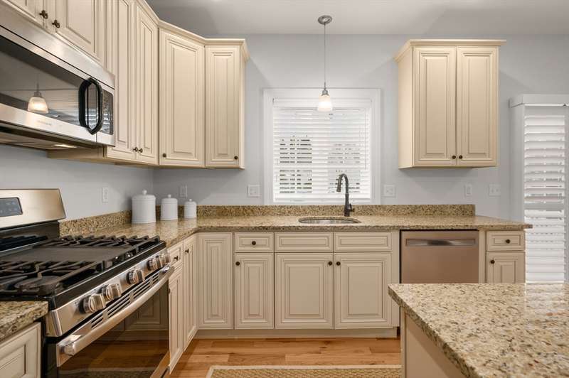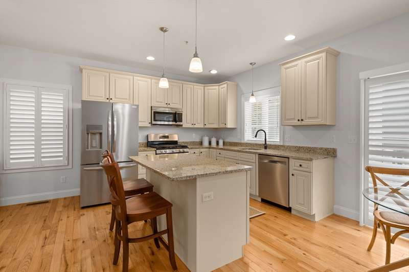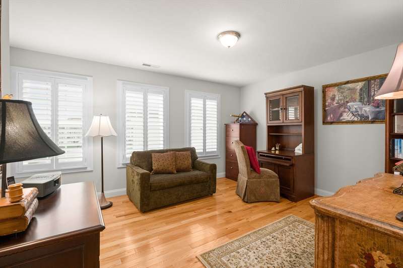 Highly coveted Carrington Estates detached 3 bedroom 2.5 bath condo is a rarte find! Simply stated and sophisticated style offers instant appeal. A thoughtful floorplan with a designer interior vibe. Inviting kitchen with warm toned maple and cabinetry and contrasting stone countertops flows seamlessly to the dining area. Expansive living room with gas fireplace and rich hardwood flooring throughout. Deck is easily accessed as well as the laundry and powder bath to complete the main level. Primary en suite with spacious bath and walk in closet, added dormer creates a cozy nook. Two additional generous size bedrooms and full bath provide ample space for any lifestyle. Gorgeous custom plantation shutters on all windows and oversized basement is ideal storage or future bonus space possibilities. Thriving community in sought after Bradford neighborhood. Comes see this stunning home!