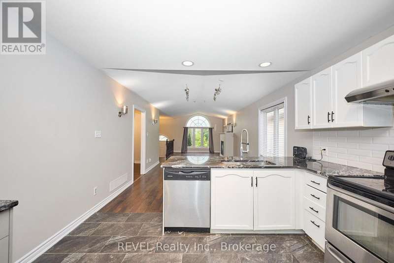 Welcome to 28 Quaker Road, located in Welland's highly sought-after North End! This raised bungalow offers space, style, and flexibility with 3+2 bedrooms, 2 full bathrooms and over 2000 sqft of finished living. The main floor stuns with a freshly painted, completely open-concept layout, soaring vaulted ceilings, and endless room for entertaining. Downstairs, discover a fully private in-law suite with its own separate entrance, private laundry, full kitchen with built-in dishwasher, and even a secluded side patio for outdoor relaxation. Parking? No problem, there's a huge driveway that fits 9 cars plus a double garage. All this in an unbeatable location just minutes to the highway, Seaway Mall, Niagara College, and every convenience you could want. (id:7434)