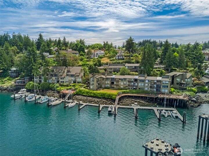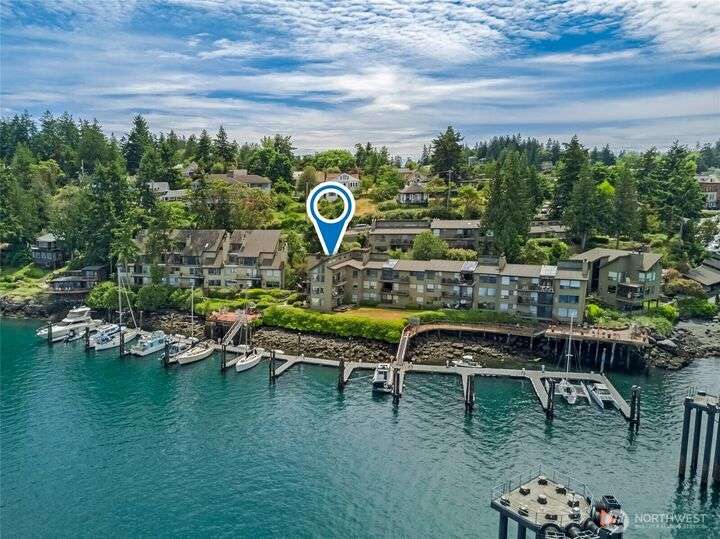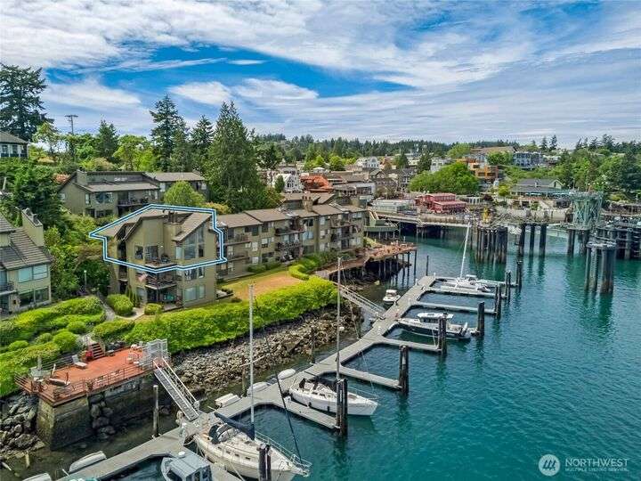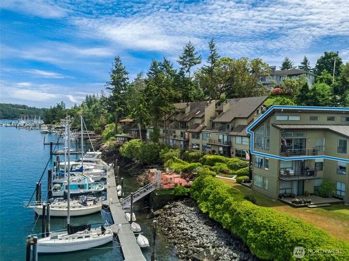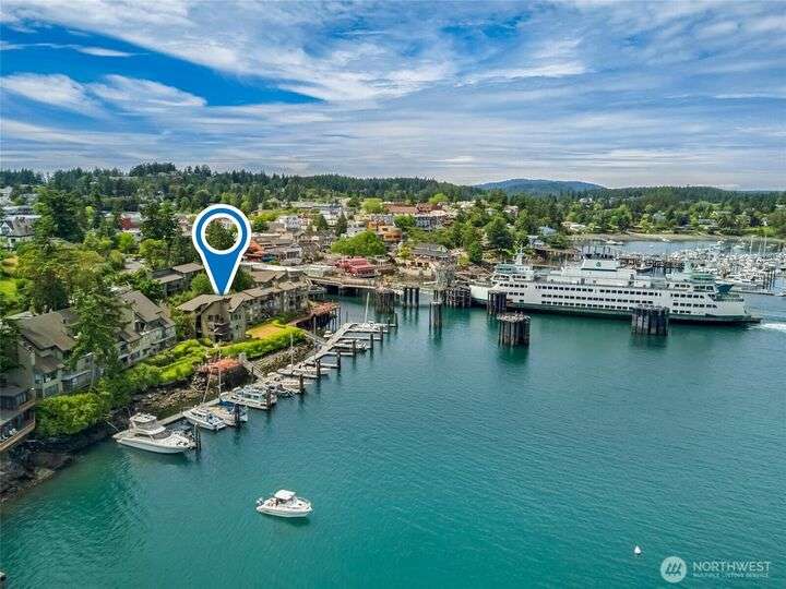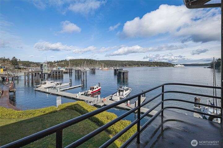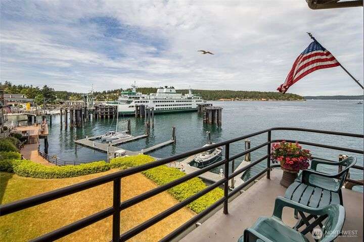 Penthouse condo with a private elevator with 180-degree views of the harbor, marina, and spectacular sunrises, two decks offer unobstructed views of wildlife and boating activities, as well as front-row seats for the 4th of July fireworks. A short walk to the ferries and a few steps more to shop in the quaint town of Friday Harbor. Both bathrooms have heated floors. Furniture negotiable. There is ample storage, including a loft area and one covered parking space. This one-of-a-kind condo has a private elevator. Chicago T&E #245469475