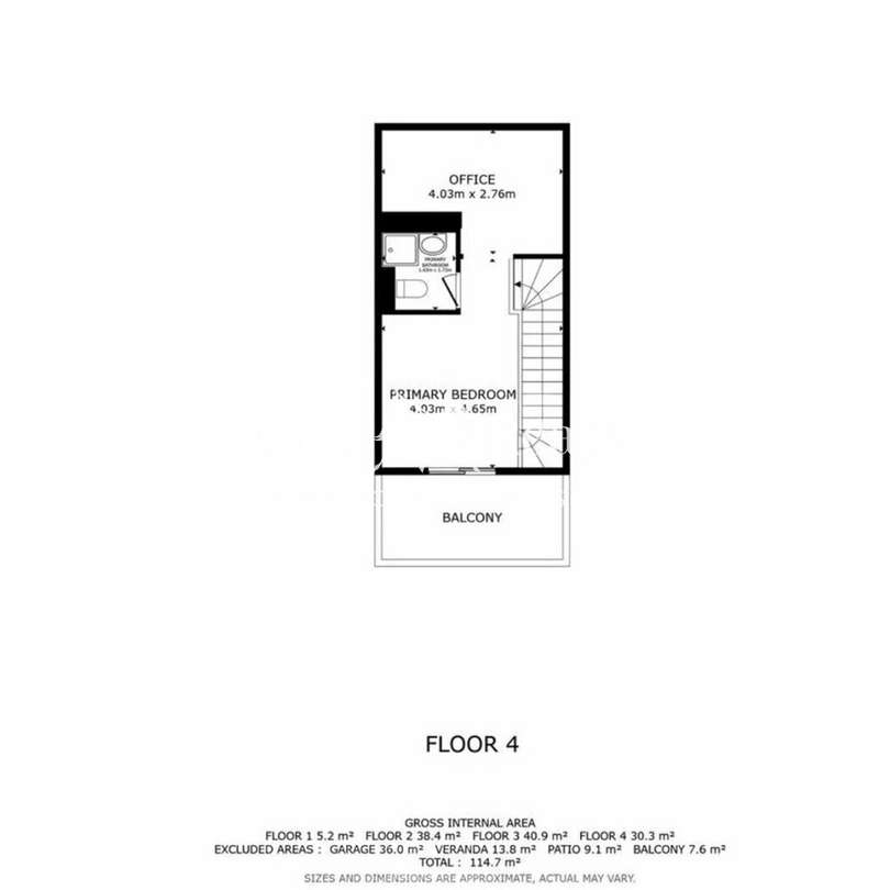The first floor has two bright bedrooms, both with large windows, shutters and fitted wardrobes, as well as a full bathroom.