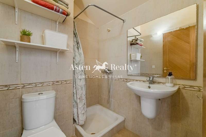 On the main floor, there is a large front terrace with an extendable awning, perfect for gatherings or enjoying the outdoors. From here you can access a spacious living-dining room with plenty of natural light. The kitchen, which has been completely renovated, has a window and access to the rear terrace. There is also a guest toilet on this floor.