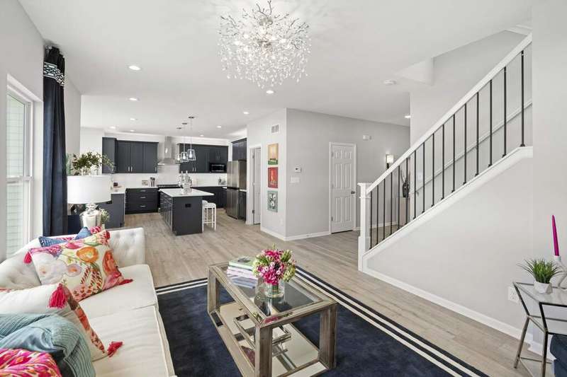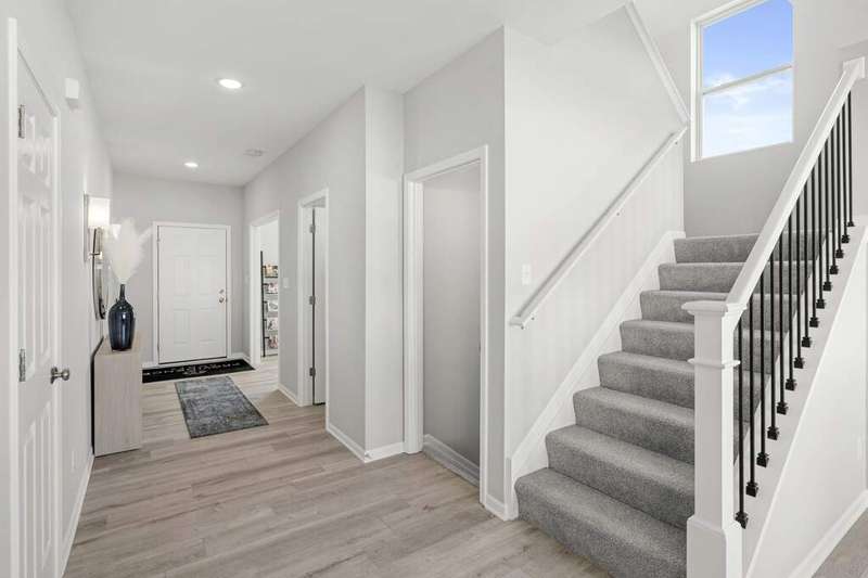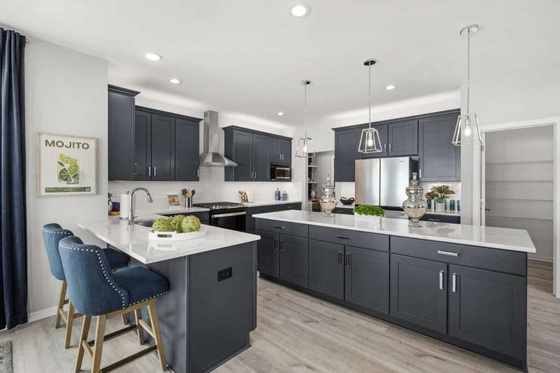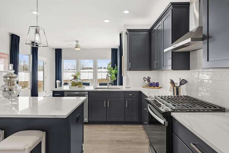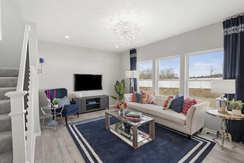 Proposed New Construction in Crown Point, IN - The Broadmoor at Falling Waters Welcome to the Broadmoor in the desirable gated community of Falling Waters! This stunning two-story home features 4 bedrooms, 3 bathrooms, a partial basement, and a 2-car garage. Step inside to 9-foot ceilings on the main level, creating a bright and open atmosphere. The modern kitchen is the heart of the home, showcasing a 9-foot island with extended countertop, cabinets, and built-in outlets, perfect for meal prep, casual dining, or entertaining. The Cafe area opens to the Great Room, offering an ideal space for daily meals and family gatherings. One of the four bedrooms is conveniently located on the main floor. Upstairs, the primary suite features a spacious ensuite bathroom and a large walk-in closet. Two additional bedrooms share a full hall bath, and the loft area provides bonus living space. Additional highlights include a partial basement with crawl space, a 3-piece rough-in for future finishing, and the cafe built over the basement, adding dimension and potential for more space below. Photos are of a similar home and may include upgraded features. Professional landscaping is included. Don't miss this opportunity to build your dream home in Falling Waters! Ask about special builder financing and current promotions.