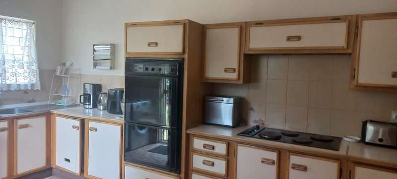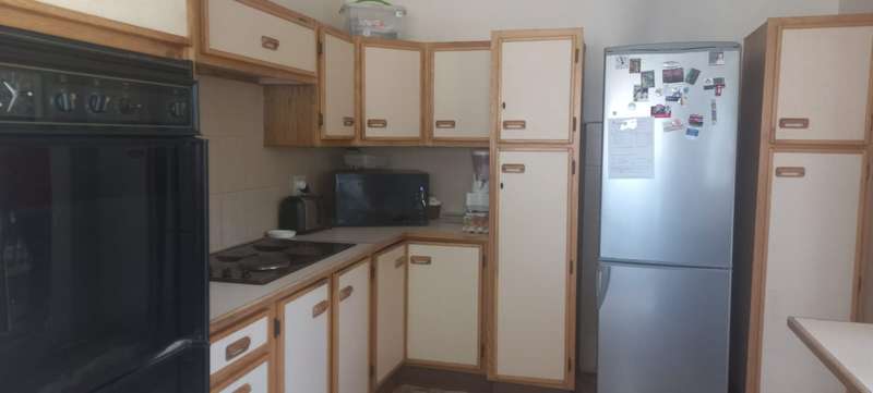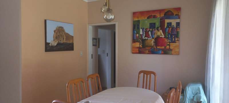 When you step into this home you are welcomed by the ambiance. The home offers comfort and all you will want in a home, situated in a lovely area. Low maintenance on a large stand, fully fenced. Walk into the entrance hall and find the spacious open-plan, fully tiled lounge and dining room. The kitchen offers enough cupboards, working space double oven and hub and extractor. Dishwasher and washing machine can fit into the kitchen, the fitted kitchen will be any woman's favorite place. Three spacious bedrooms all fitted with built-in cupboards overlooking the beautiful garden Two bathrooms both comprising of bath basin an toilet and shower in the an-suite Two garages of witch one is a drive through. The garage also host a workshop This property offers a range of features and amenities that makes it an excellent choice for comfortable and convenient living. The beautiful garden will bring peace and solace. Don't delay and call today!