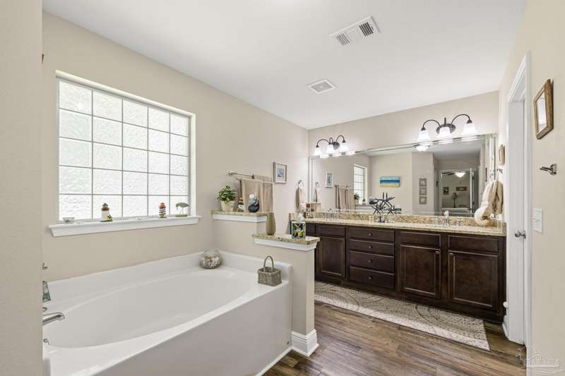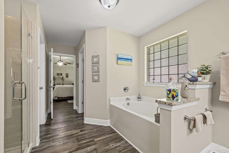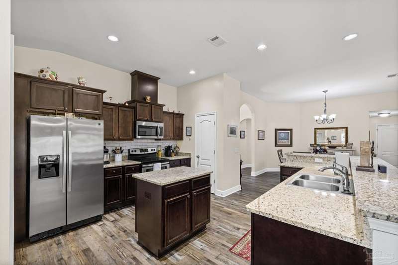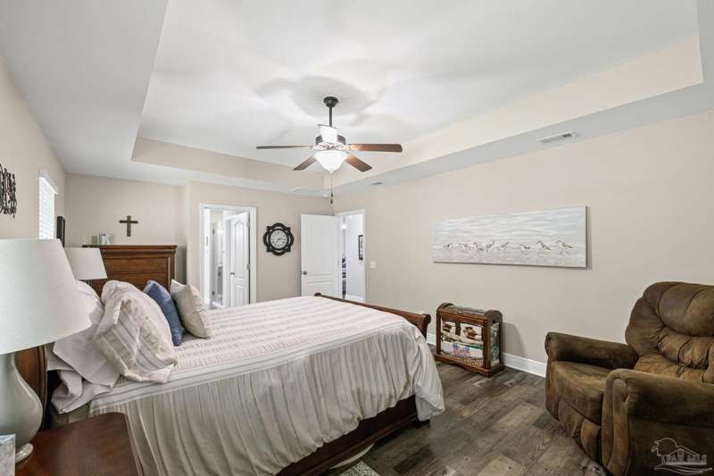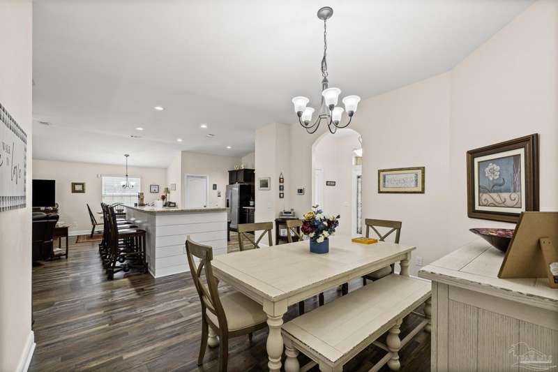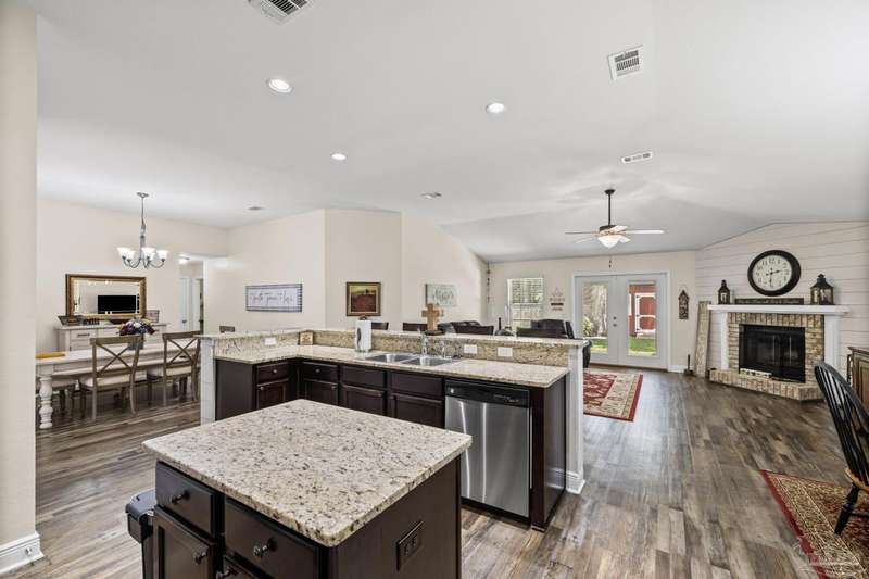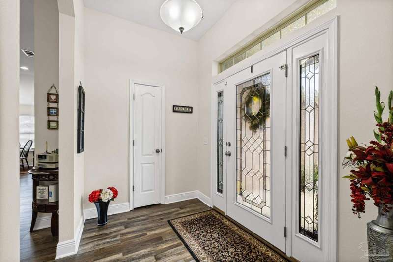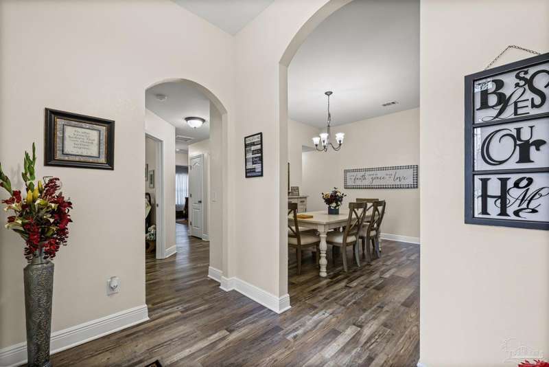 MOTIVATED SELLERS FOR THIS MOVE-IN READY IMMACULATE HOME IN PACE! Searching for your dream home in Pace? Look no further than this immaculate 4-bedroom, 2-bathroom gem in the A Rated Pace School District! When you arrive - notice the AMAZING Curb appeal! This ALL BRICK home, built in 2015, is better than new and boasts an open floor plan with luxury vinyl plank flooring throughout, creating a spacious and inviting atmosphere perfect for both daily living and entertaining especially around the cozy fireplace. The well-appointed and open kitchen flows seamlessly into the living and dining areas, making it easy to stay connected with family and guests and features a pantry, granite countertops, stainless appliances, island with breakfast bar - wrapped with shiplap - and additional eat-in area by a window. The split floorpan includes 3 bedrooms and hall bath on the front of the home and then the Main Suite on the back of the home overlooking the backyard. Talking about the Main Suite - there is a large sitting area in the bedroom, and in the ensuite bath a double vanity, new separate shower, soaking tub and HUGE walk-in closet. Then step outside into your fenced yard with shade trees behind the fence in the back, open portico with swing and the meticulously maintained yard features new Zoysia sod, known for its beauty and durability, a full irrigation system on reclaimed water with internet remote control and rock flower beds with concrete borders. You'll also find a convenient workshop, offering extra storage or a dedicated space for hobbies, electrical and waterproof flooring. This home is truly turn-key! Well insulated - saving you money on your power bill - and ready for you to move into and enjoy! Close to highly rated schools, shopping, Military Bases and so much more - you just need to schedule your showing today!
