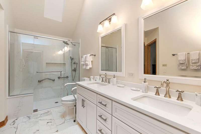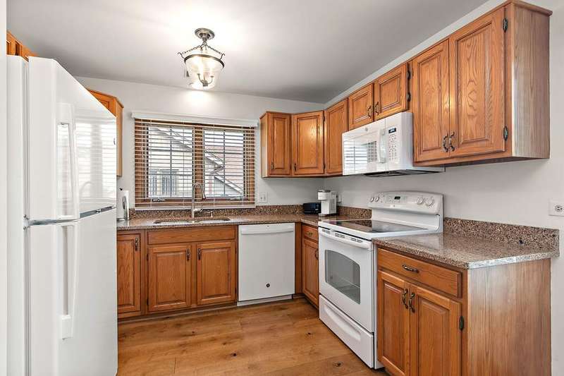 Absolute pride of ownership in this clean, bright, impeccably maintained 3-bedroom, 2-bath villa. As you step into the foyer, you'll immediately notice the natural light and the exquisite engineered hardwood flooring that flows throughout the unit. Recent updates include a newer furnace, air conditioner, and hot water heater. Both bathrooms have been fully renovated, with the primary bath-completed just weeks ago at a cost of over $40,000-featuring a walk-in shower, quartz counters, and quartz shower walls. The eat-in kitchen offers newer appliances, while the spacious primary bedroom includes both a walk-in closet and an additional single closet. Two additional bedrooms can easily serve as a home office, sitting room, or family room. An attached one-car garage provides convenient access with a chairlift and stairs leading to the unit. Off the living room, a private balcony overlooks tranquil, tree-lined views. Enjoy the resort-style lifestyle of Oak Hills Country Club Village, offering a clubhouse, pool, tennis/pickleball courts, golf, and more.
