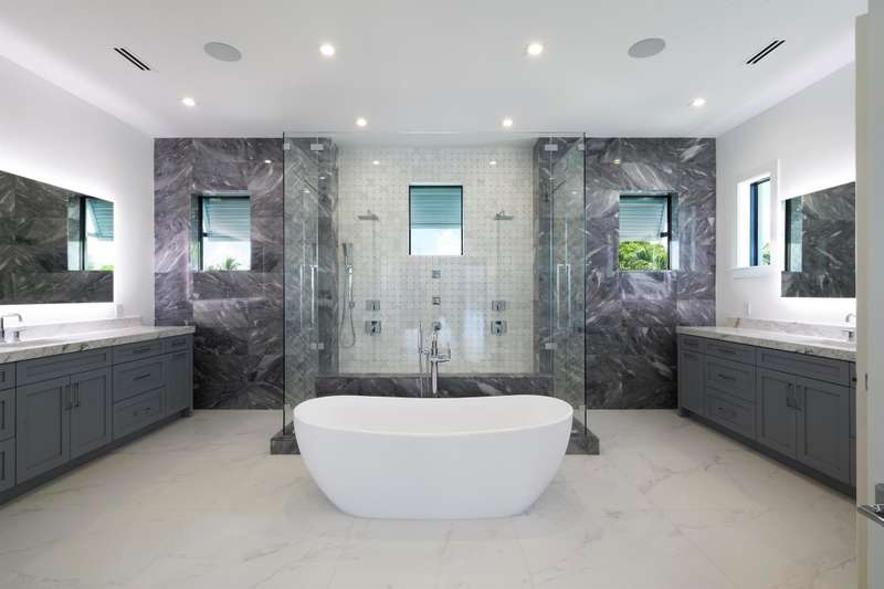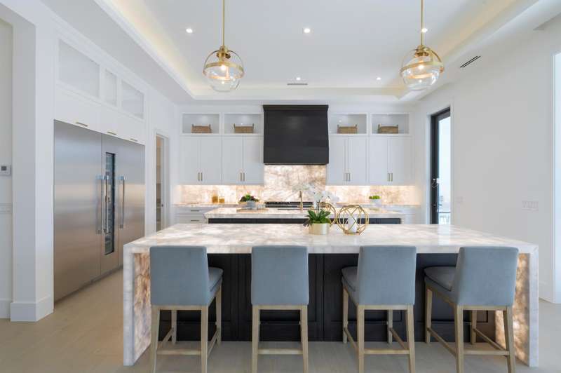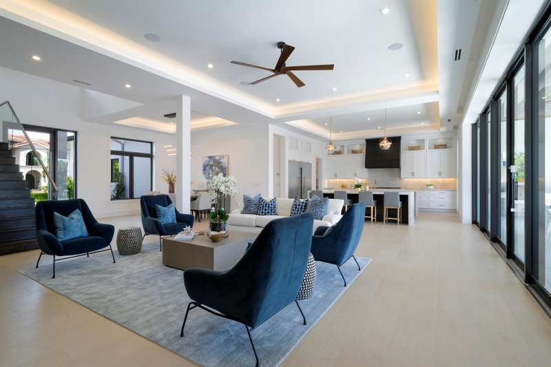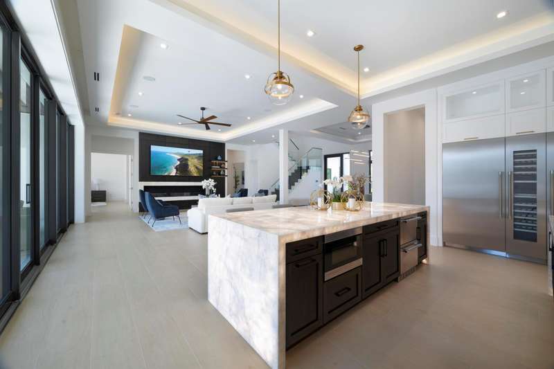 Modern Waterfront Estate in The Village of North Palm Beach. Discover a masterpiece of modern living in this stunning custom Vista Builders new construction home in North Palm Beach. Nestled in a prime waterfront location with direct ocean access, this exquisite 5-bedroom, Theater (Optional 6th bedroom),7-bathroom residence offers the ultimate in luxury and comfort. Indulge in 5,804 square feet of living space, including two gorgeous master suites. The gourmet kitchen, equipped with a Thermador appliance package and dual islands with backlit Cristallo Quartzite countertops, are stunning. The kitchen offers a convenient butler's pantry for effortless entertaining as well as multiple beverage and wine coolers.