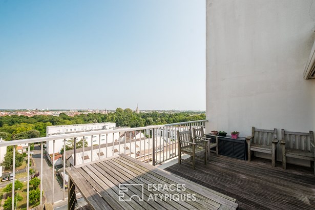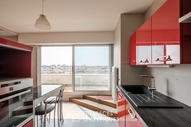Bathed in light, it seduces with its generous volumes and remarkable outdoor spaces: a vast main terrace and a continuous terrace, both offering spectacular views of the sea and the city center. The entrance to the apartment reveals a bright living room, harmoniously extended by a large terrace. This vast reception area opens onto a breathtaking view of the historic center of La Rochelle, allowing you to admire its famous towers in all their majesty.