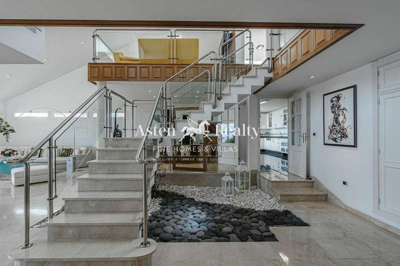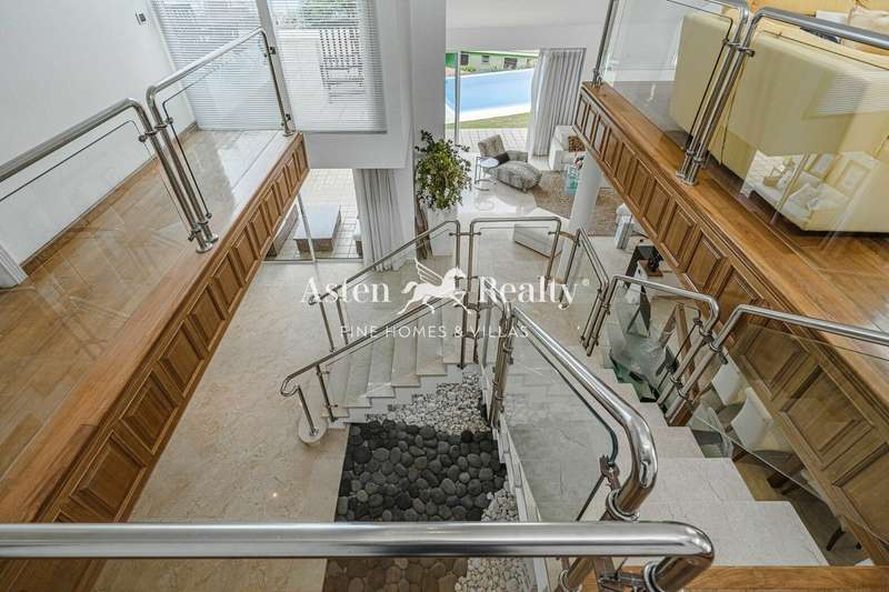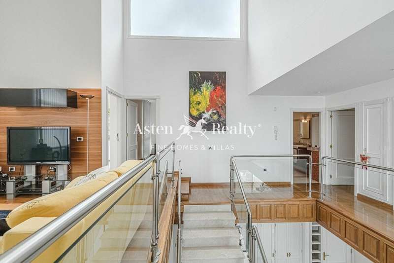 The upper floor of the house, with a total of 126 m2, is distributed in three bedrooms, two huge bathrooms, a dressing room, TV room, library and two terraces.