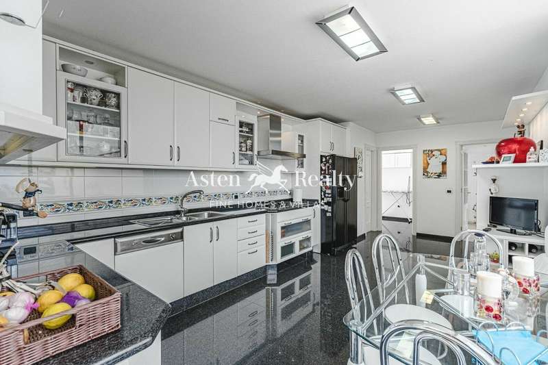 The ground floor, with a total of 206 m2, is distributed in a spacious living room, dining room, a large independent kitchen, bathroom, office, interior garden, access staircase to the upper floor, a laundry room, clothesline and garage . There is a small 27 m2 basement in with a storage room and the pool filters.