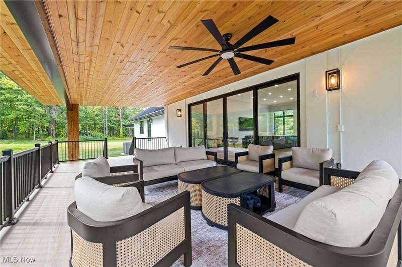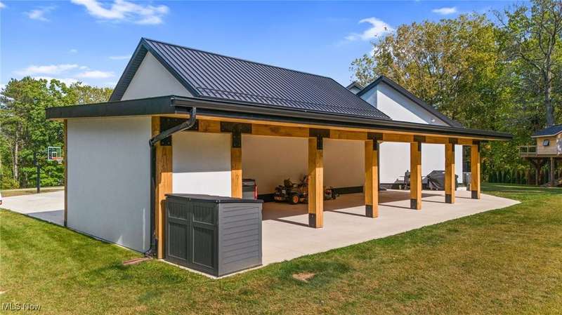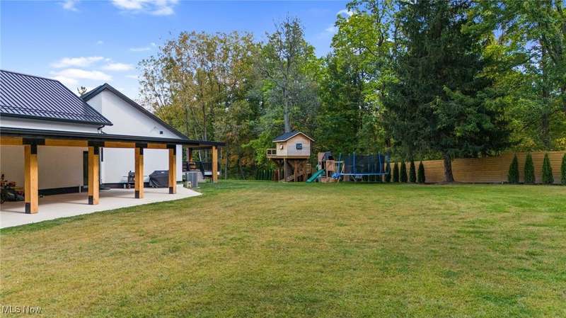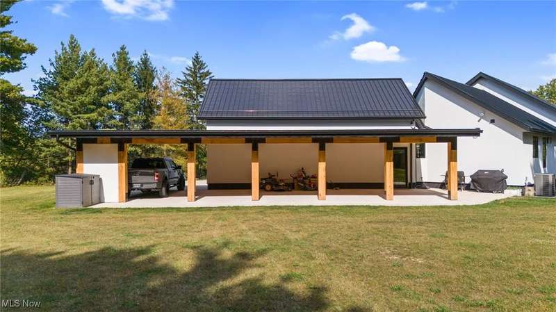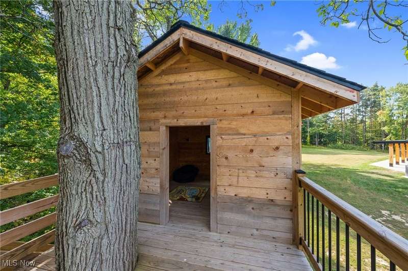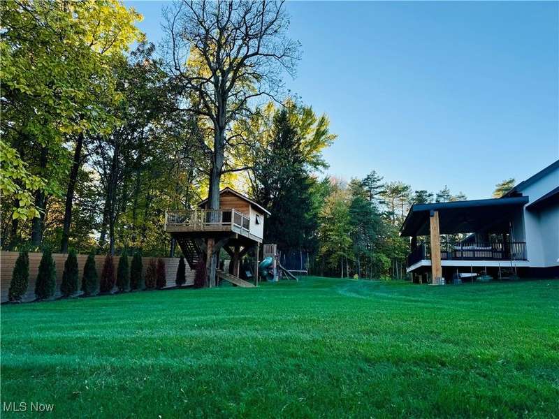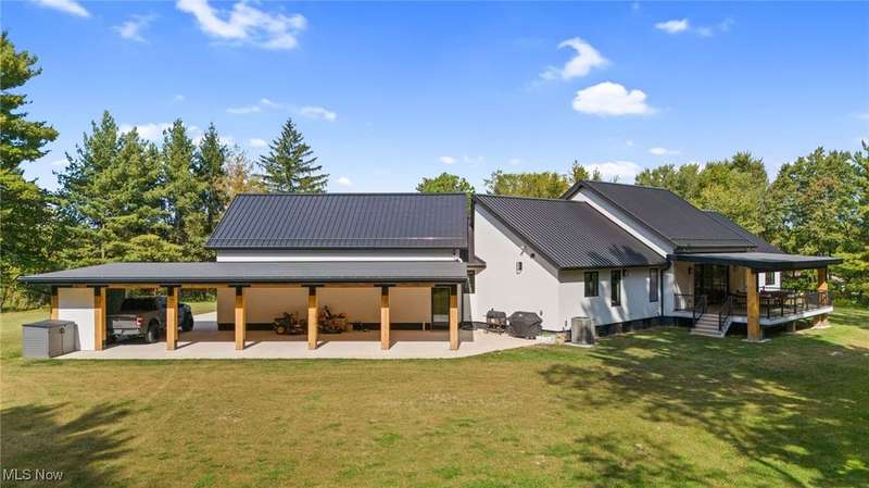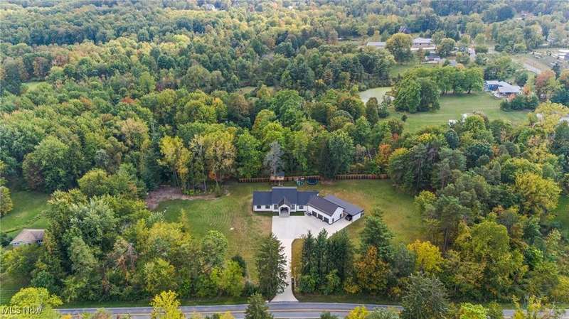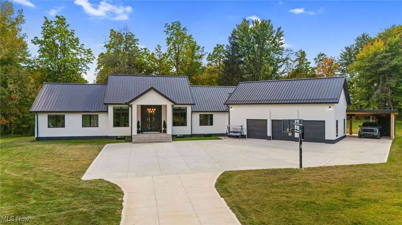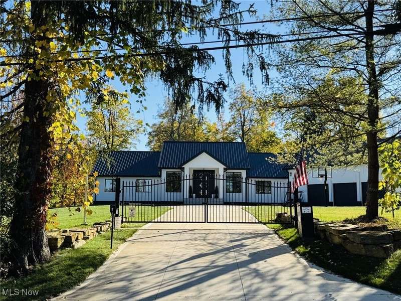 Welcome to this extraordinary custom-built home that combines modern efficiency with timeless craftsmanship. Situated on a three-acre lot, w/approx 500 frontage, the property offers both privacy & elegance with remote-controlled security gate & intercom system. Inside, you'll find 9-foot ceilings throughout and a soaring 12-foot ceiling in the kitchen & great room, creating an open & airy atmosphere. The home showcases Pella casement windows, white oak engineered hardwood flooring, real oak trim and baseboards. The kitchen is a true showpiece with jumbo quartz counters, custom cabinetry, premium Fiskar appliances & commercial 8-inch exhaust hood. Bathrooms feature custom showers with thicker, taller glass, while the impressive 7x10 custom front door makes a bold statement. Built for comfort & efficiency, the home includes 30 inches of attic insulation, 2x6 walls, a 5-ton zoned HVAC system, hybrid 100-gallon hot water tank, and a 24-gauge metal roof with 60-year paint warranty. The stucco exterior with 1 ?" insulation, reinforced 12x16 block foundation with rebar, and large septic spray system ensure durability and long-term performance. Outdoor living spaces are abundant with a 16x16 oak patio, 36x16 tiled deck with aluminum railings, a 55x25 covered patio with 12x12 solid oak posts & 11 ft clearance, a tree house, and a privacy-fenced backyard. Additional structures include a 16x24 vinyl-sided shed and an oversized 40x26 garage with 3 bays and a 1,000 sq. ft. loft for storage or hobbies. Spacious walk-out lower level with daylight windows offers an additional 2,864 sq. ft. of potential living space, ready to be finished to your taste for added value & comfort. Every detail reflects quality, from the custom cabinetry and quartz counters to the engineered hardwood floors & oak trim. Furniture may remain with the right offer, making this truly a turnkey opportunity. This home offers a rare blend of luxury, efficiency, and durability?designed for generations to enjoy.