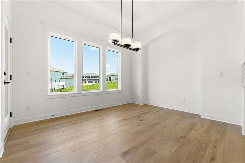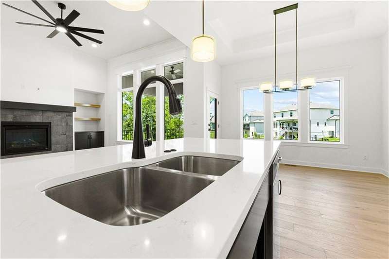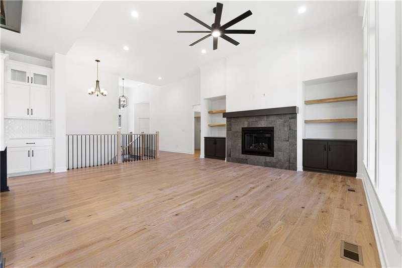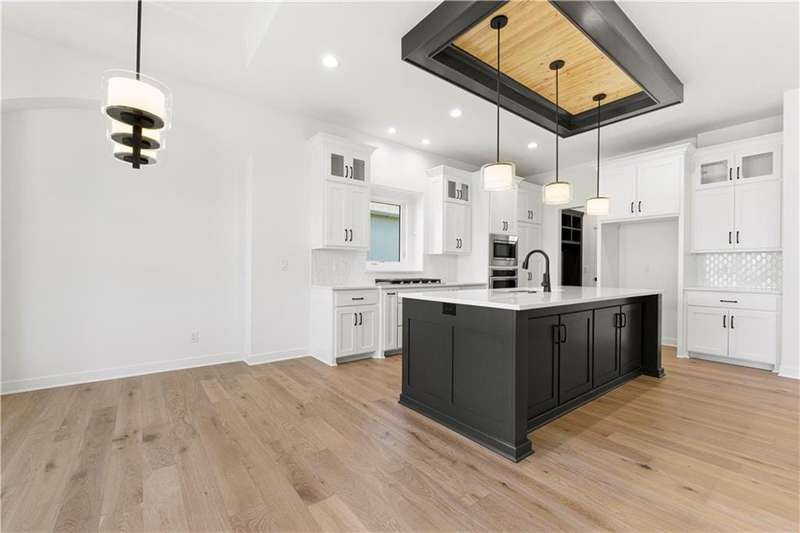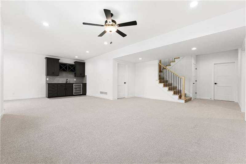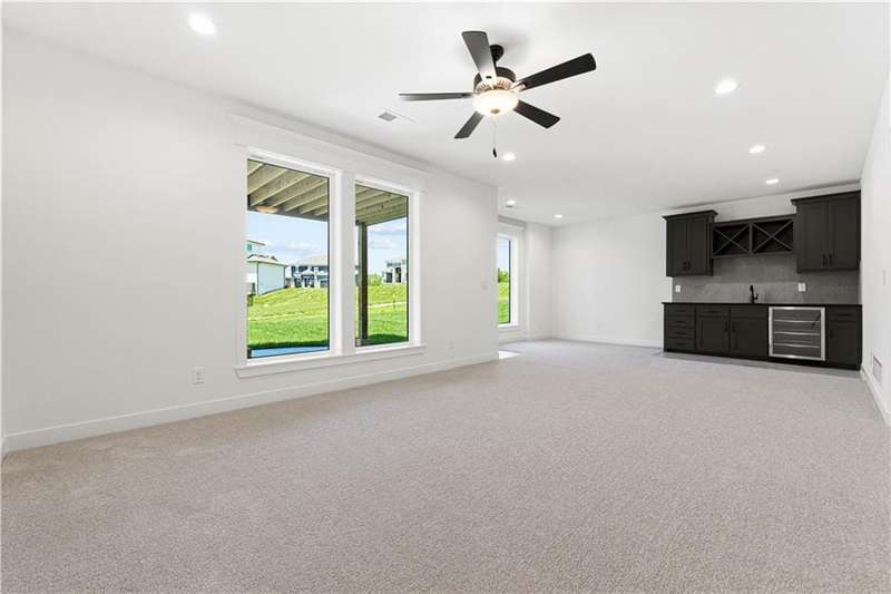 Welcome to this exceptional Reverse 1.5 Story home in the final phase of Benson Place Landing, perfectly situated on a cul-de-sac walkout lot that backs to greenspace and a scenic walking trail. Just a short walk from one of the neighborhoods two community pools, this home offers an ideal combination of location, design, and lifestyle. The open-concept layout features 4 bedrooms and 3.5 bathrooms, with upscale finishes and thoughtful craftsmanship throughout. The great room showcases hardwood flooring and a gas fireplace, seamlessly connecting to the kitchen and dining area for effortless entertaining and everyday living. The finished walkout lower level includes a spacious family room with a wet bar and beverage fridge, providing additional living and gathering space. In addition to the impressive standard features, this home also includes an upgraded kitchen island, composite decking with all-metal handrails, all bathrooms have tile showers, and a convenient tub sink in the garage. The 3-car garage offers generous storage, and the 7-zone lawn irrigation system ensures a well-maintained yard. Located within a vibrant community and top-rated school district, with easy access to highways, trails, parks, and shopping, this move-in ready home is a rare opportunity in one of the Northlands most desirable neighborhoods.