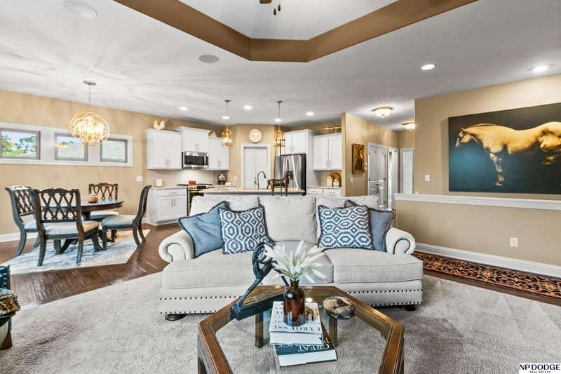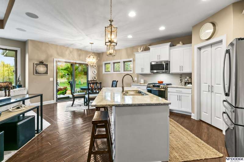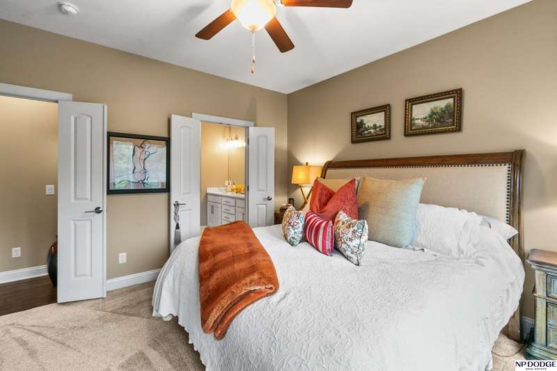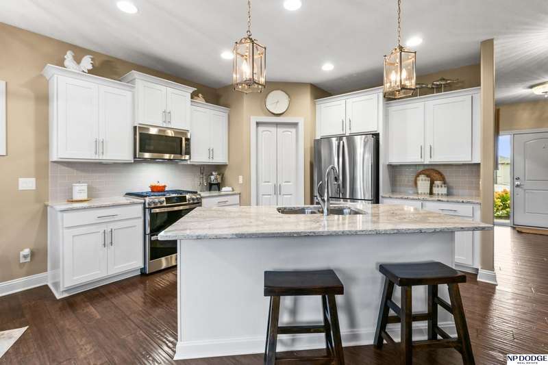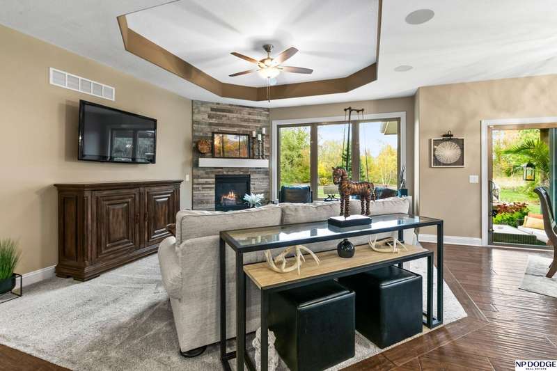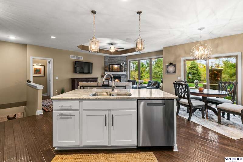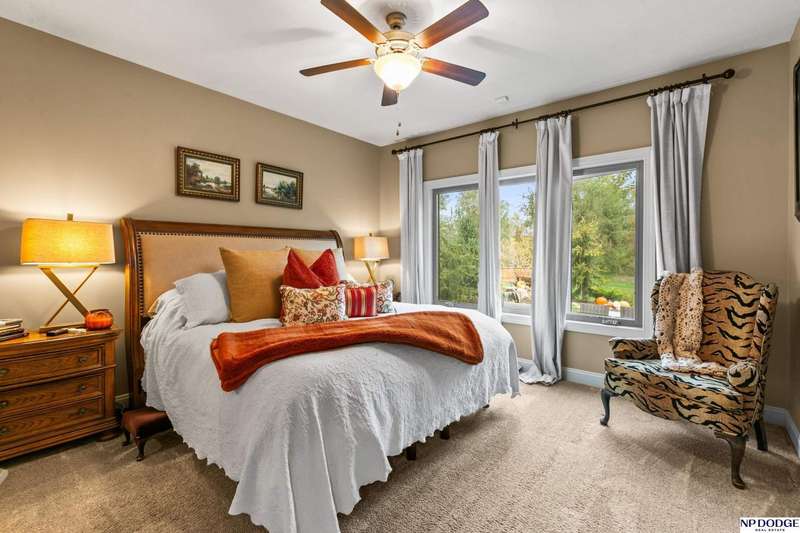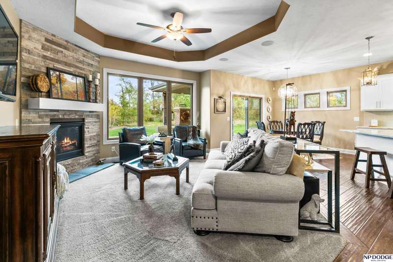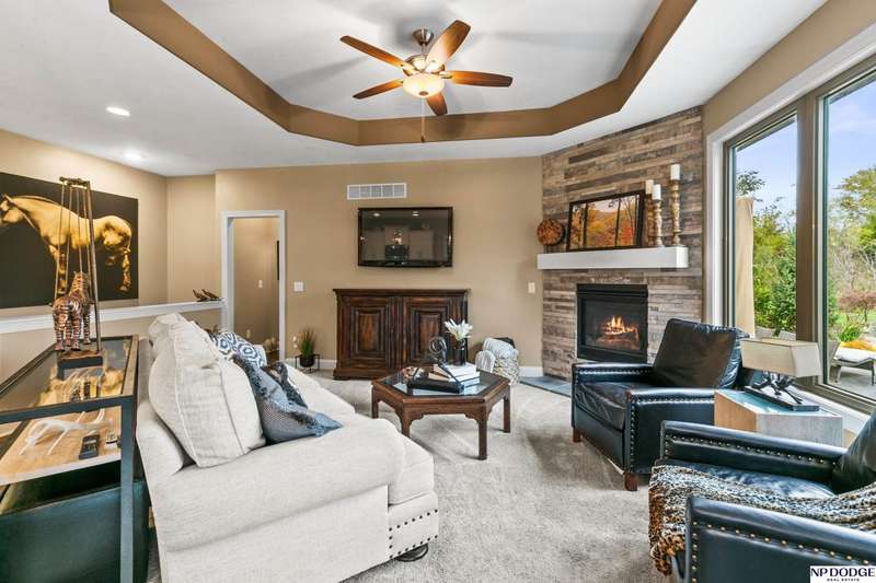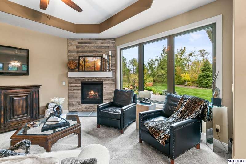 Amazing 2-bedroom, 2-bath villa offering stunning outdoor living at its finest! Enjoy the beautiful woodburning stone fireplace, soothing water feature, and extended stamped concrete patio surrounded by mature trees-perfect for relaxing or entertaining. Inside, the upgraded kitchen features a gas stove, large pantry, new dishwasher, oversized island, and a spacious dining area. The primary suite overlooks the private backyard and tranquil water feature, with a walk-through closet leading directly to the laundry room for convenience. The living room boasts a dramatic floor-to-ceiling stone fireplace and large windows framing serene, wooded views. The unfinished basement is ready for your design dreams. Maintenance-free living means no more mowing or snow shoveling-it's all done for you! The community offers a walking trail around the lake, two pools, a fitness center, and clubhouse access. Everything you've been dreaming of is right here-comfort, beauty, and ease in one perfect home!