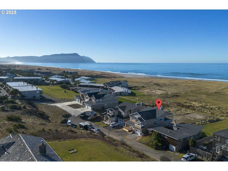 OCEAN FRONT in Gearhart -- new construction completed in 2025. Just step out the door to walk your private trail to the beach! This home's reverse-living floorplan allows for a spectacular ocean view--complete with crashing waves on the beach! Special features include 4 ensuite bedrooms(including upper level and main level Master Suites), elevator, 2 fireplaces, quartz countertops, top quality finishes, engineered hardwood floors and Thermador appliances. The spacious covered deck off the Living Room is perfect for entertaining with its panoramic ocean view and inviting outdoor fireplace. Don't let this rare opportunity slip away from you to own a brand new home on Gearhart's ocean front!