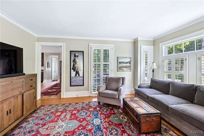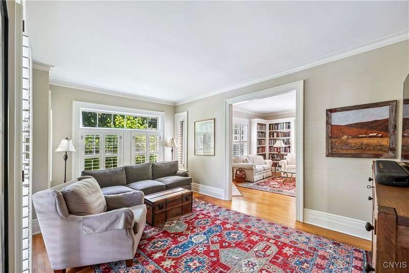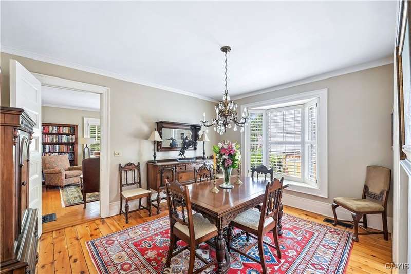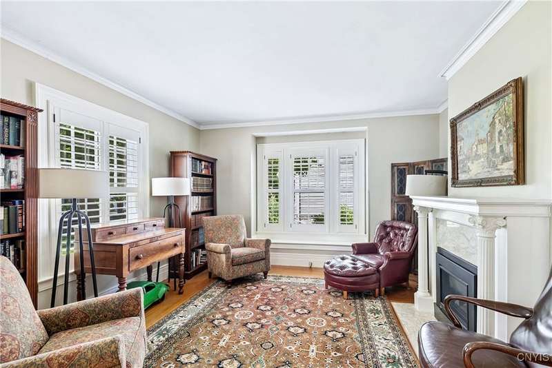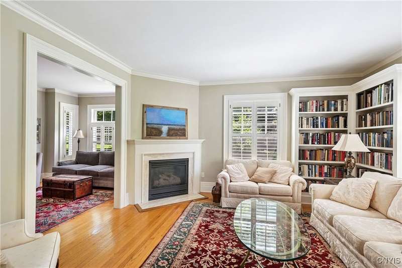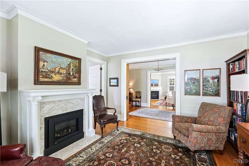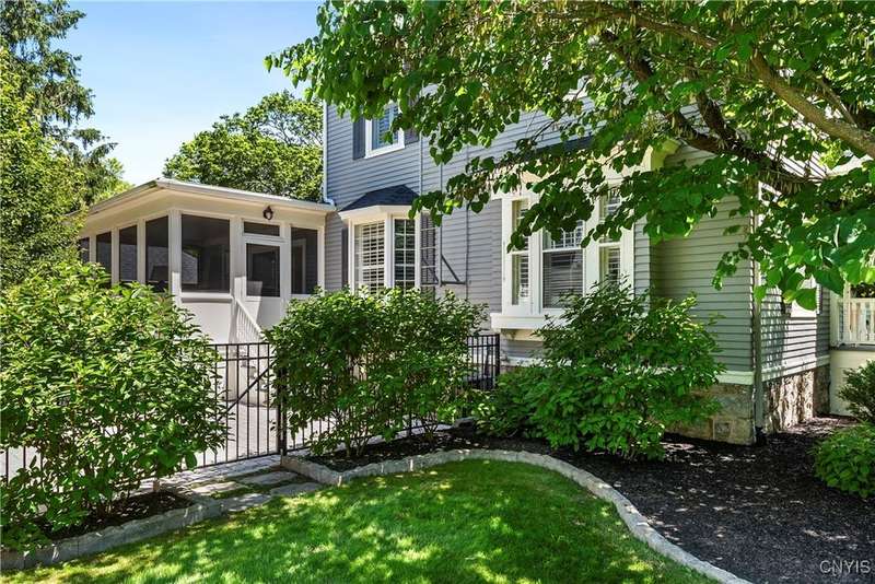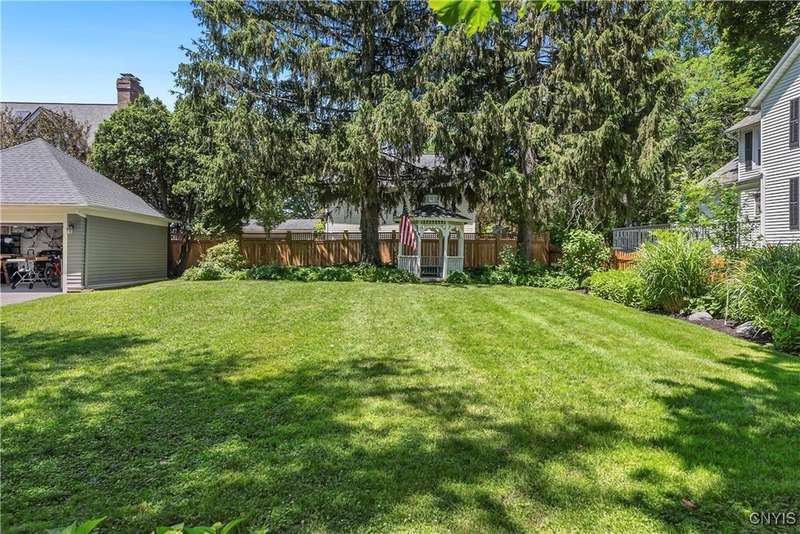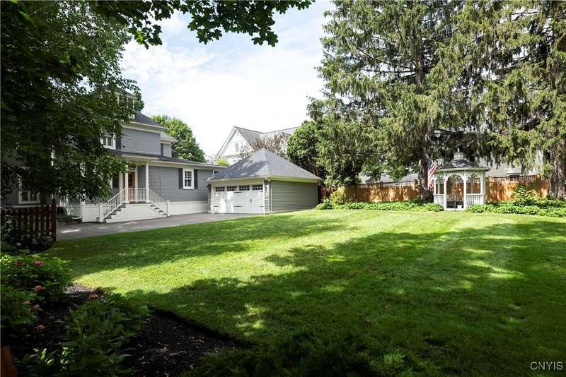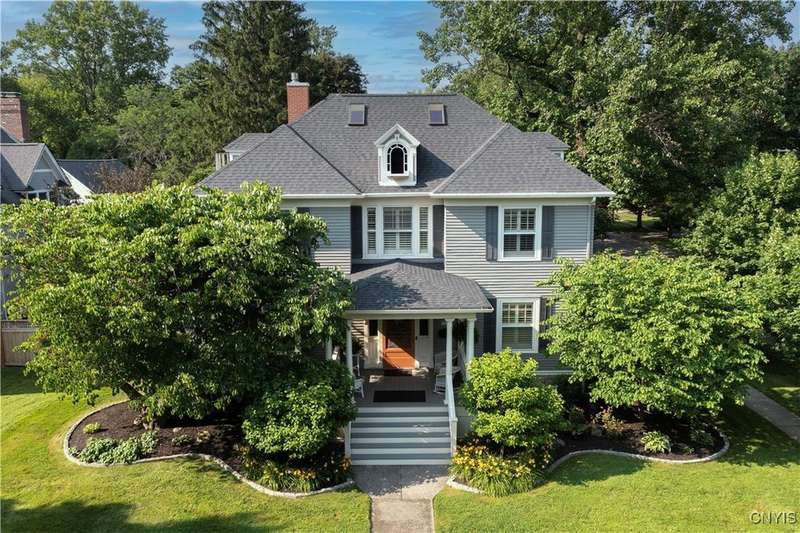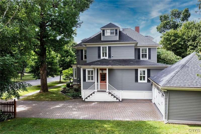 Discover this impeccably maintained classic home nestled in the heart of Skaneateles Village, just around the corner from award-winning schools and up the street from the vibrant downtown shops and restaurants. This stunning residence showcases timeless character with gorgeous moldings, trimwork, and a showstopping entry foyer featuring an elegant staircase. Spacious rooms boast high ceilings, lovely hardwood floors, and large windows that flood the home with natural light, while plantation shutters add sophisticated charm throughout. The thoughtfully designed layout offers three bedrooms (with a possible additional bedroom) and three full baths plus one half bath, including a large primary suite featuring a newly renovated en-suite bath. The versatile floor plan includes a formal dining room, eat-in kitchen area with gorgeous leathered granite countertops, den, and two formal living rooms?one of which could easily serve as a home office. Three gas fireplaces provide warmth and ambiance throughout, while pocket doors in the living room add classic architectural detail. Abundant storage throughout the home includes closets with custom-built-in shelving, and a delightful screened porch completes the interior living spaces, perfect for year-round enjoyment. Outside, the beautifully landscaped corner lot features a charming gazebo, brick paver patio, and welcoming front porch?ideal for entertaining or quiet relaxation. A heated and insulated two-car garage with power provides convenient parking and doubles as a workshop space for hobbyists or projects. Recent updates include rebuilt windows (keeping the original character), a newer roof, and sidewalks, among a long list of many others, ensuring this meticulously cared-for home is move-in ready for its next chapter.