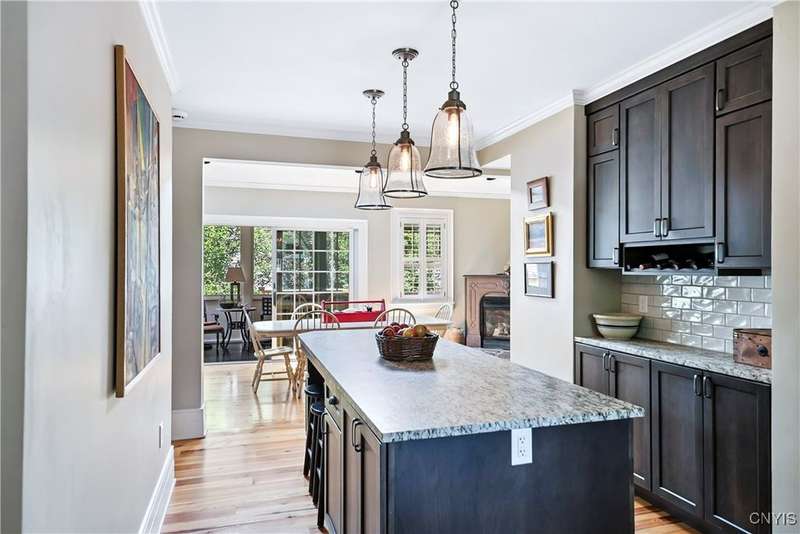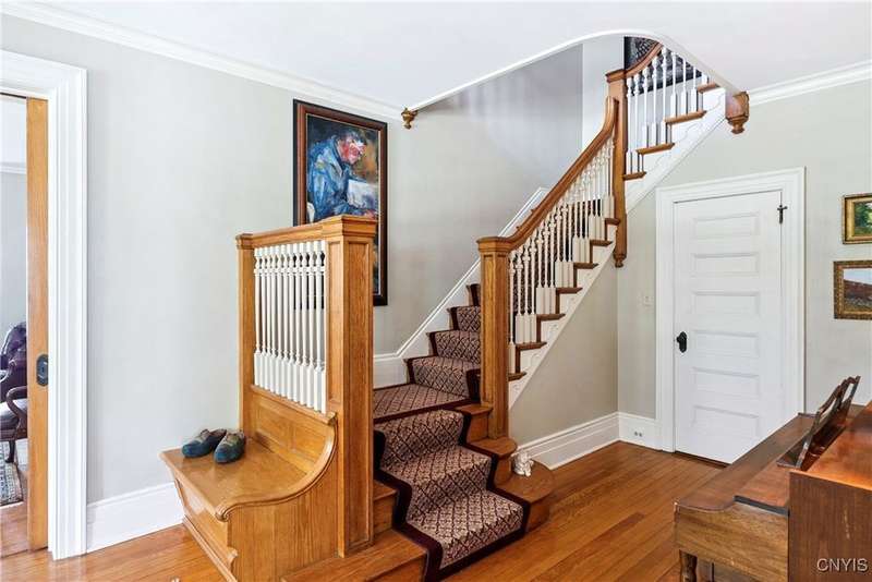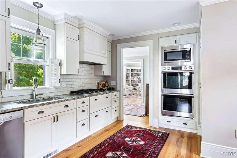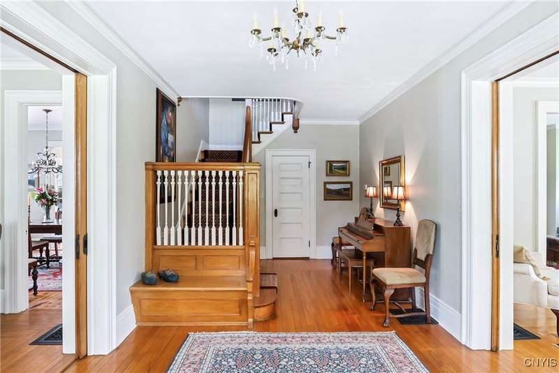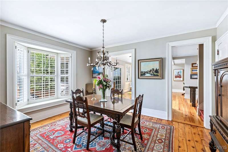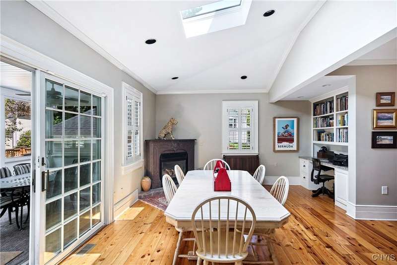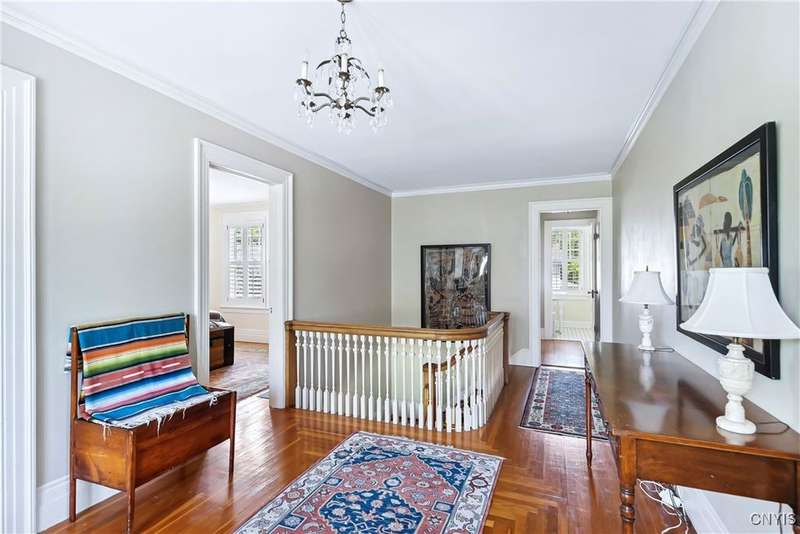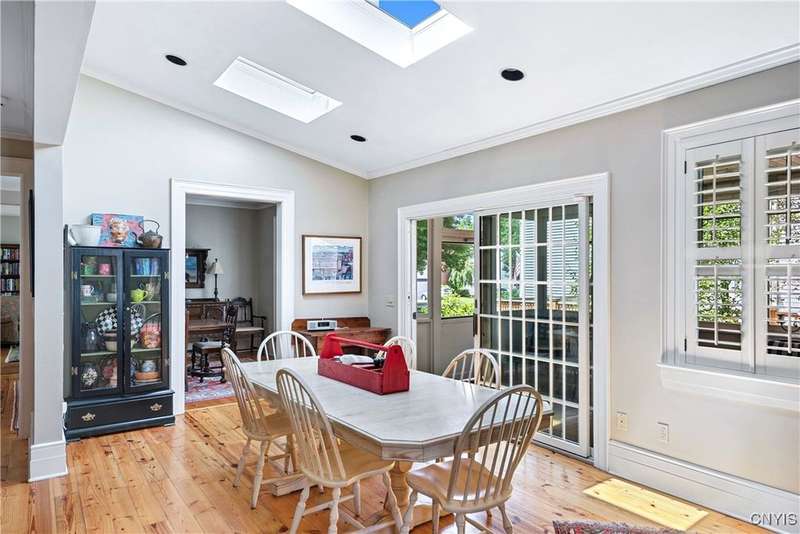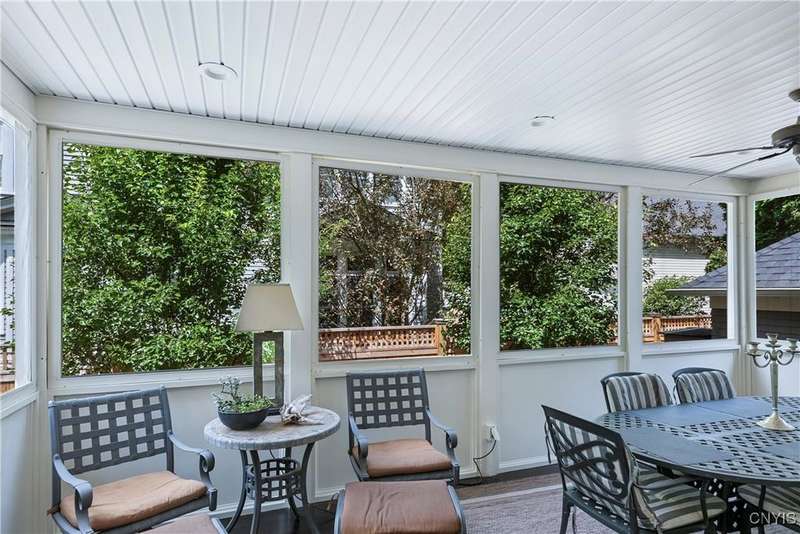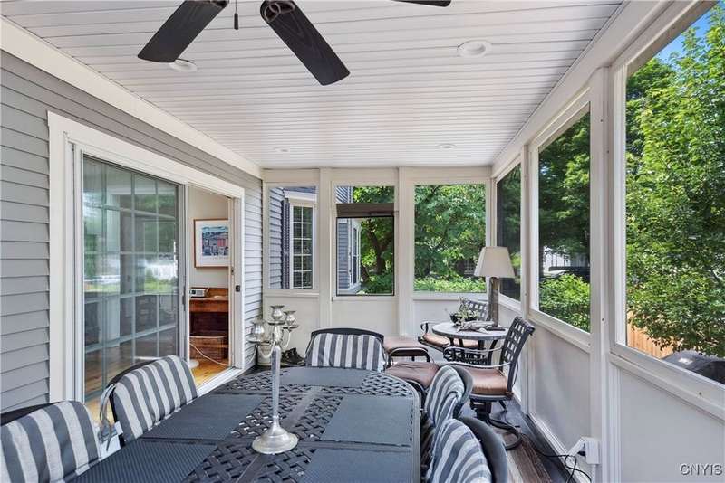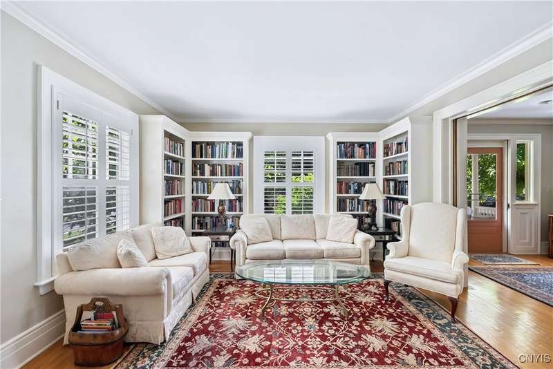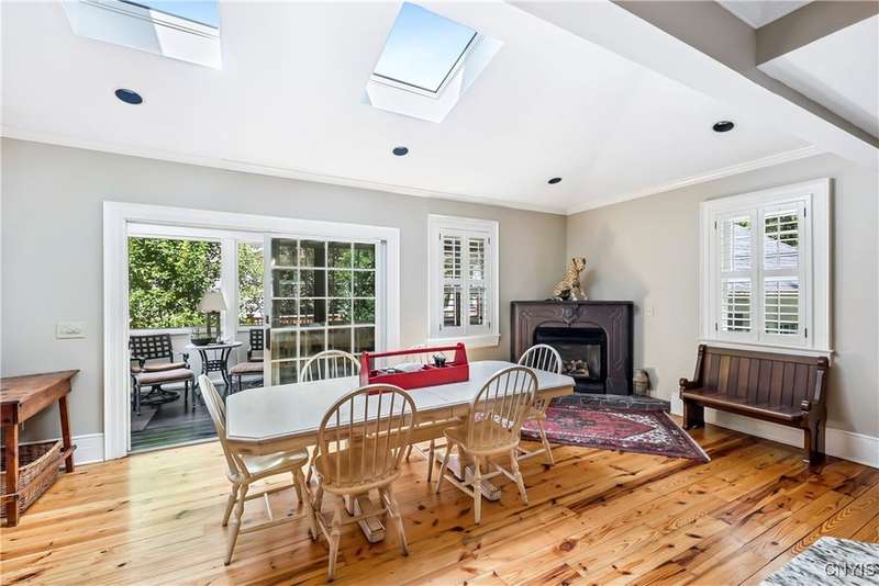 Discover this impeccably maintained classic home nestled in the heart of Skaneateles Village, just around the corner from award-winning schools and up the street from the vibrant downtown shops and restaurants. This stunning residence showcases timeless character with gorgeous moldings, trimwork, and a showstopping entry foyer featuring an elegant staircase. Spacious rooms boast high ceilings, lovely hardwood floors, and large windows that flood the home with natural light, while plantation shutters add sophisticated charm throughout. The thoughtfully designed layout offers three bedrooms (with a possible additional bedroom) and three full baths plus one half bath, including a large primary suite featuring a newly renovated en-suite bath. The versatile floor plan includes a formal dining room, eat-in kitchen area with gorgeous leathered granite countertops, den, and two formal living rooms?one of which could easily serve as a home office. Three gas fireplaces provide warmth and ambiance throughout, while pocket doors in the living room add classic architectural detail. Abundant storage throughout the home includes closets with custom-built-in shelving, and a delightful screened porch completes the interior living spaces, perfect for year-round enjoyment. Outside, the beautifully landscaped corner lot features a charming gazebo, brick paver patio, and welcoming front porch?ideal for entertaining or quiet relaxation. A heated and insulated two-car garage with power provides convenient parking and doubles as a workshop space for hobbyists or projects. Recent updates include rebuilt windows (keeping the original character), a newer roof, and sidewalks, among a long list of many others, ensuring this meticulously cared-for home is move-in ready for its next chapter.