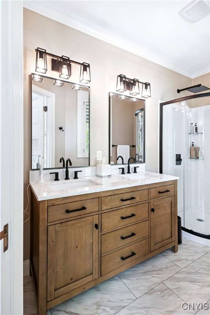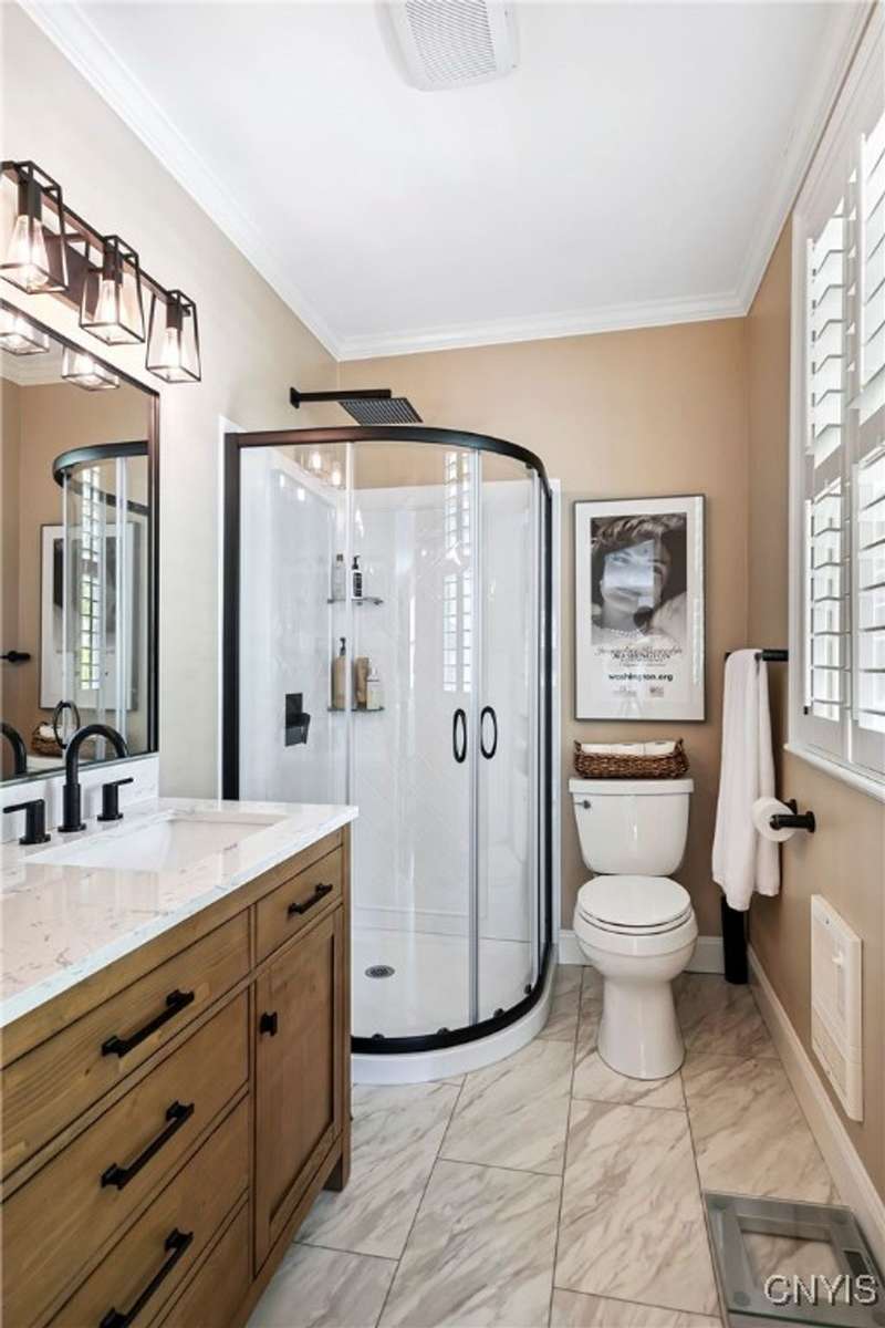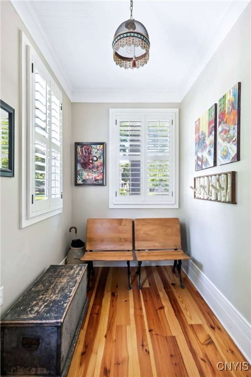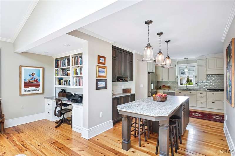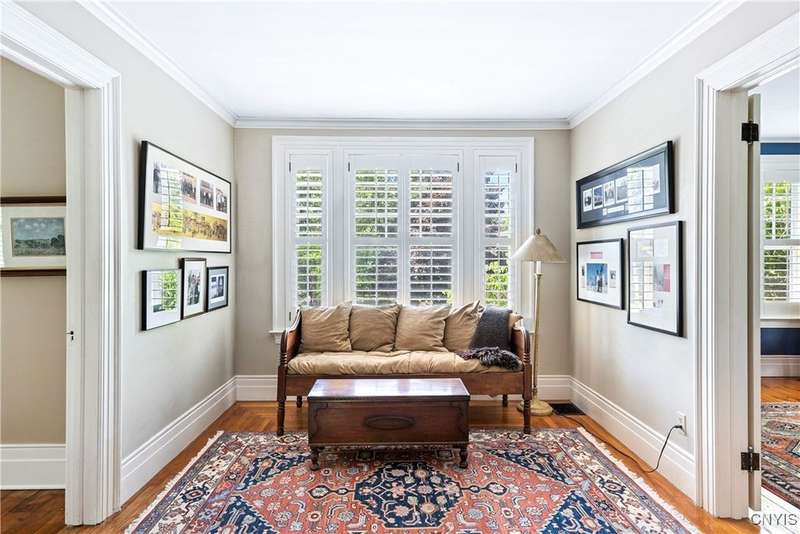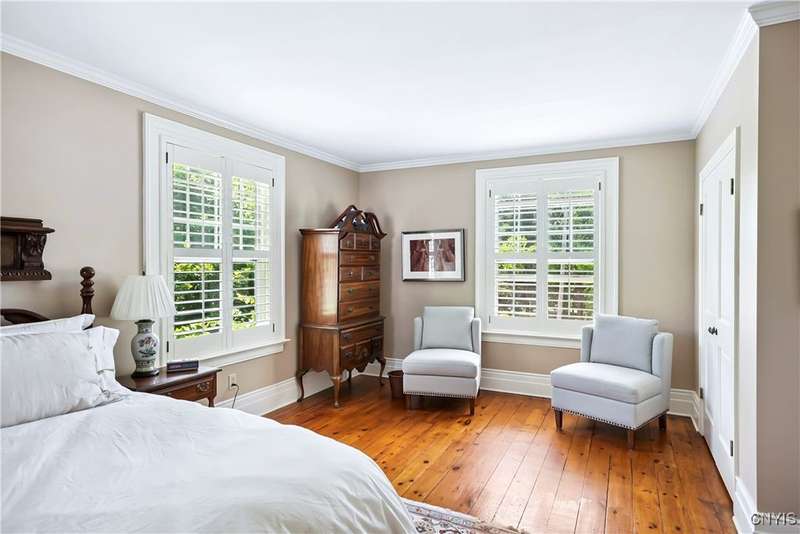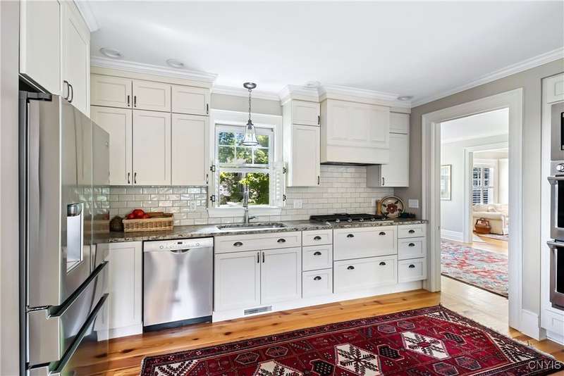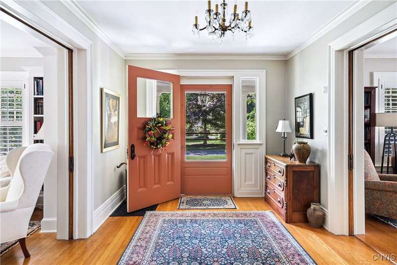Discover this impeccably maintained classic home nestled in the heart of Skaneateles Village, just around the corner from award-winning schools and up the street from the vibrant downtown shops and restaurants. This stunning residence showcases timeless character with gorgeous moldings, trimwork, and a showstopping entry foyer featuring an elegant staircase. Spacious rooms boast high ceilings, lovely hardwood floors, and large windows that flood the home with natural light, while plantation shutters add sophisticated charm throughout. The thoughtfully designed layout offers three bedrooms (with a possible additional bedroom) and three full baths plus one half bath, including a large primary suite featuring a newly renovated en-suite bath. The versatile floor plan includes a formal dining room, eat-in kitchen area with gorgeous leathered granite countertops, den, and two formal living rooms?one of which could easily serve as a home office. Three gas fireplaces provide warmth and ambiance throughout, while pocket doors in the living room add classic architectural detail. Abundant storage throughout the home includes closets with custom-built-in shelving, and a delightful screened porch completes the interior living spaces, perfect for year-round enjoyment. Outside, the beautifully landscaped corner lot features a charming gazebo, brick paver patio, and welcoming front porch?ideal for entertaining or quiet relaxation. A heated and insulated two-car garage with power provides convenient parking and doubles as a workshop space for hobbyists or projects. Recent updates include rebuilt windows (keeping the original character), a newer roof, and sidewalks, among a long list of many others, ensuring this meticulously cared-for home is move-in ready for its next chapter.